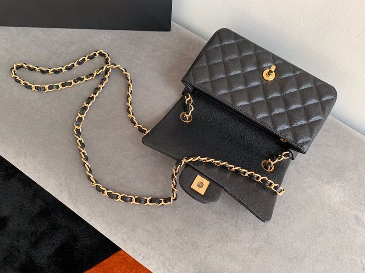 Chanel Classic Flap Bag 20cm Gold Hardware Caviar Leather Spring/Summer Collection Black