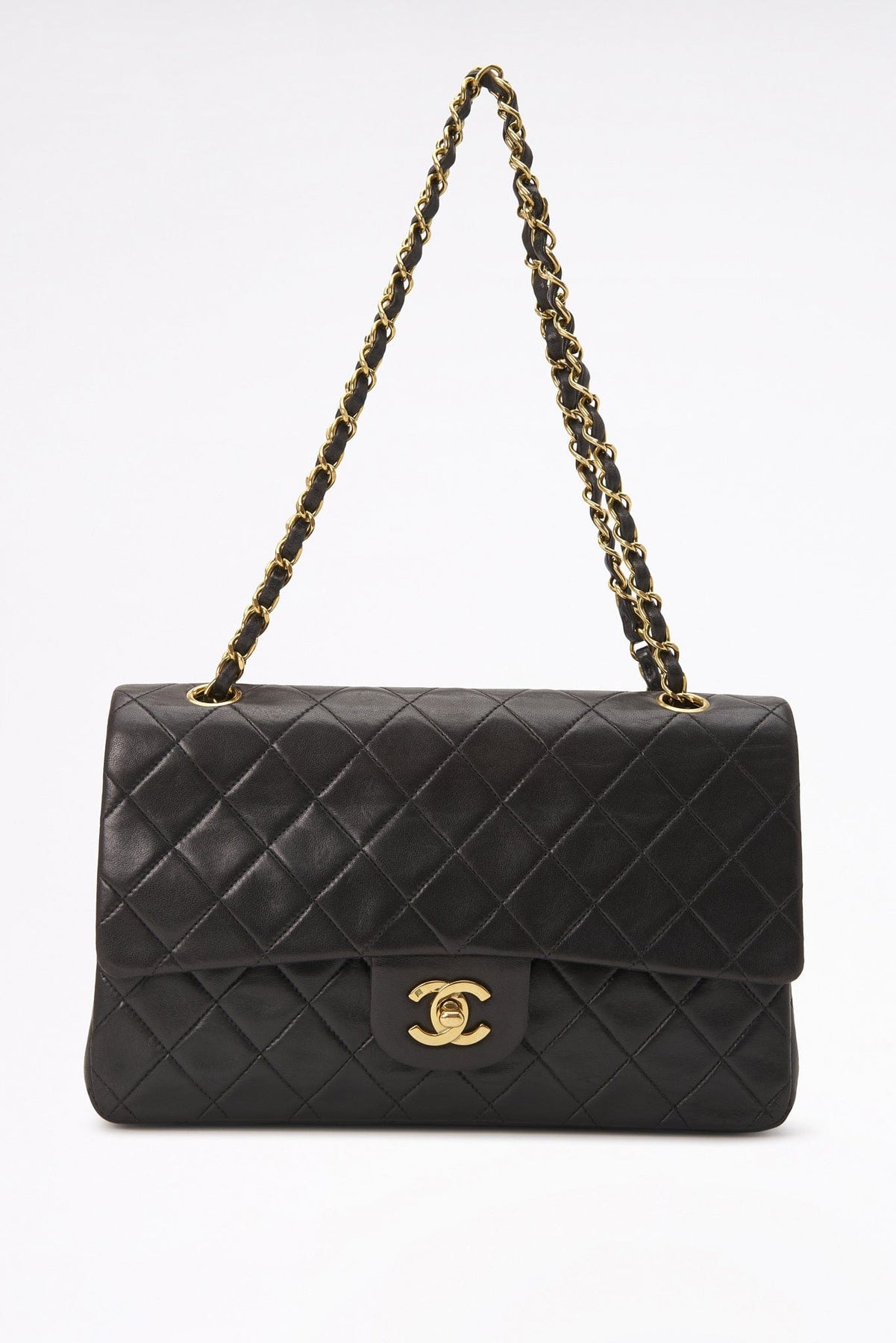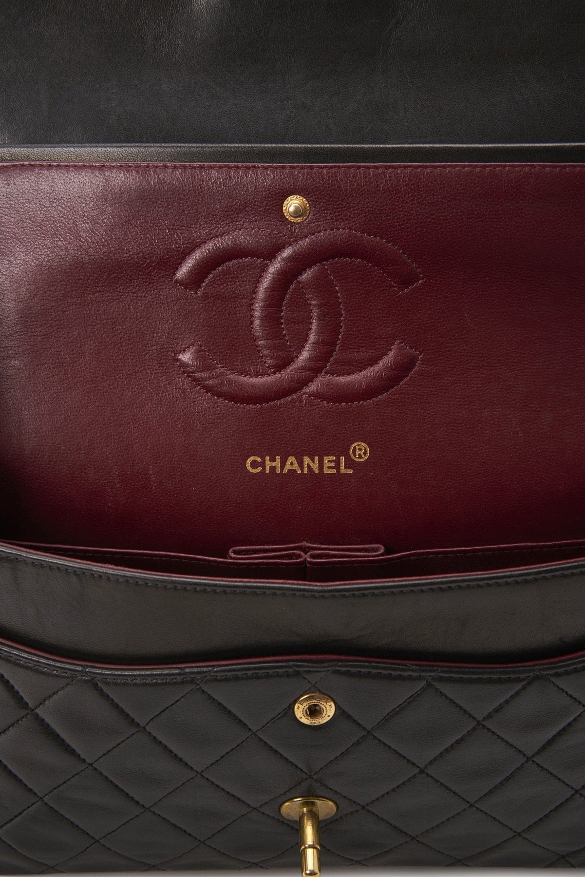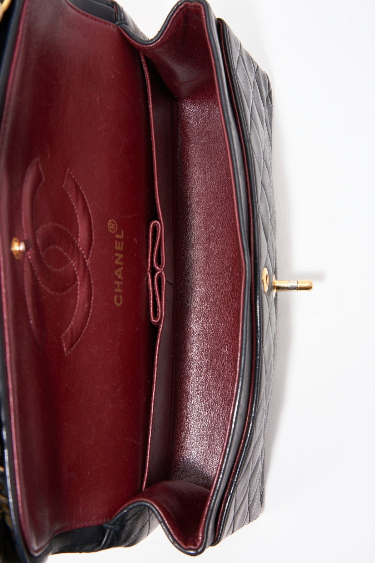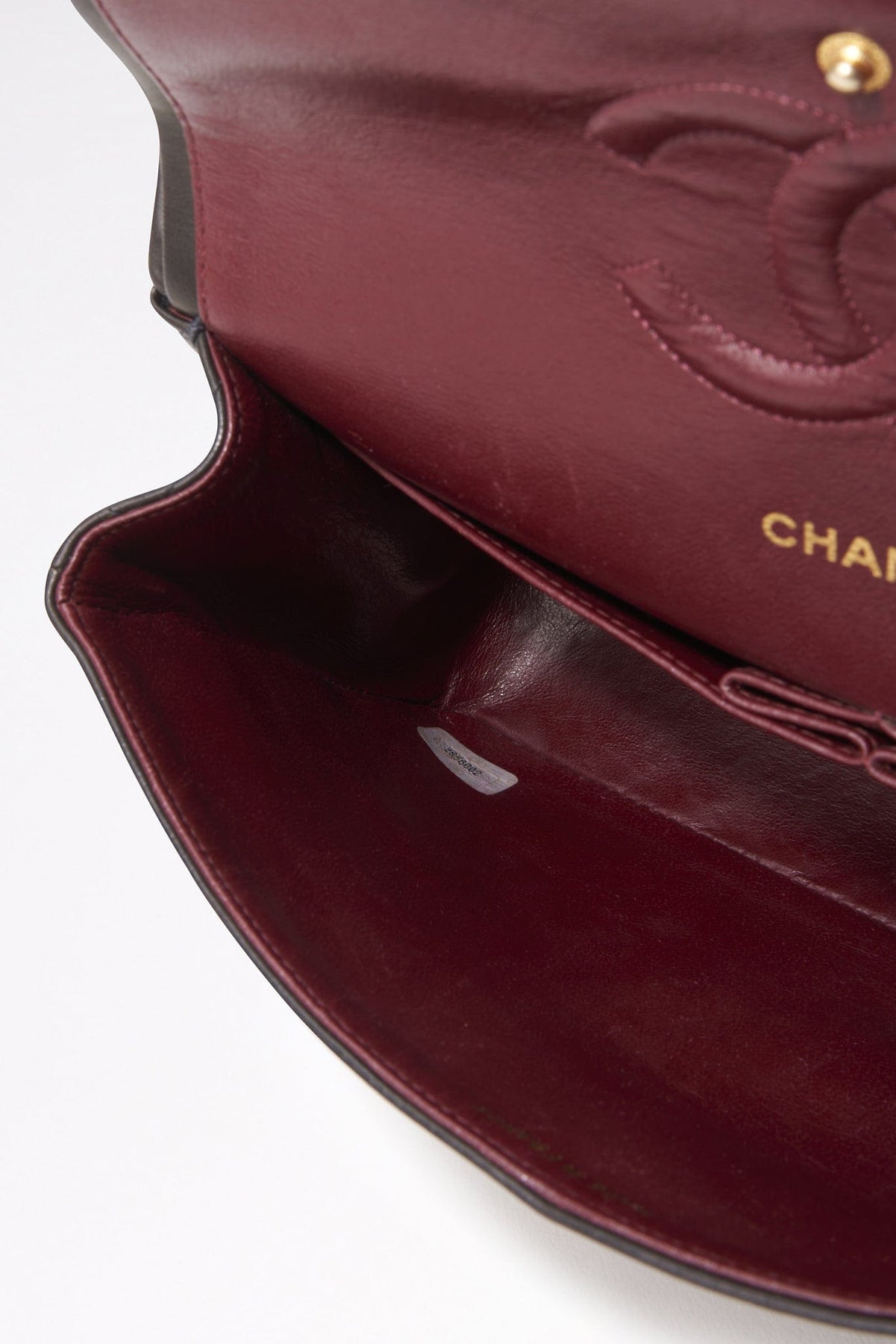 Regular price $1,990.00 Sale price $430.00 Save $1,560.00This vintage Classic Chanel Medium Flap bag is crafted with diamond quilted lambskin leather with 24k gold-plated hardware and a single convertible leather-trimmed chain-link shoulder strap. There is a single exterior patch pocket on the back, a single zip pocket under the front flap and three interior compartments. Inside the bag is lined with maroon leather. New this bag retails at £8530 from Chanel, with prices continuing to increase every year, ensuring a strong resale value.