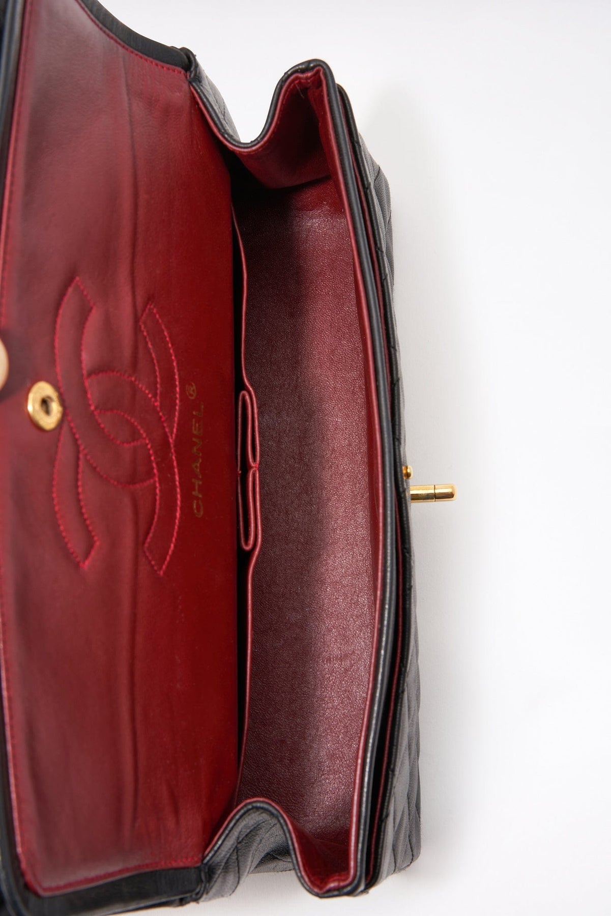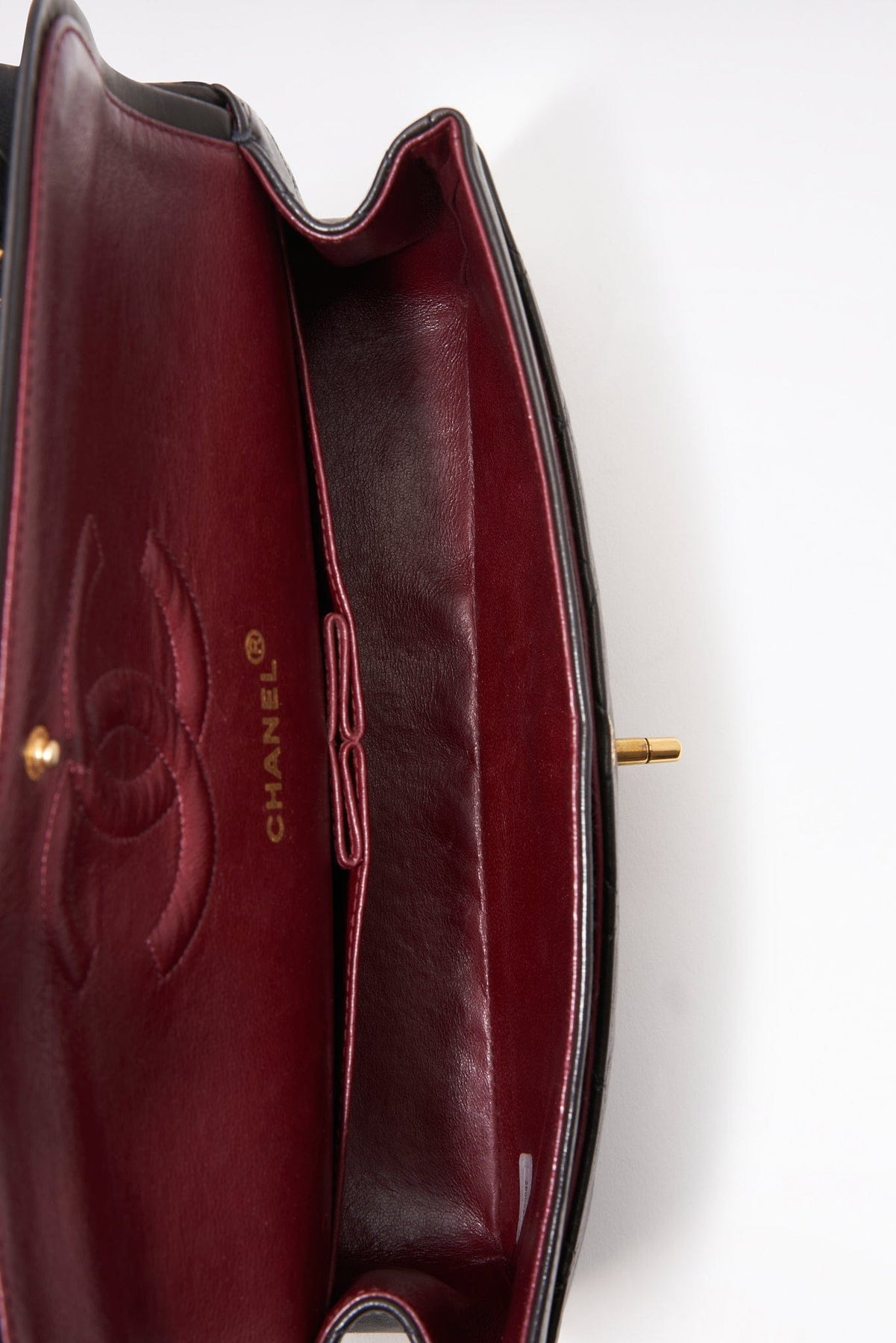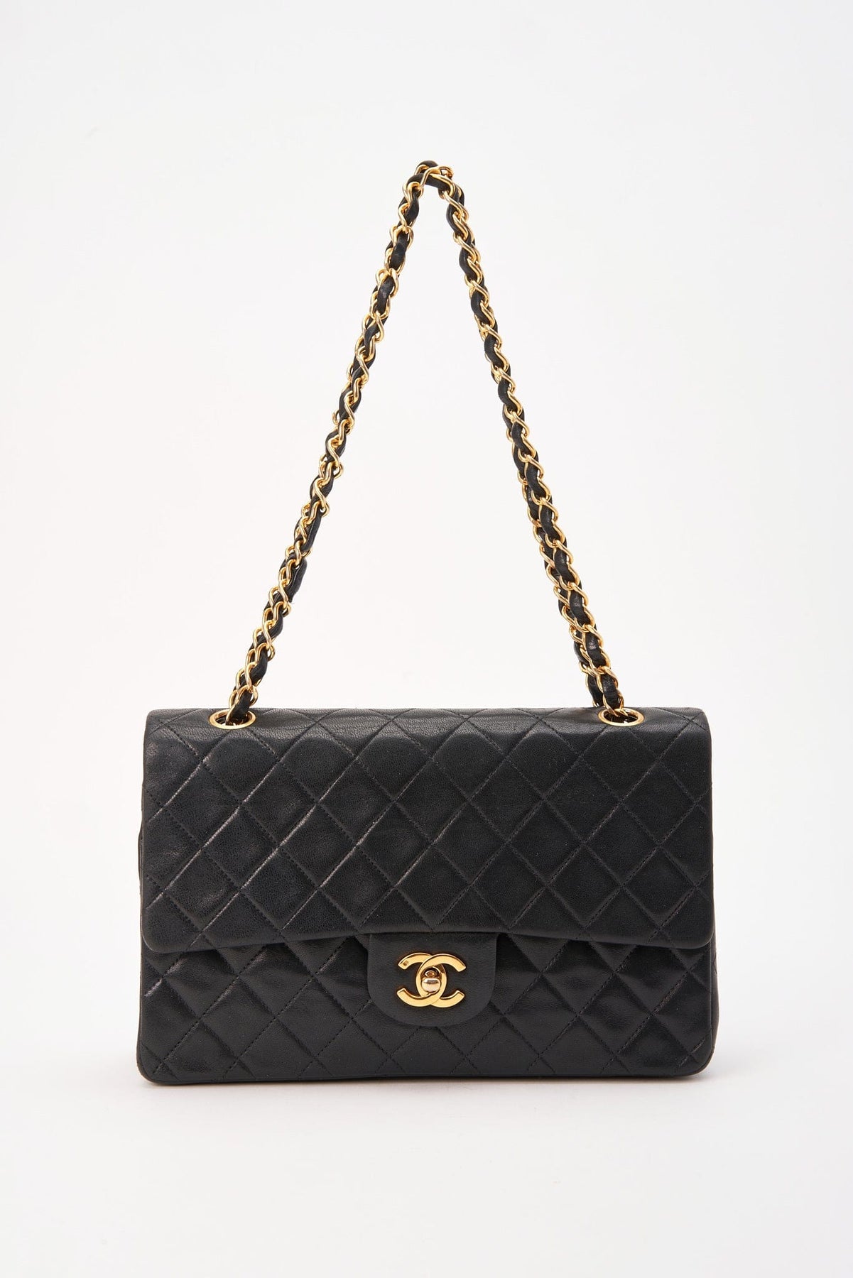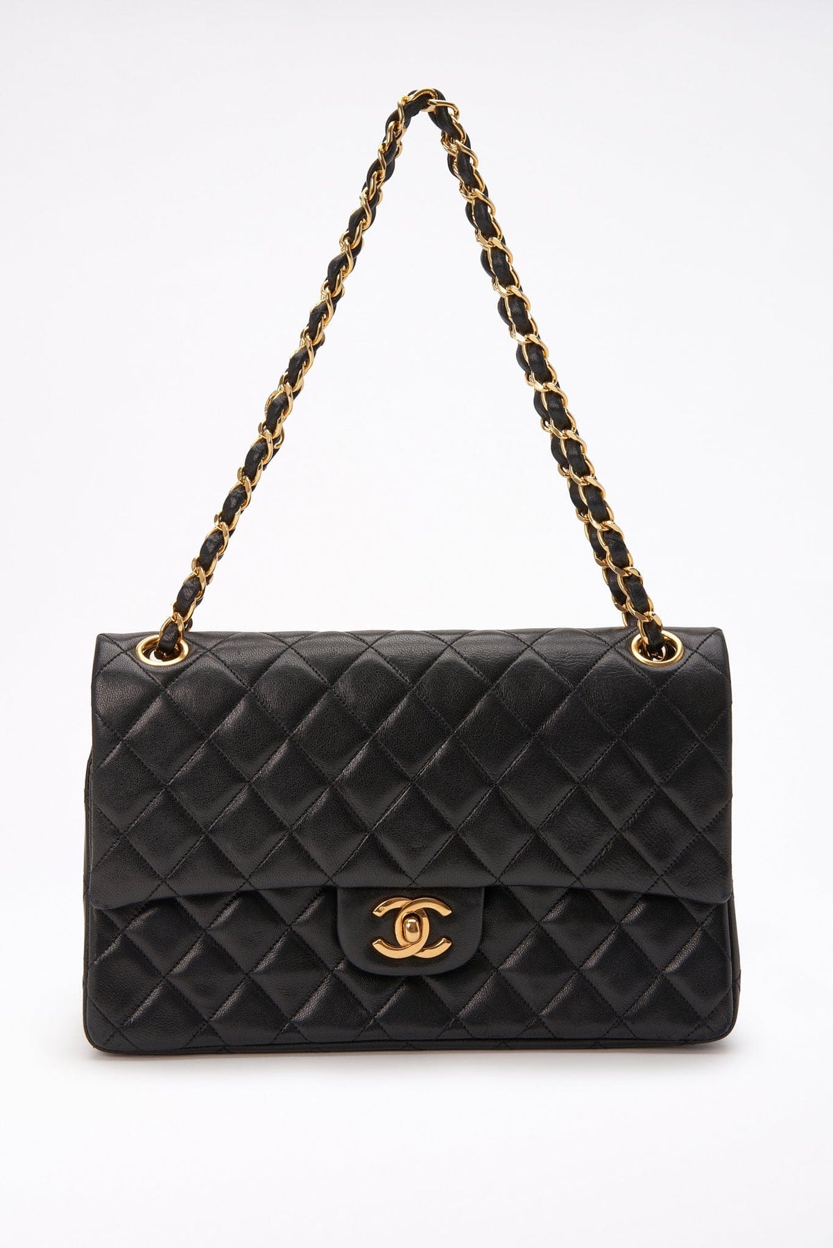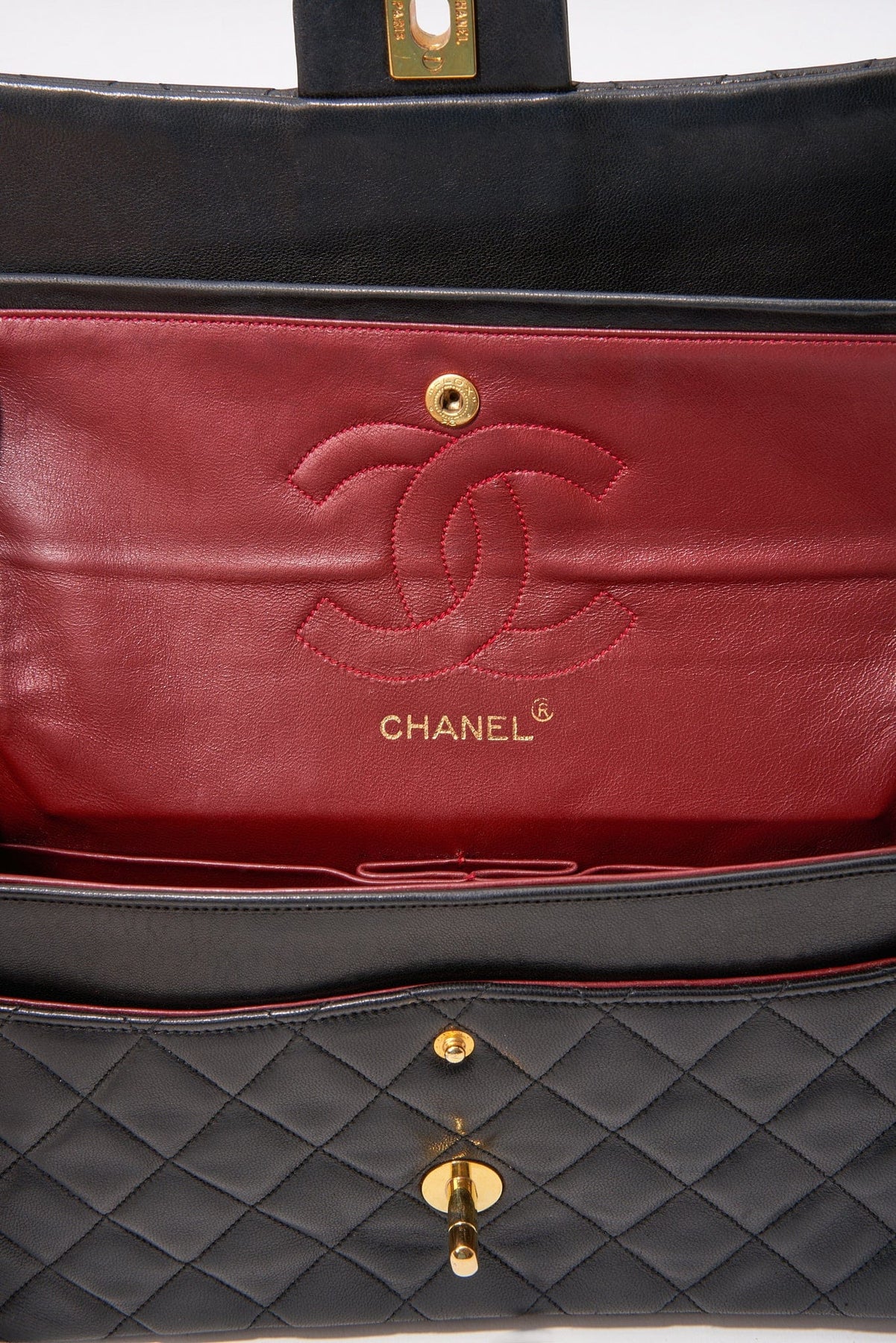 Regular price $1,990.00 Sale price $430.00 Save $1,560.00This vintage Classic Chanel Medium Flap bag is crafted with diamond quilted lambskin leather with 24k gold-plated hardware and a single convertible leather-trimmed chain-link shoulder strap. There is a single exterior patch pocket on the back, a single zip pocket under the front flap and three interior compartments. Inside the bag is lined with maroon leather. New this bag retails at £8530 from Chanel, with prices continuing to increase every year, ensuring a strong resale value.
