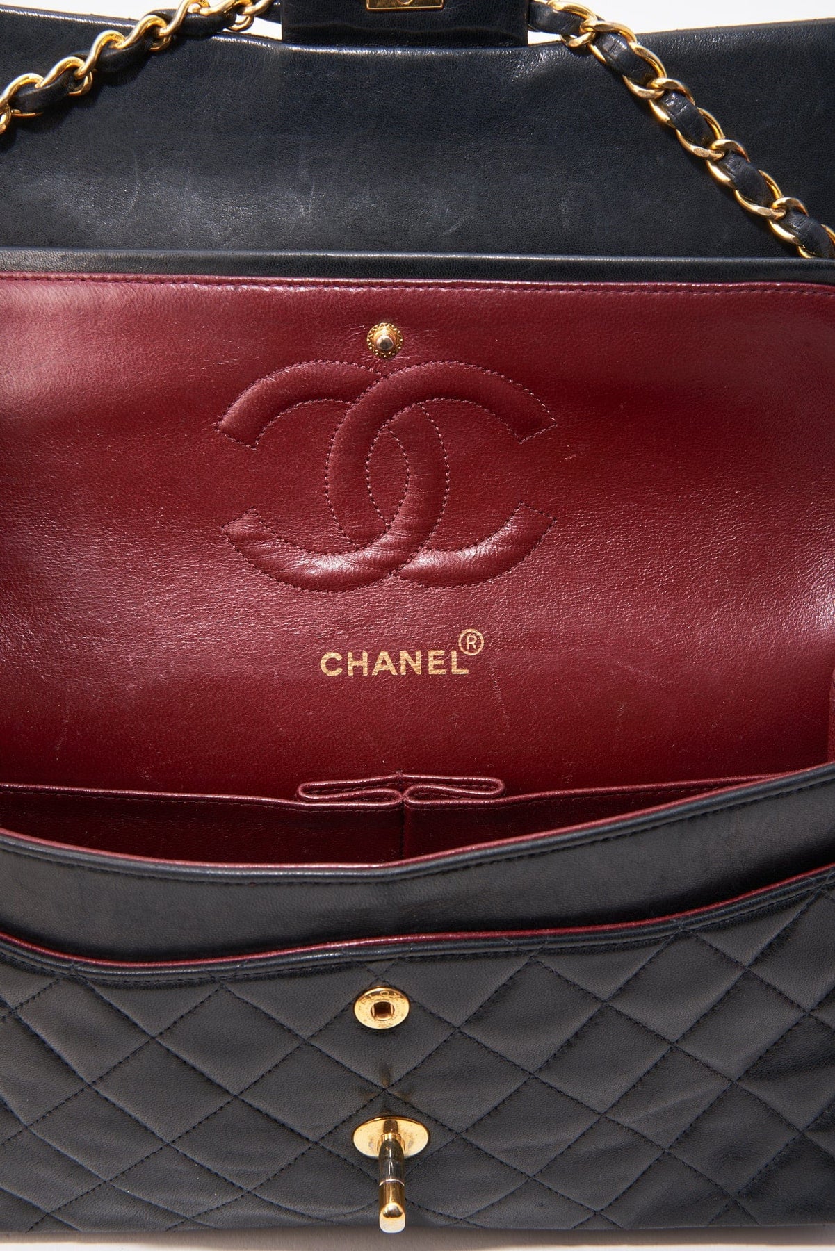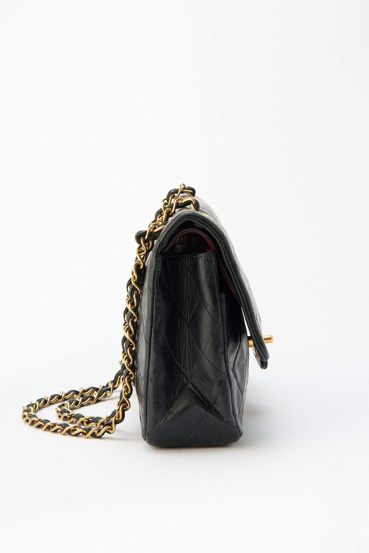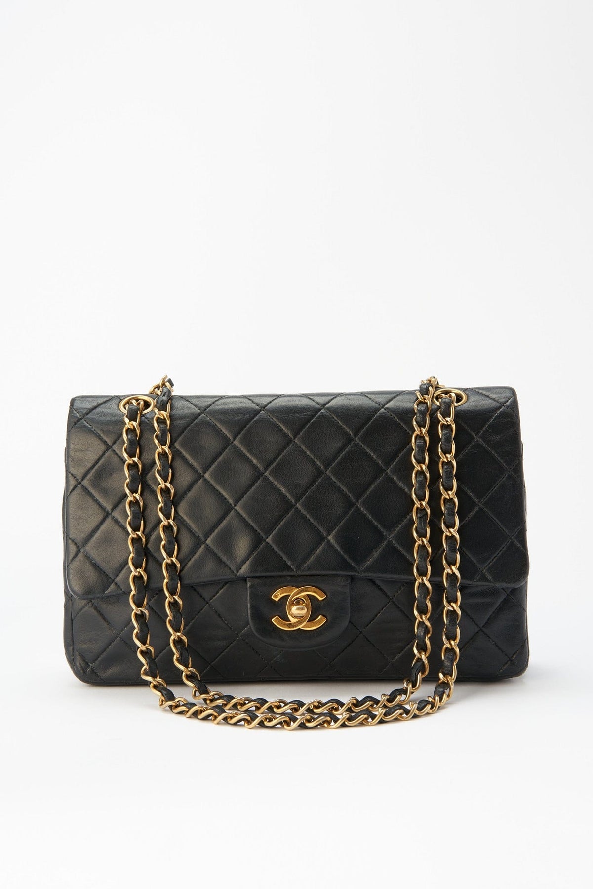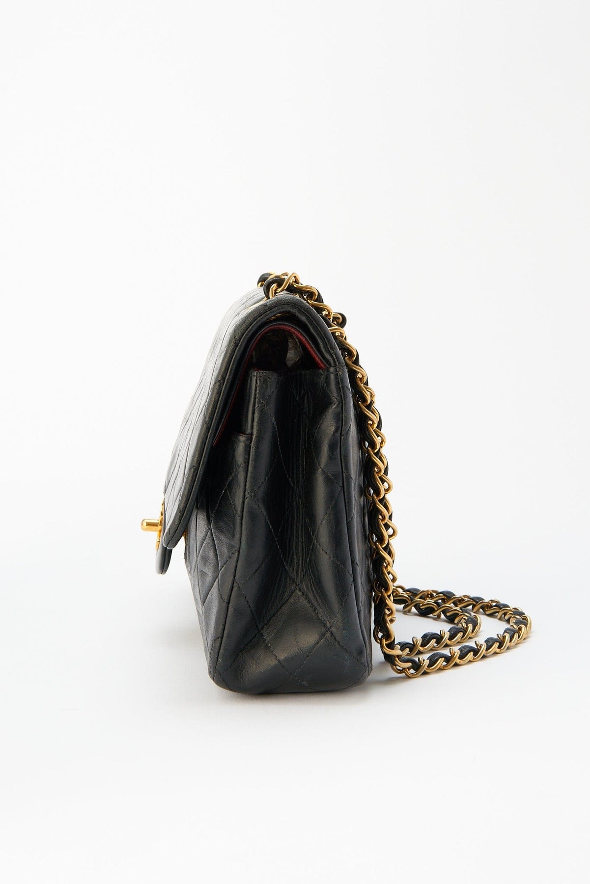 Regular price $1,990.00 Sale price $430.00 Save $1,560.00This vintage Classic Chanel Medium Flap bag is crafted with diamond quilted lambskin leather with 24k gold-plated hardware and a single convertible leather-trimmed chain-link shoulder strap. There is a single exterior patch pocket on the back, a single zip pocket under the front flap and three interior compartments. Inside the bag is lined with maroon leather. New this bag retails at £8530 from Chanel, with prices continuing to increase every year, ensuring a strong resale value.