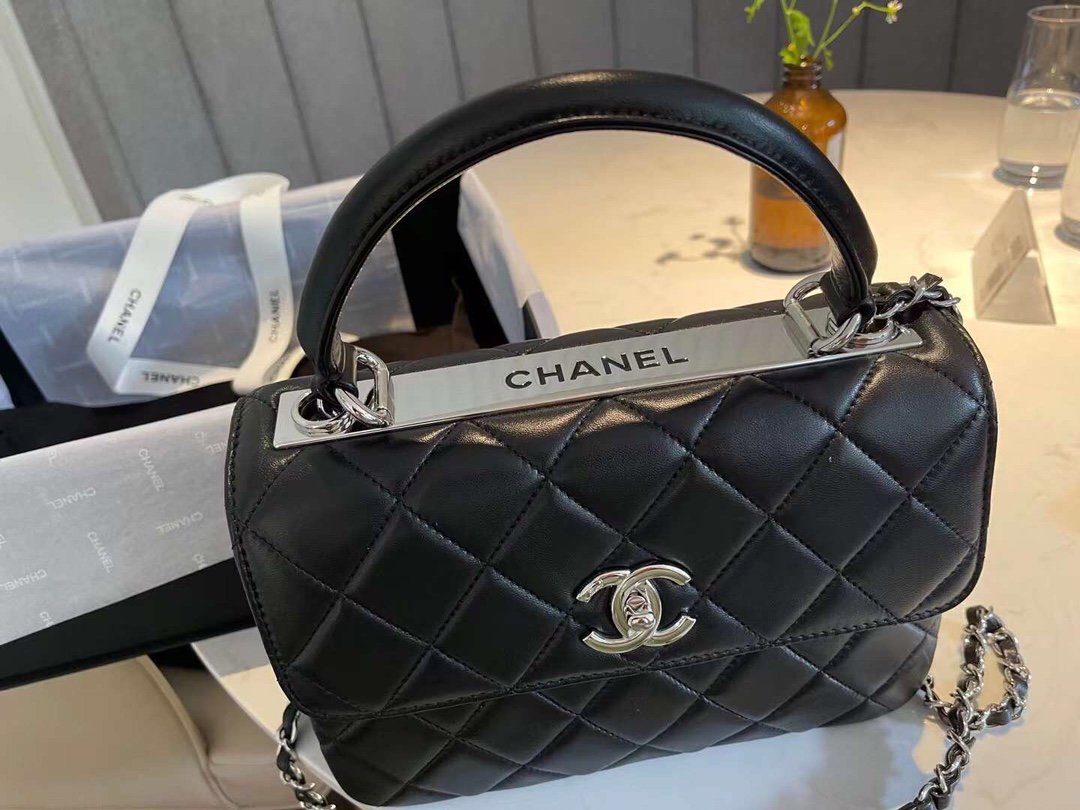 Chanel Classic Flap Bag Silver Hardware 25cm Black