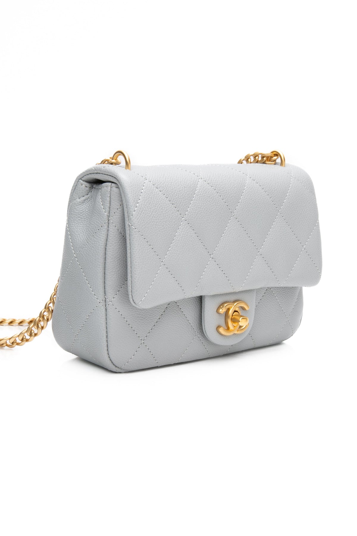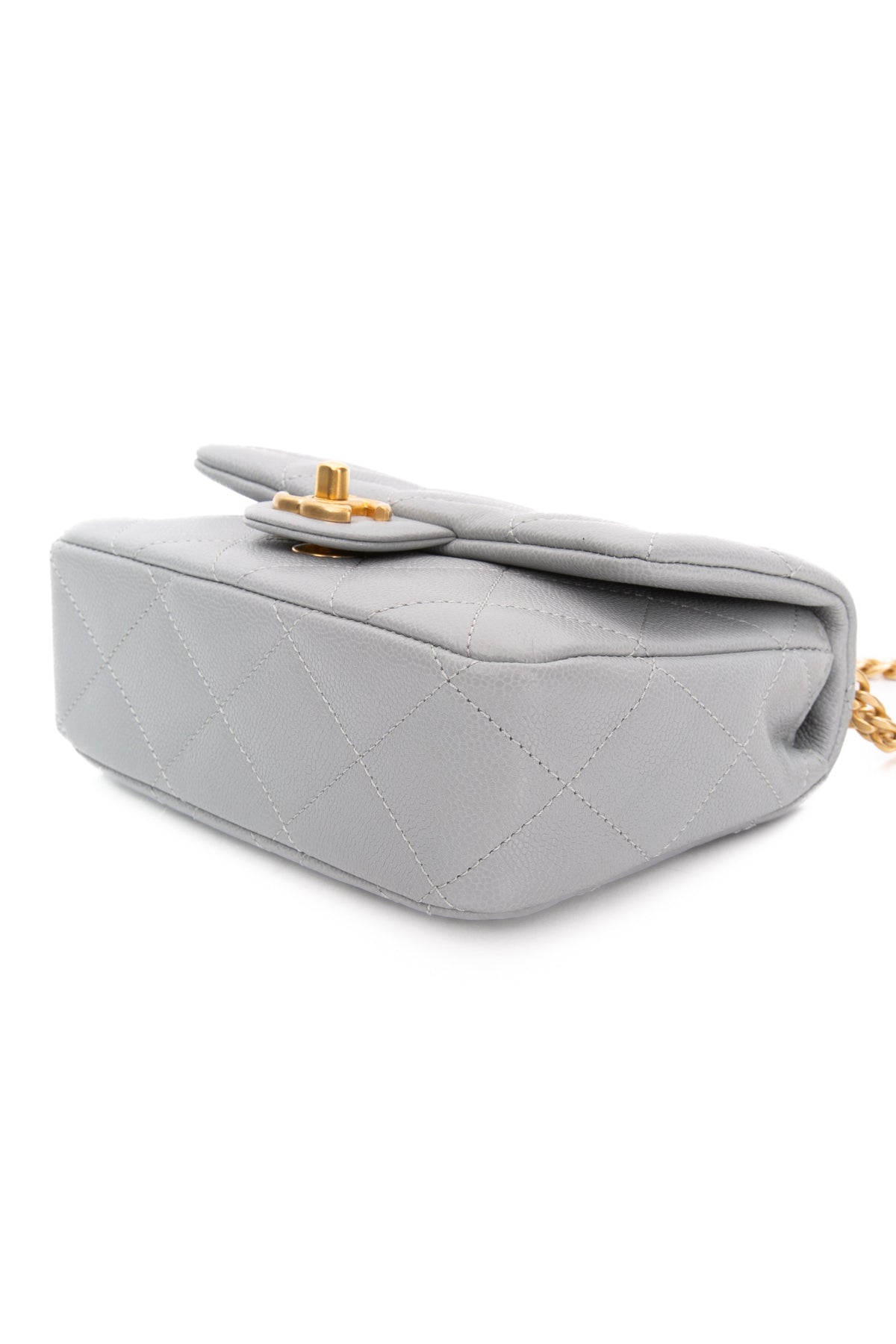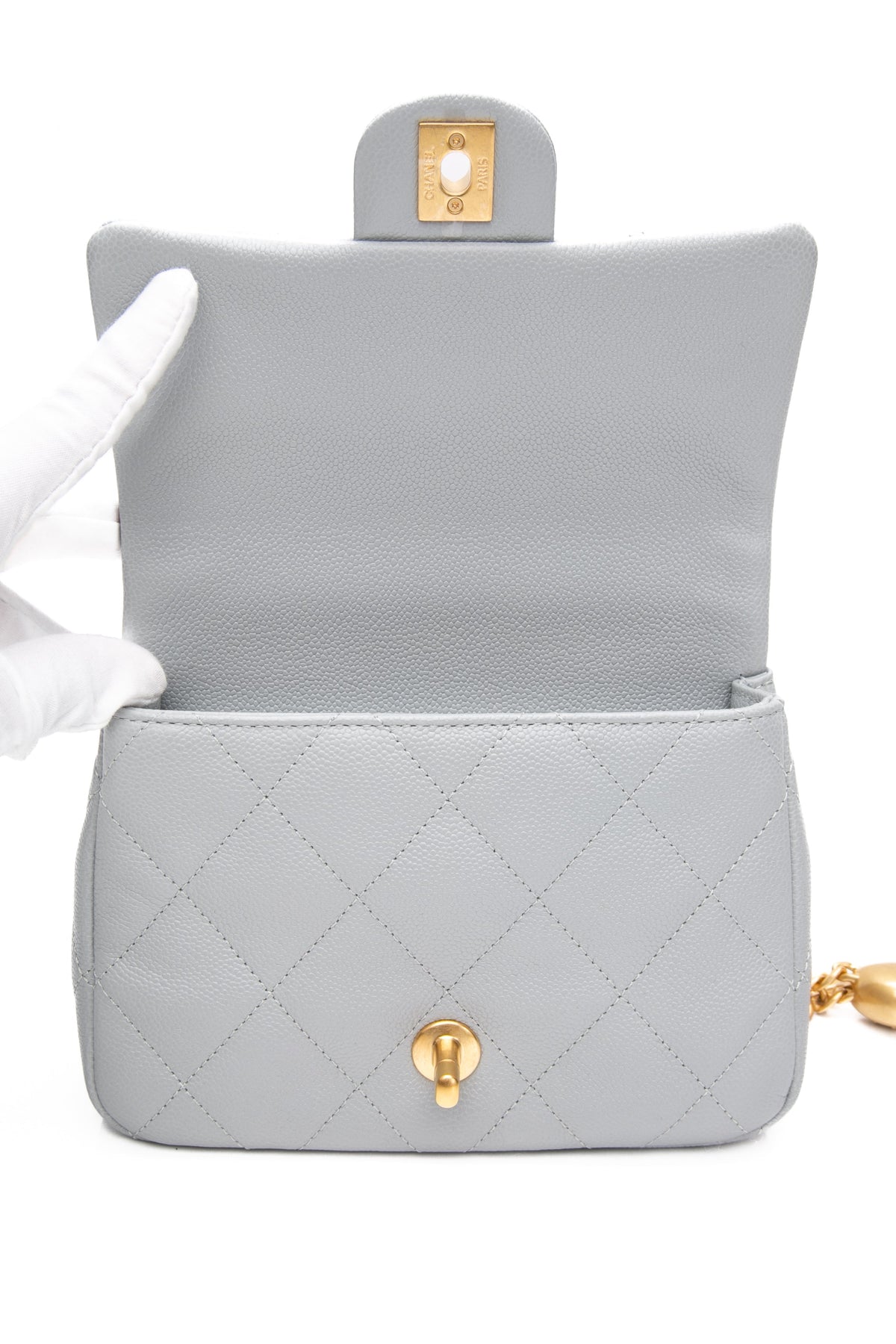 CHANEL Grey Caviar Quilted Sweetheart Mini Flap Bag