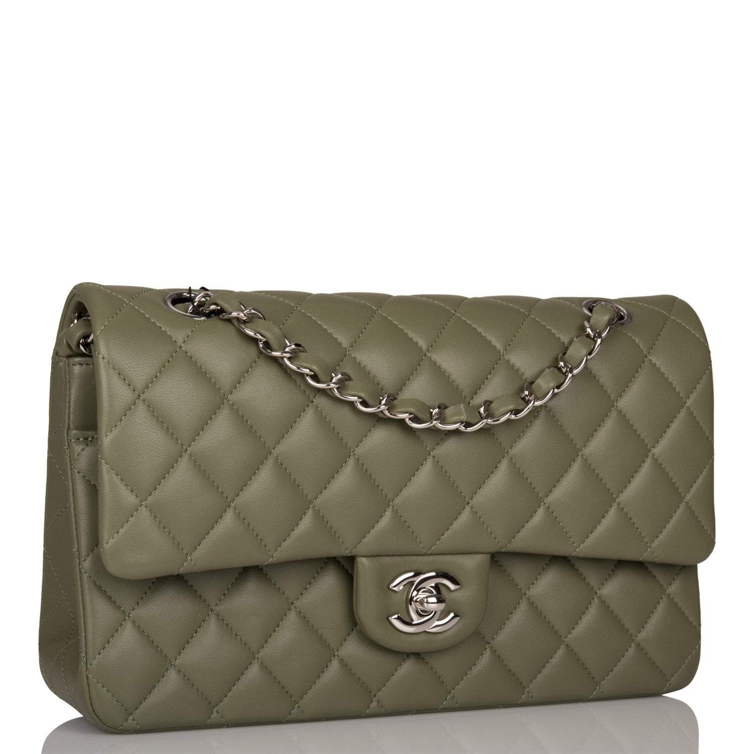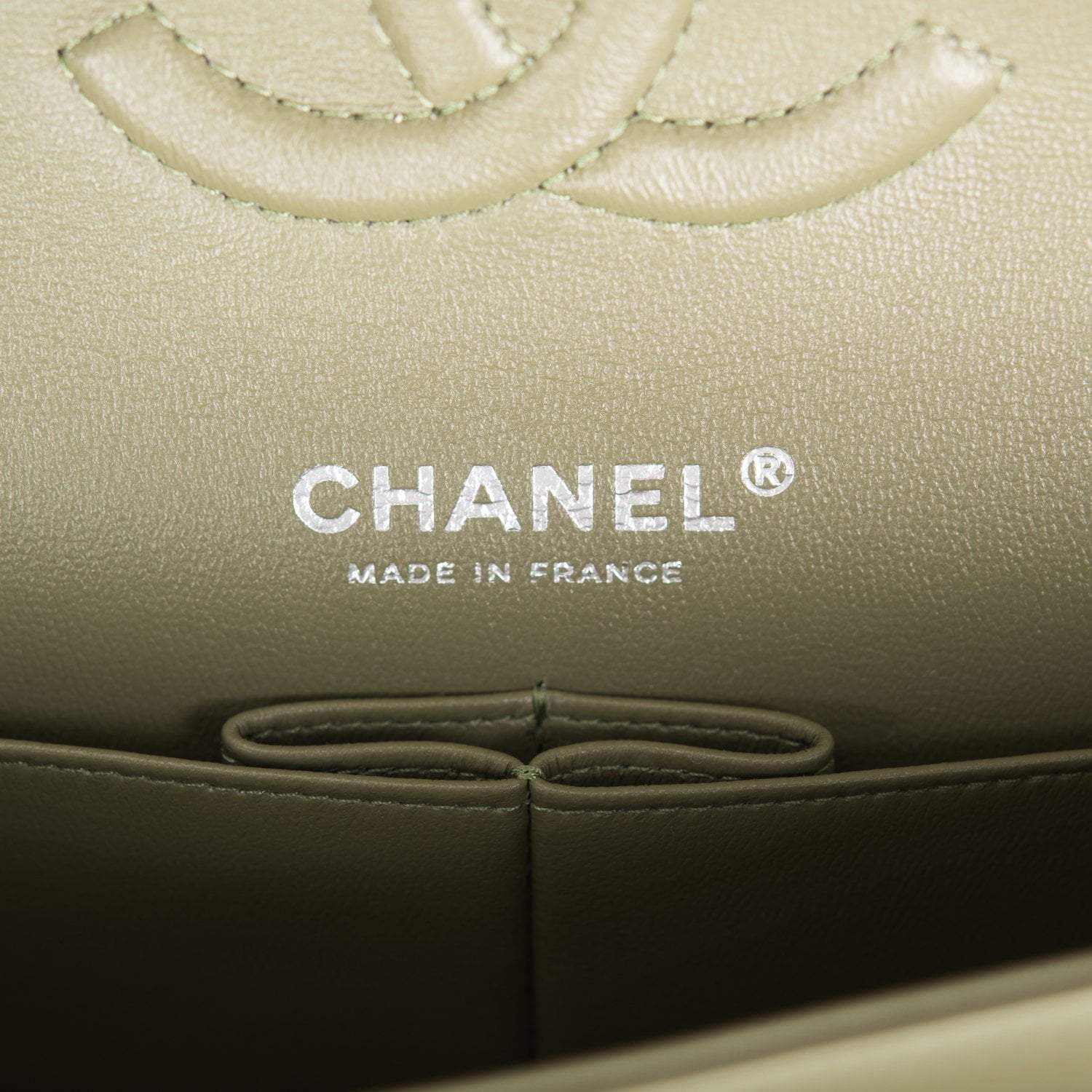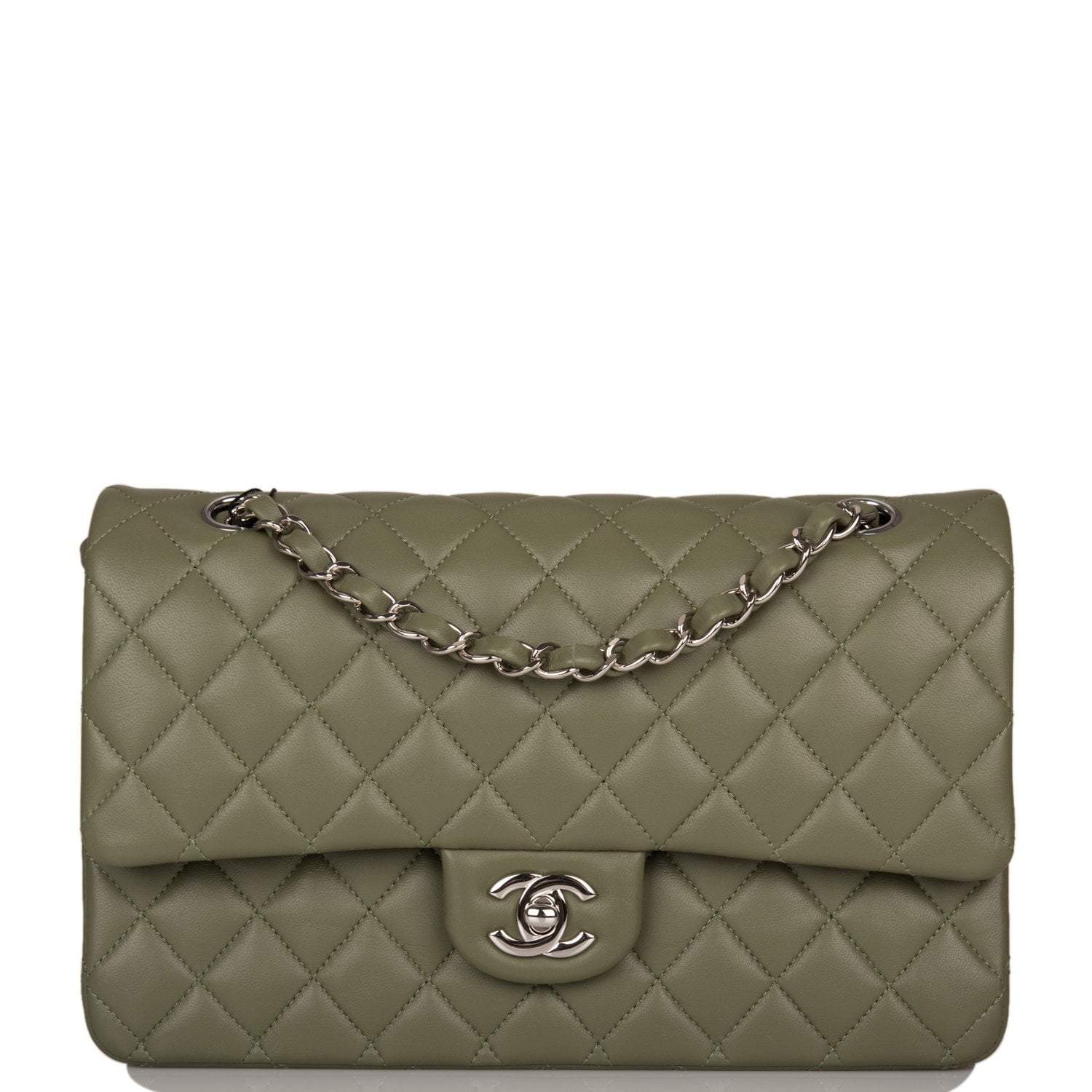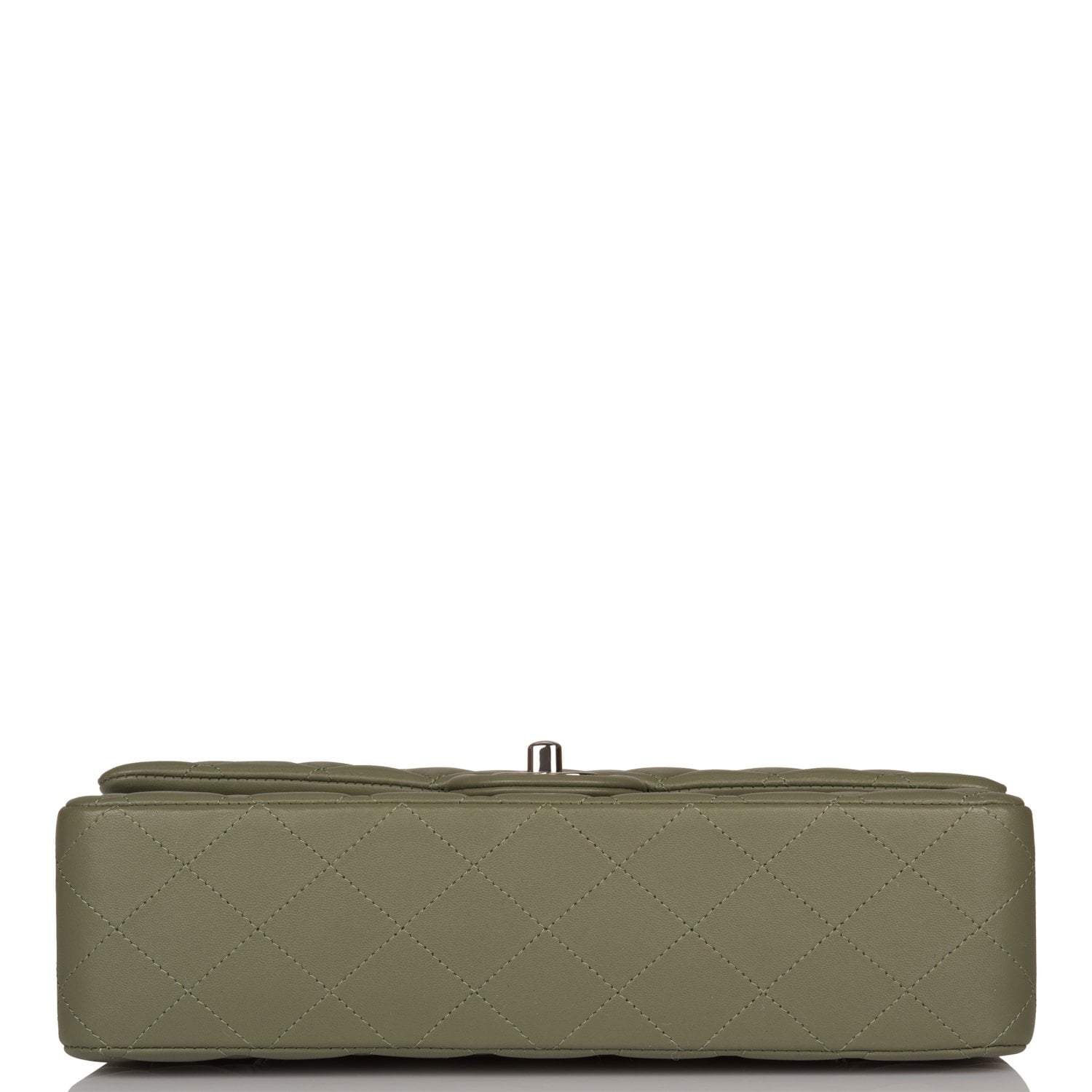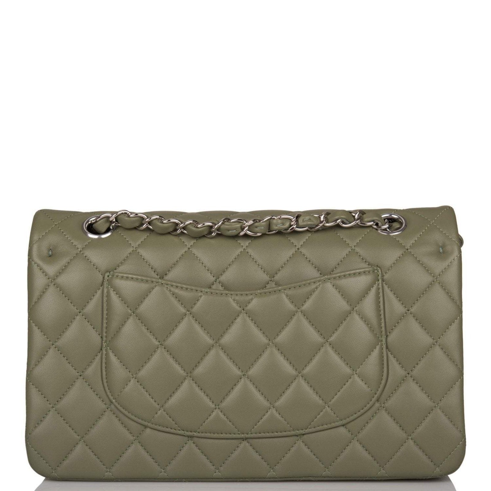 Chanel Green Quilted Lambskin Medium Classic Double Flap Bag Silver Hardware