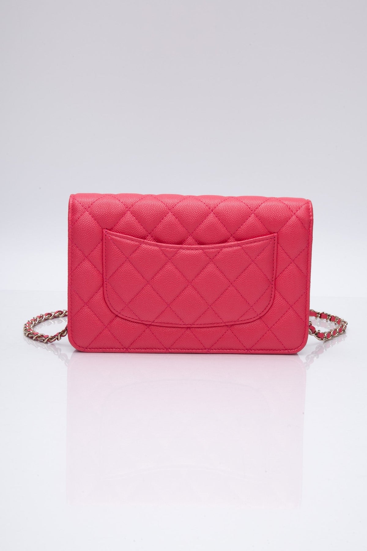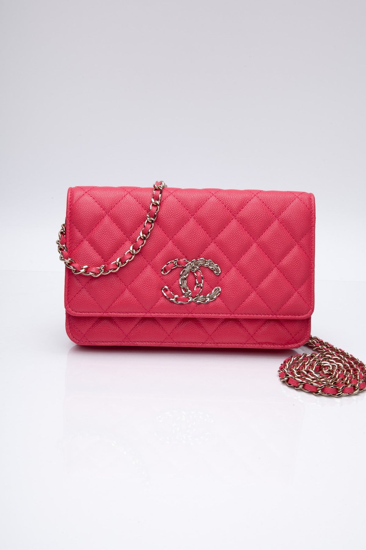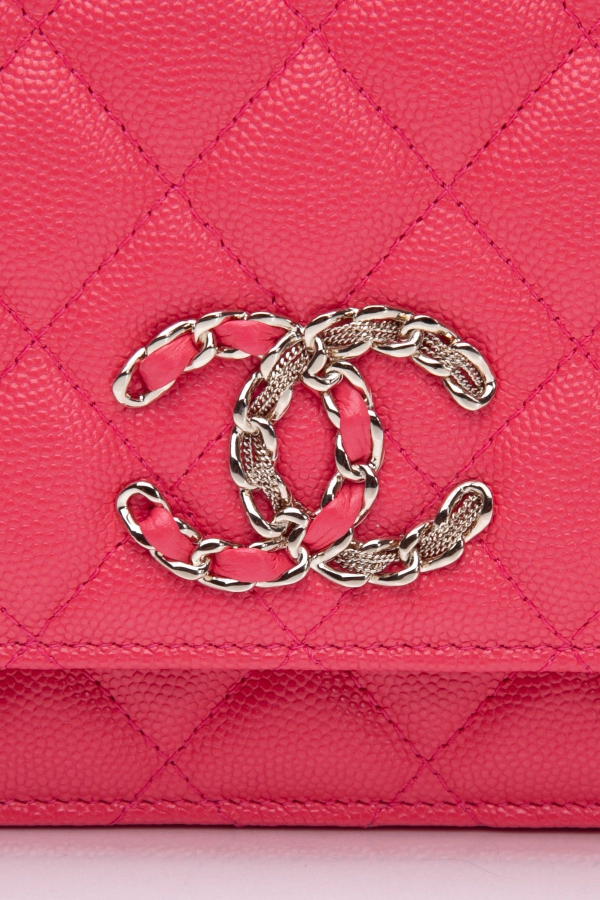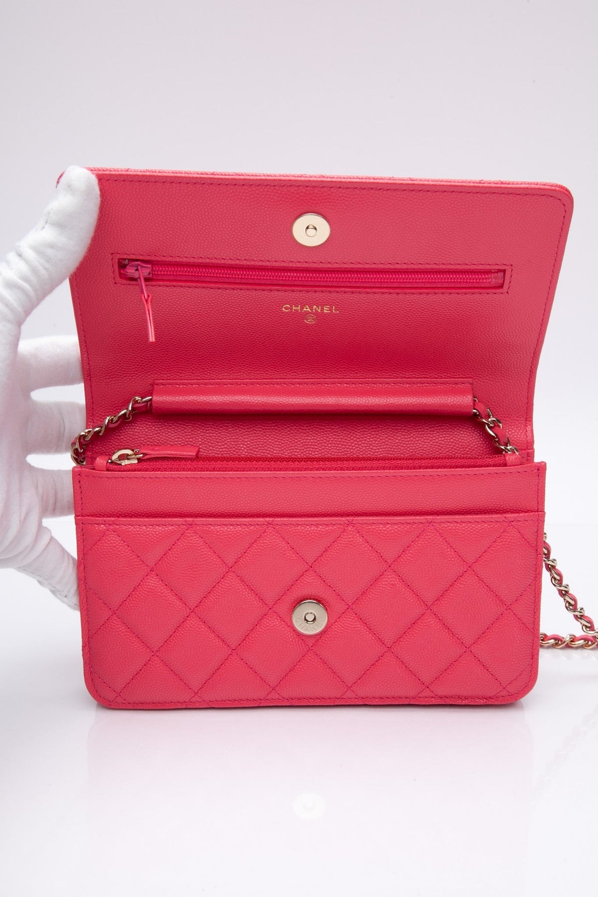 CHANEL Hot Pink Caviar Quilted French New Wave Chain CC Wallet On Chain WOC
