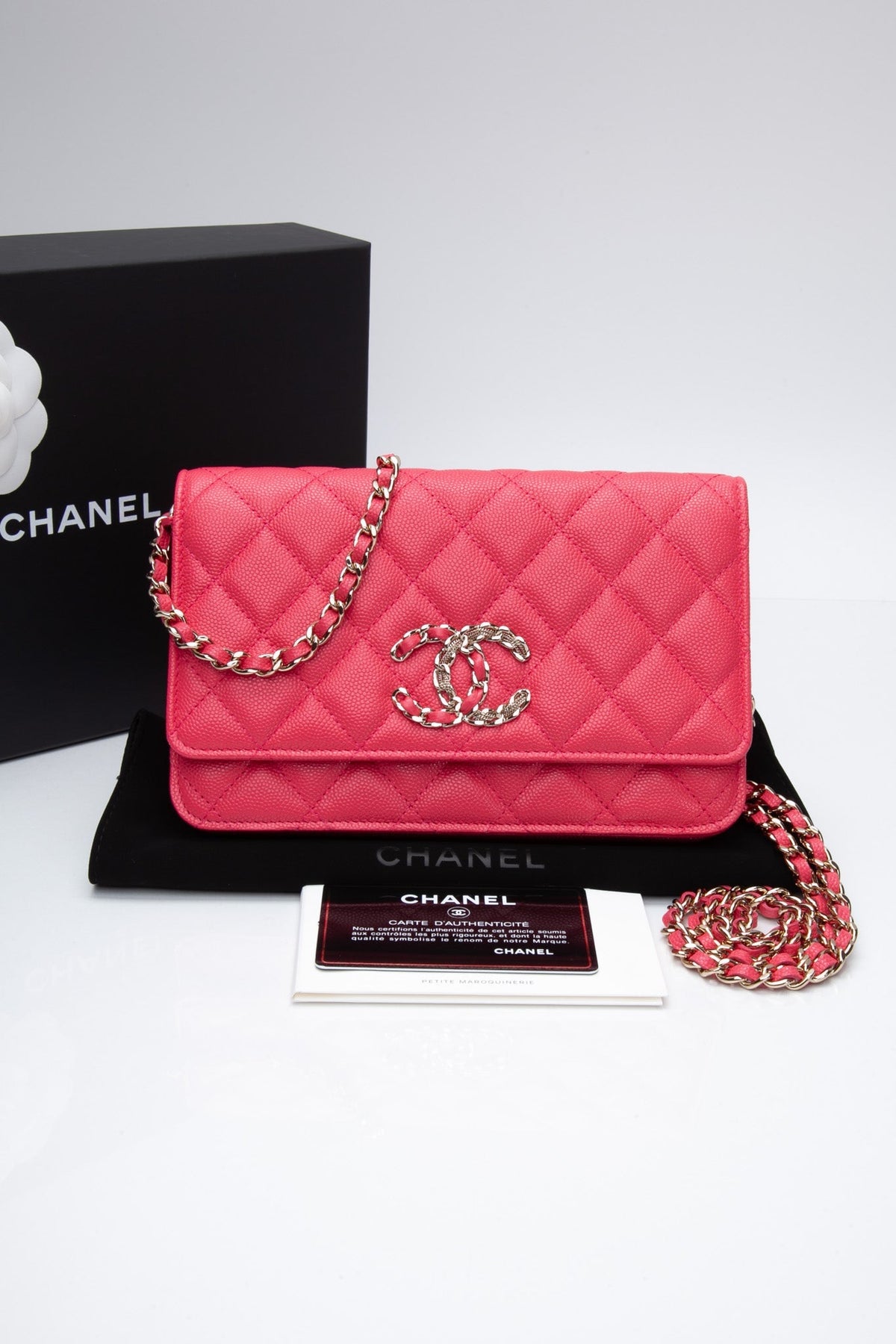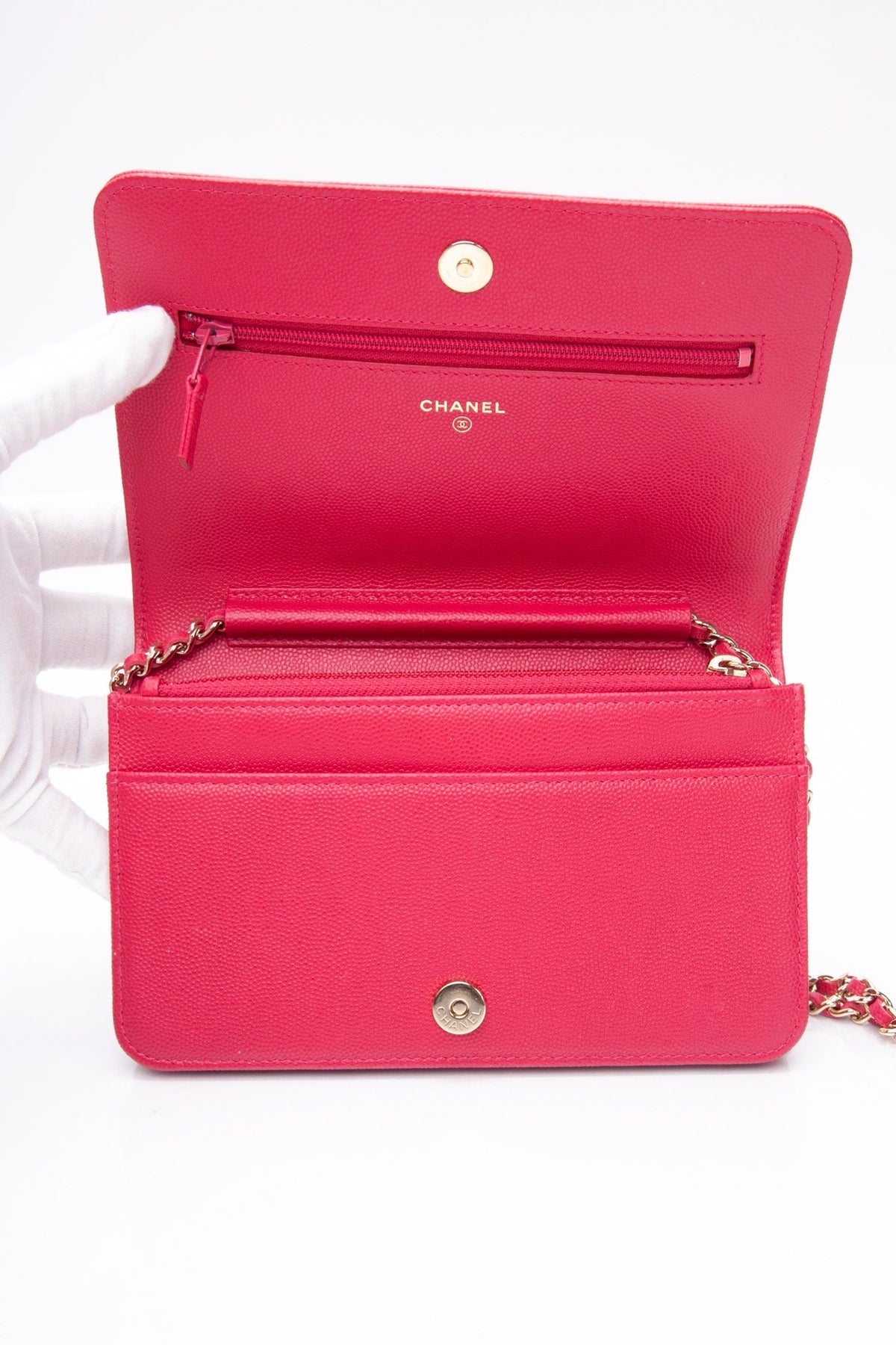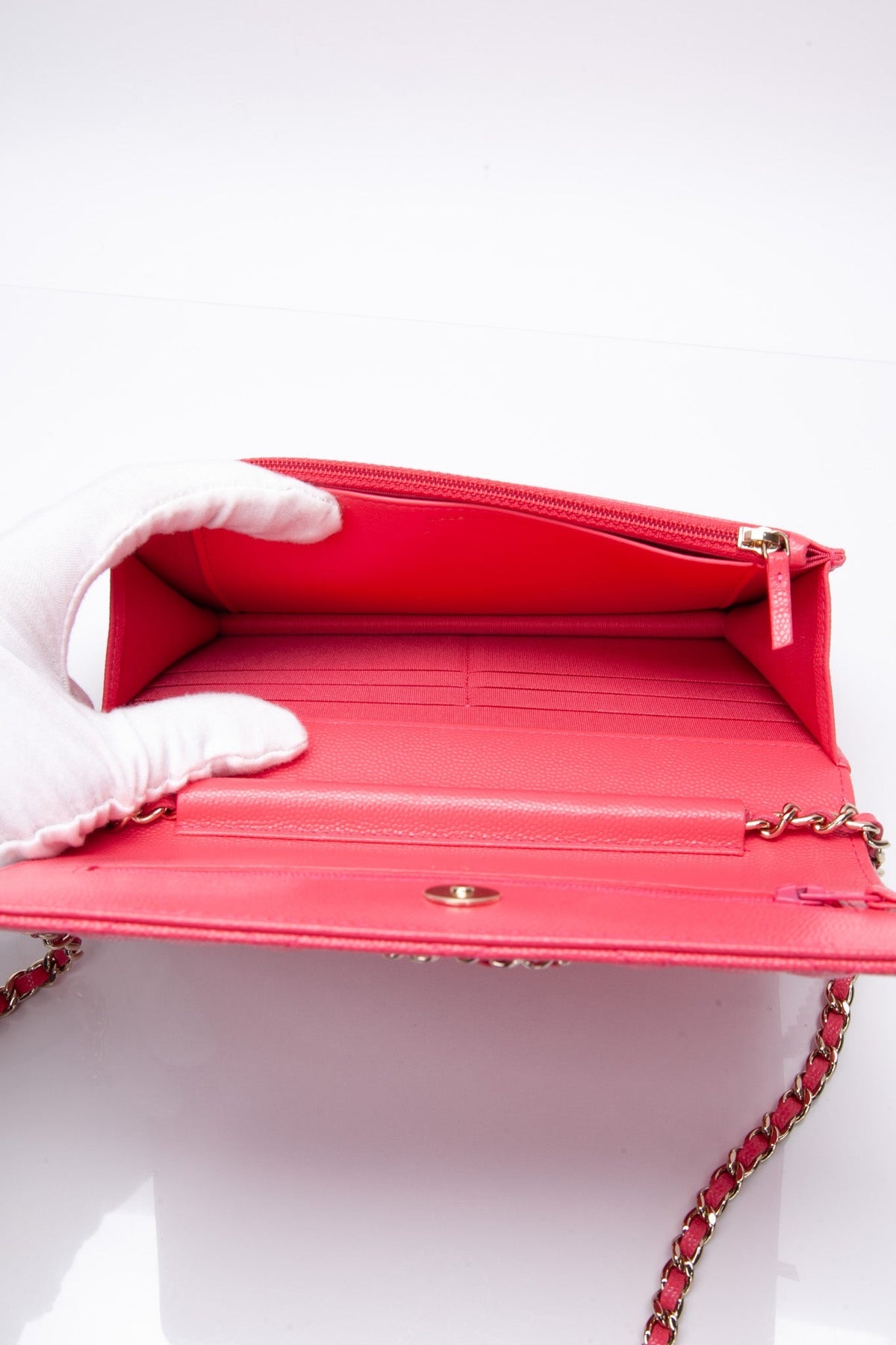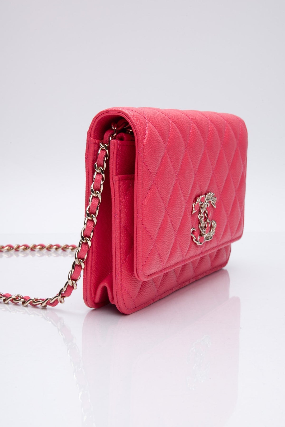 CHANEL Hot Pink Caviar Quilted French New Wave Chain CC Wallet On Chain WOC