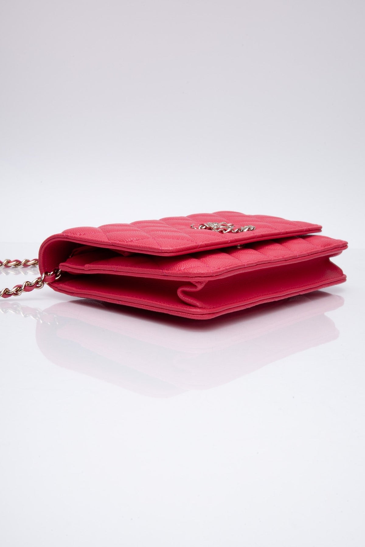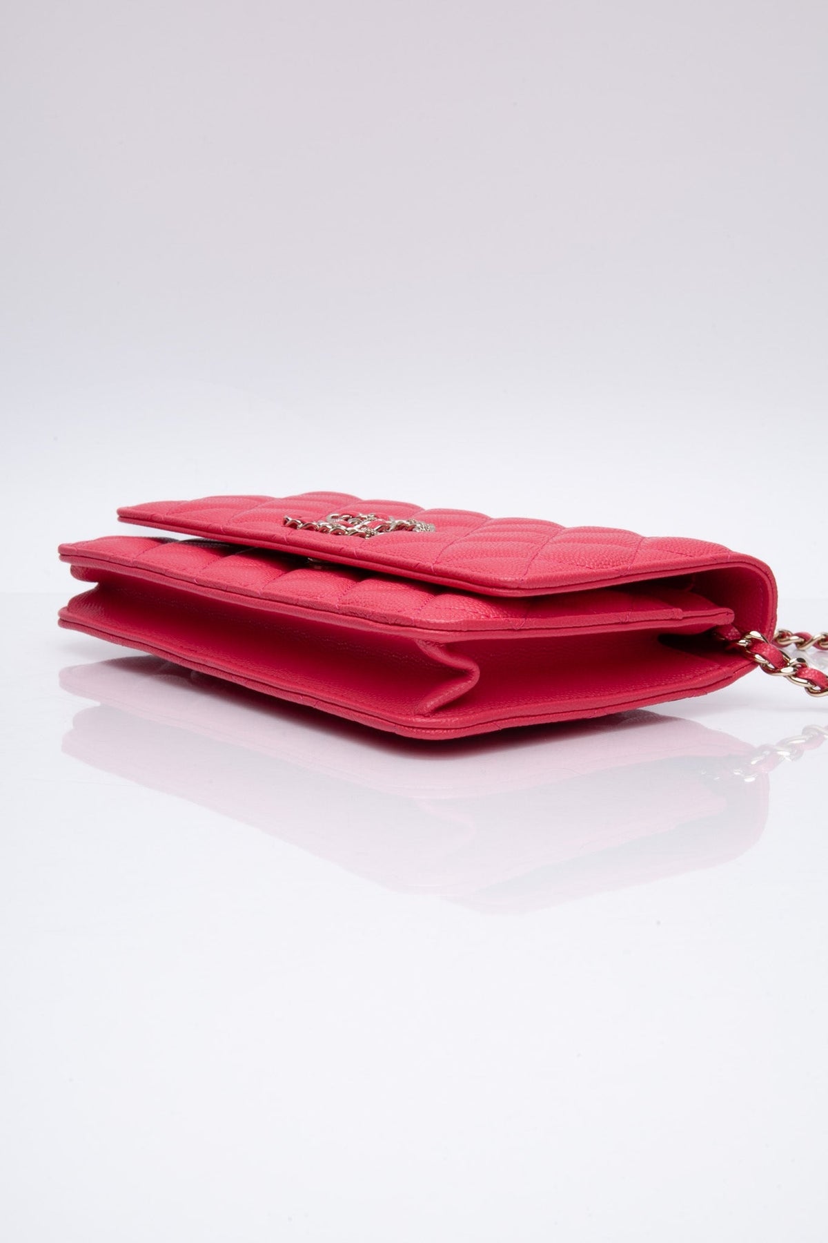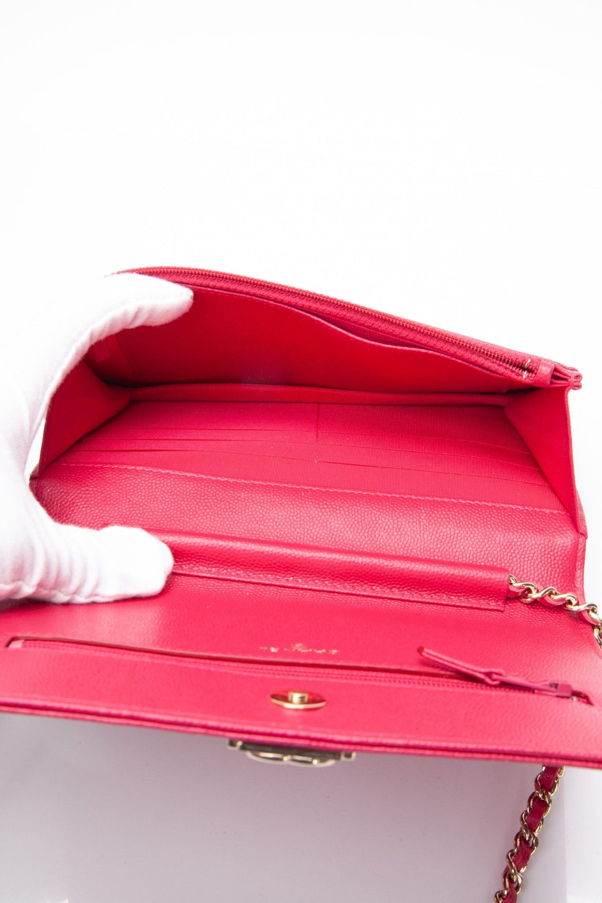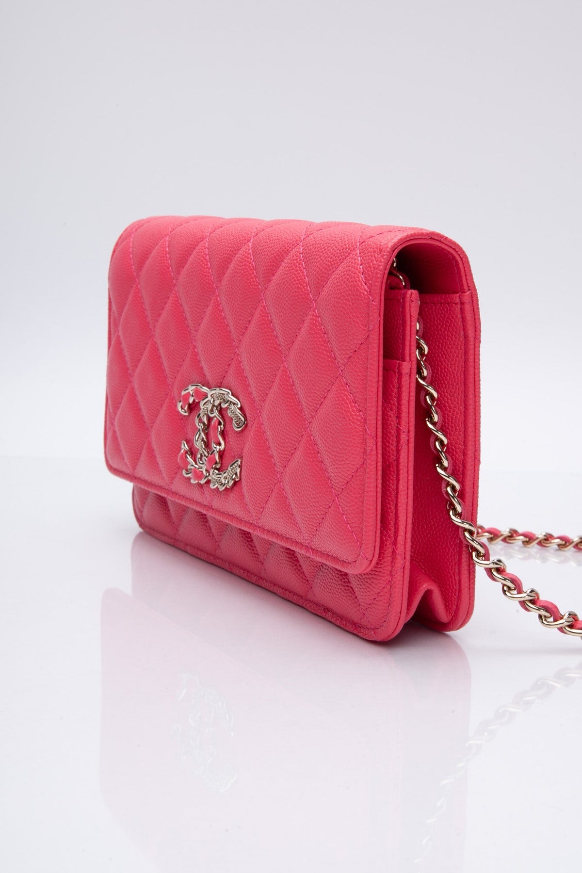 CHANEL Hot Pink Caviar Quilted French New Wave Chain CC Wallet On Chain WOC