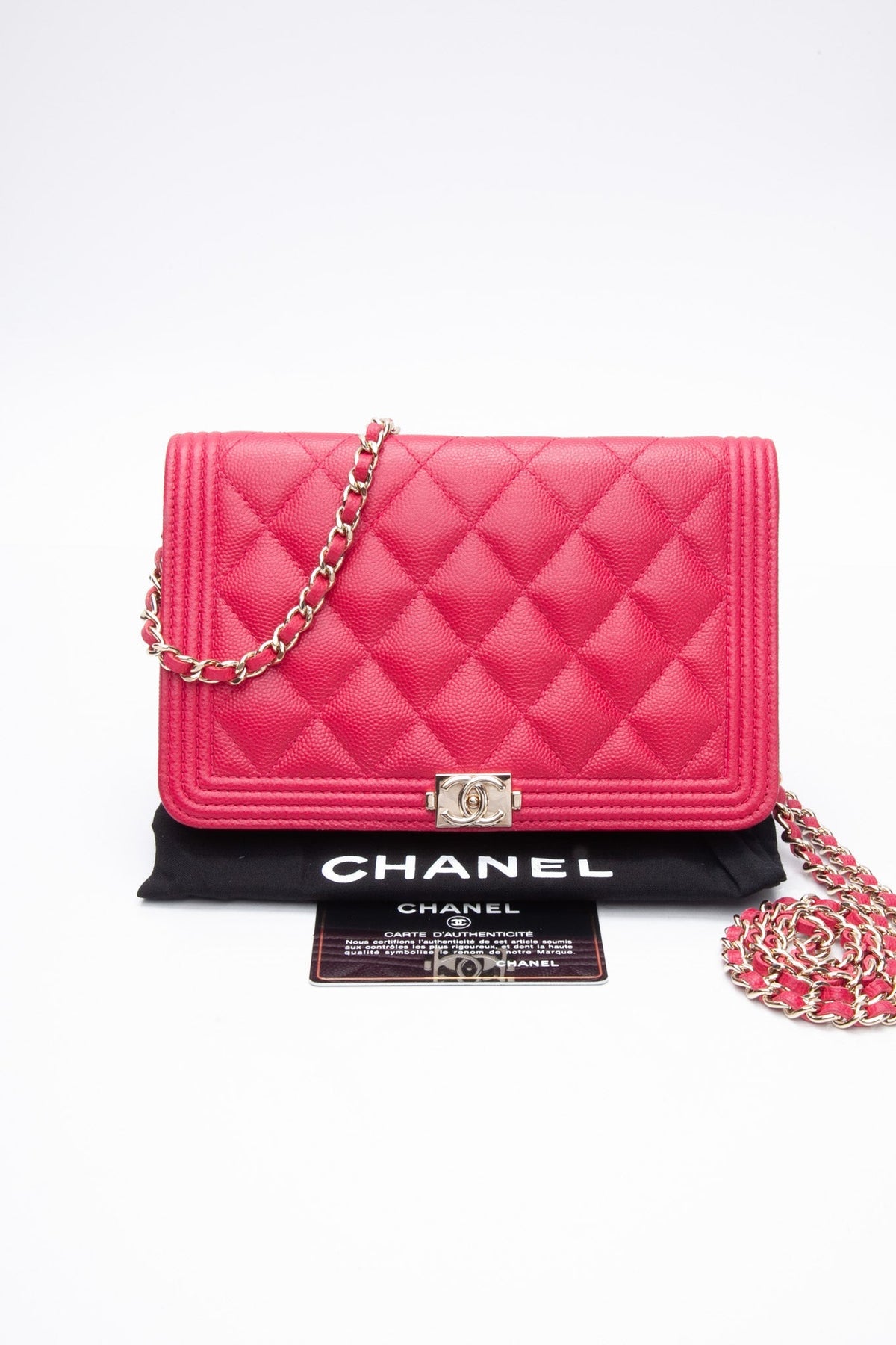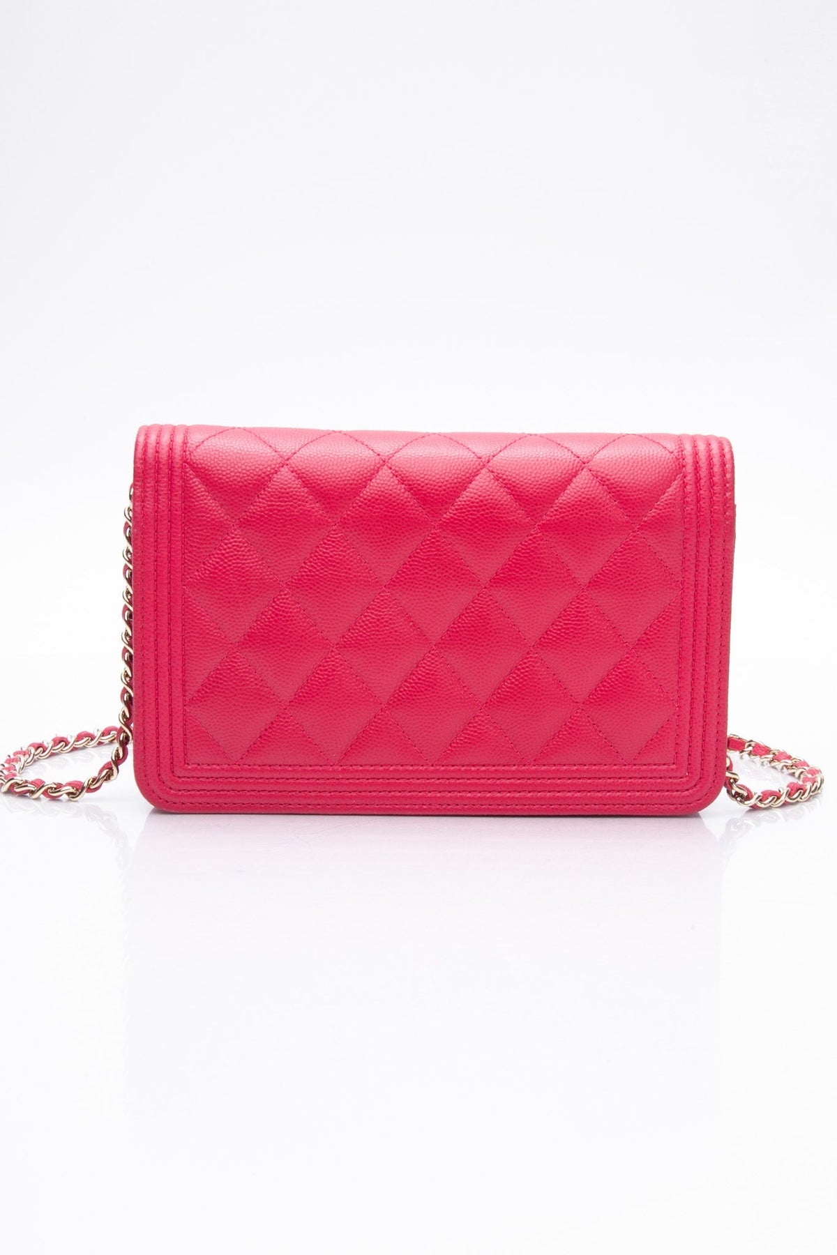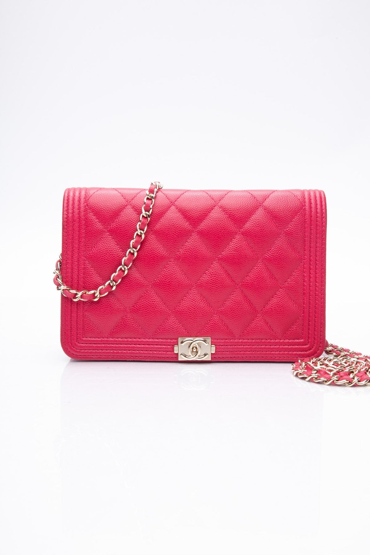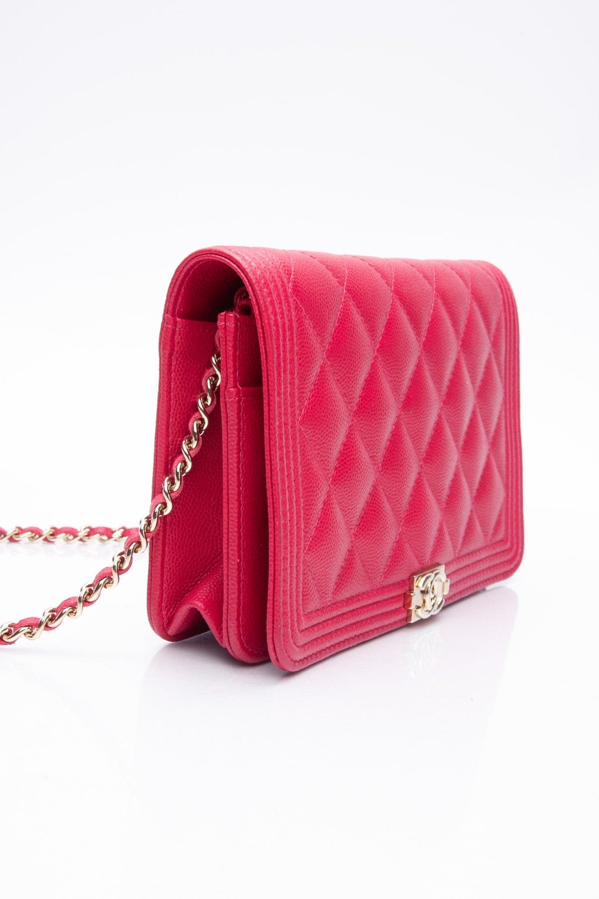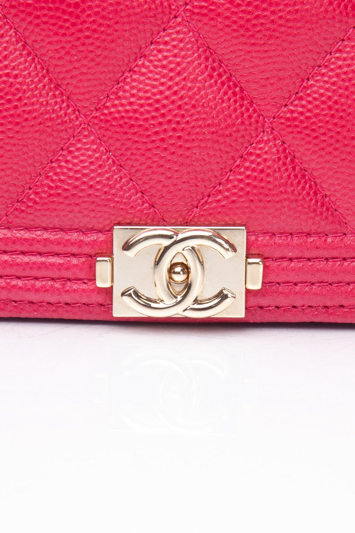 CHANEL Hot Pink Caviar Quilted Boy Wallet On Chain WOC