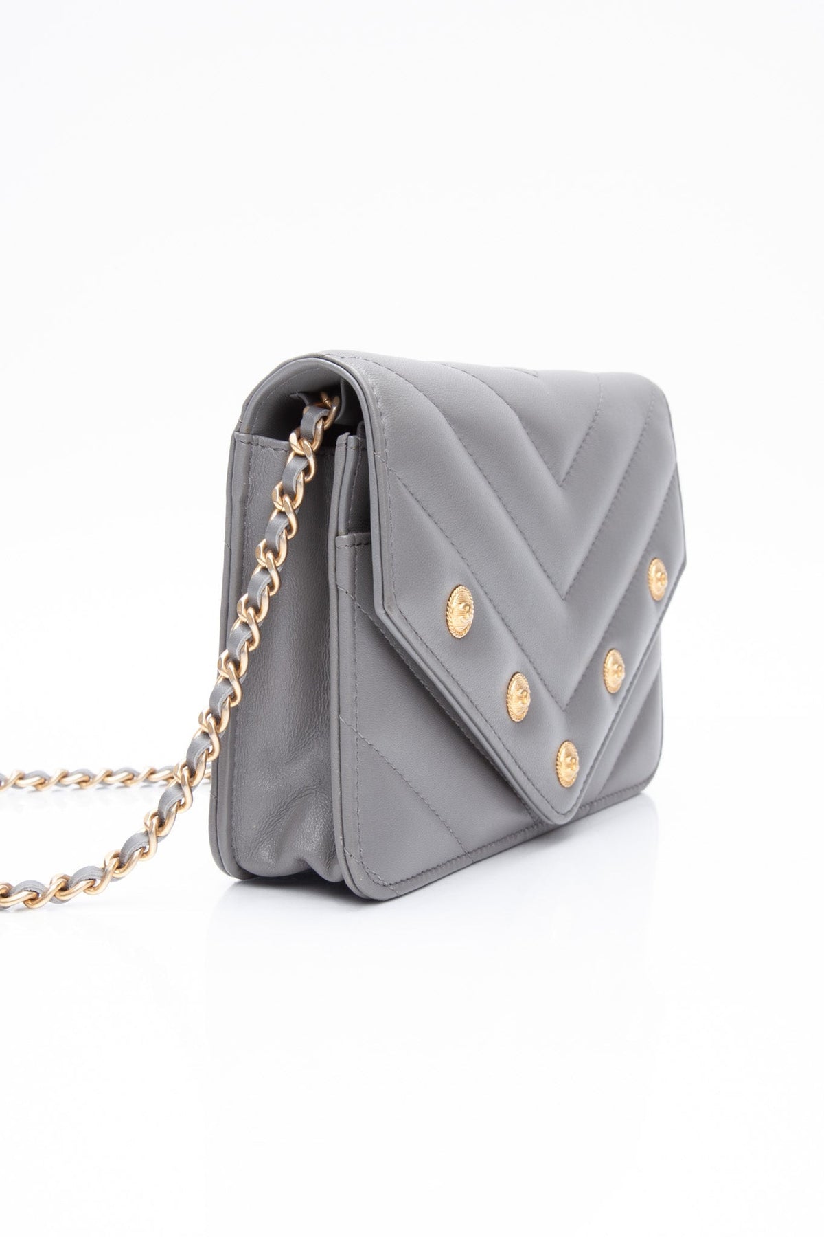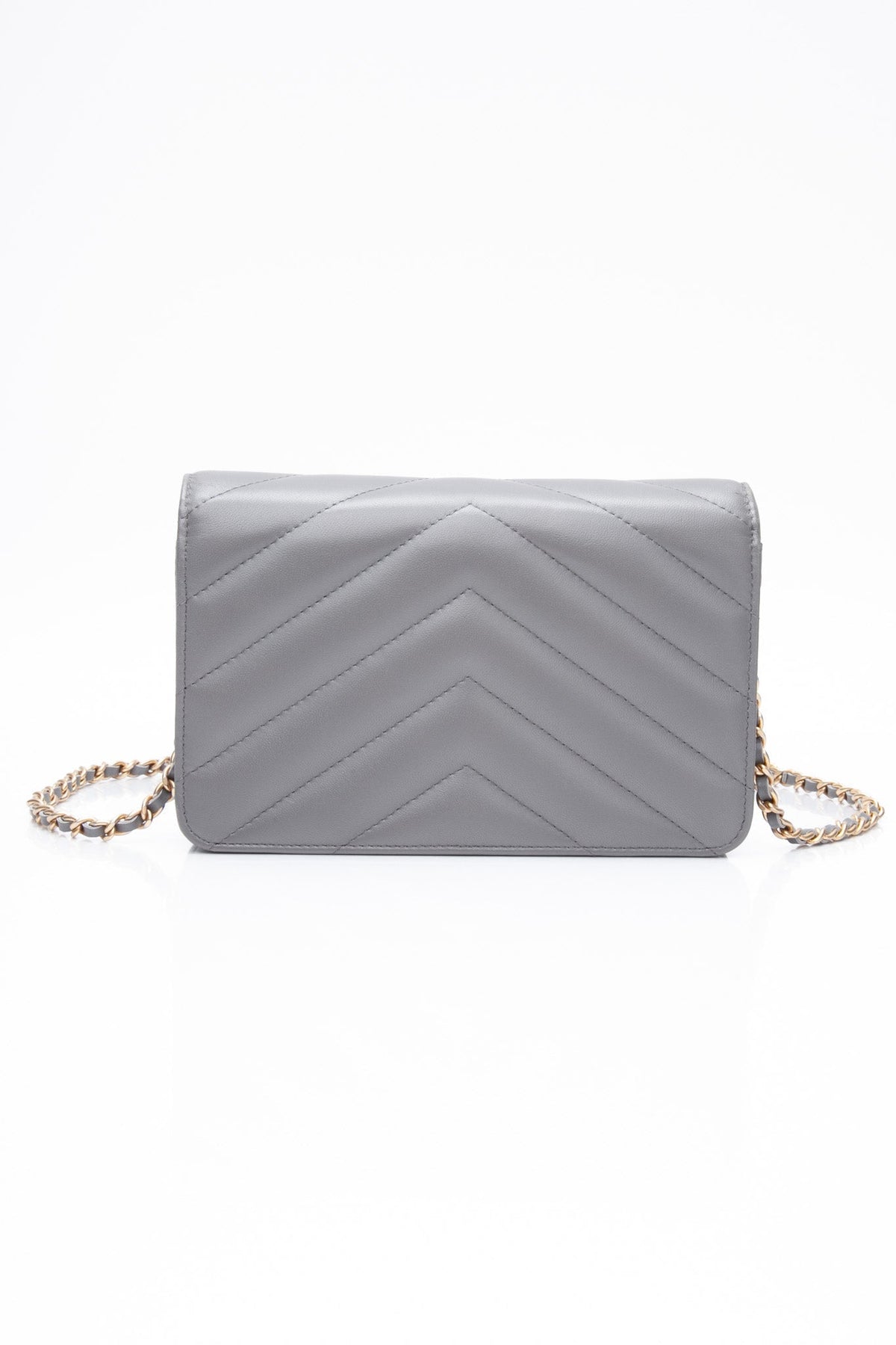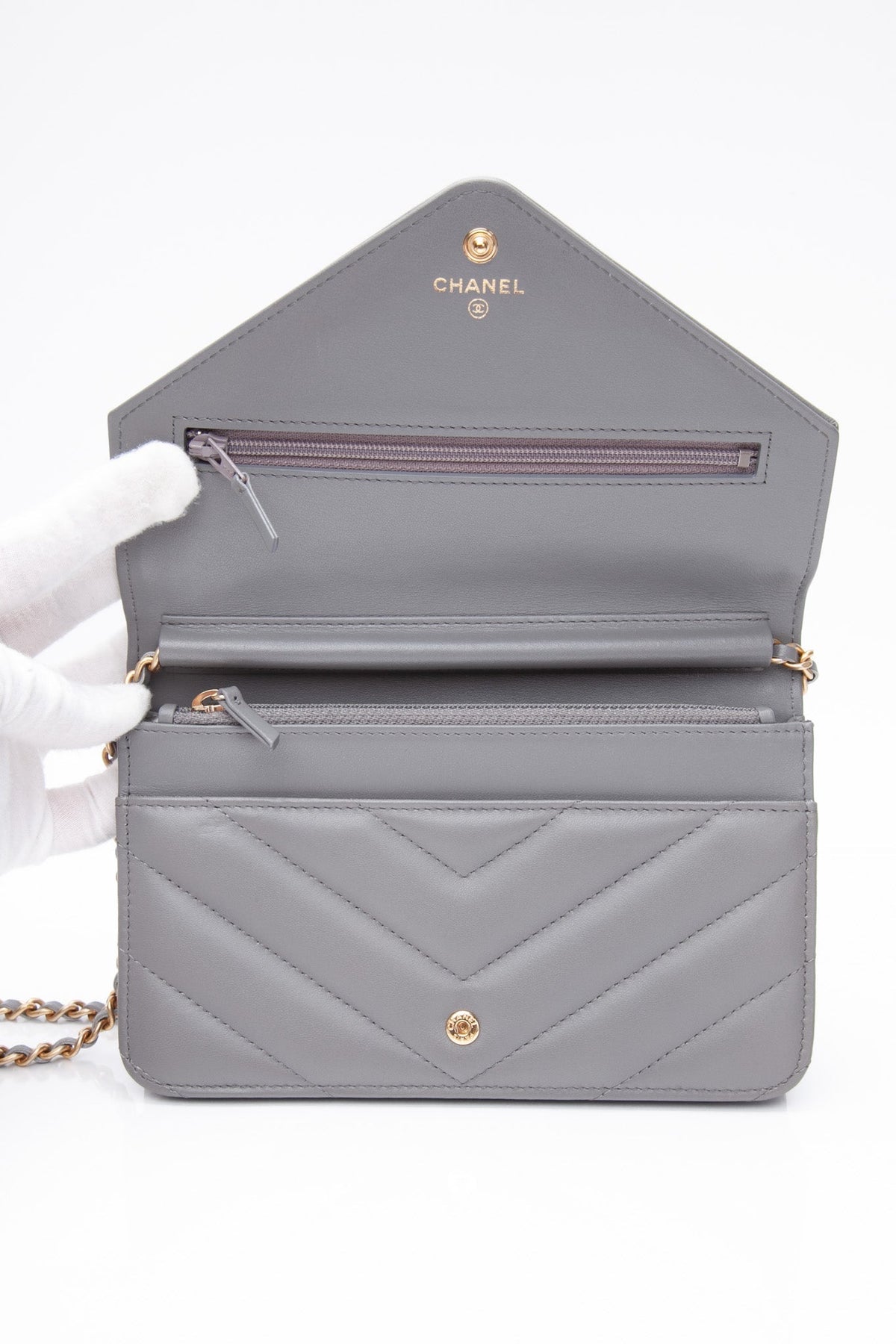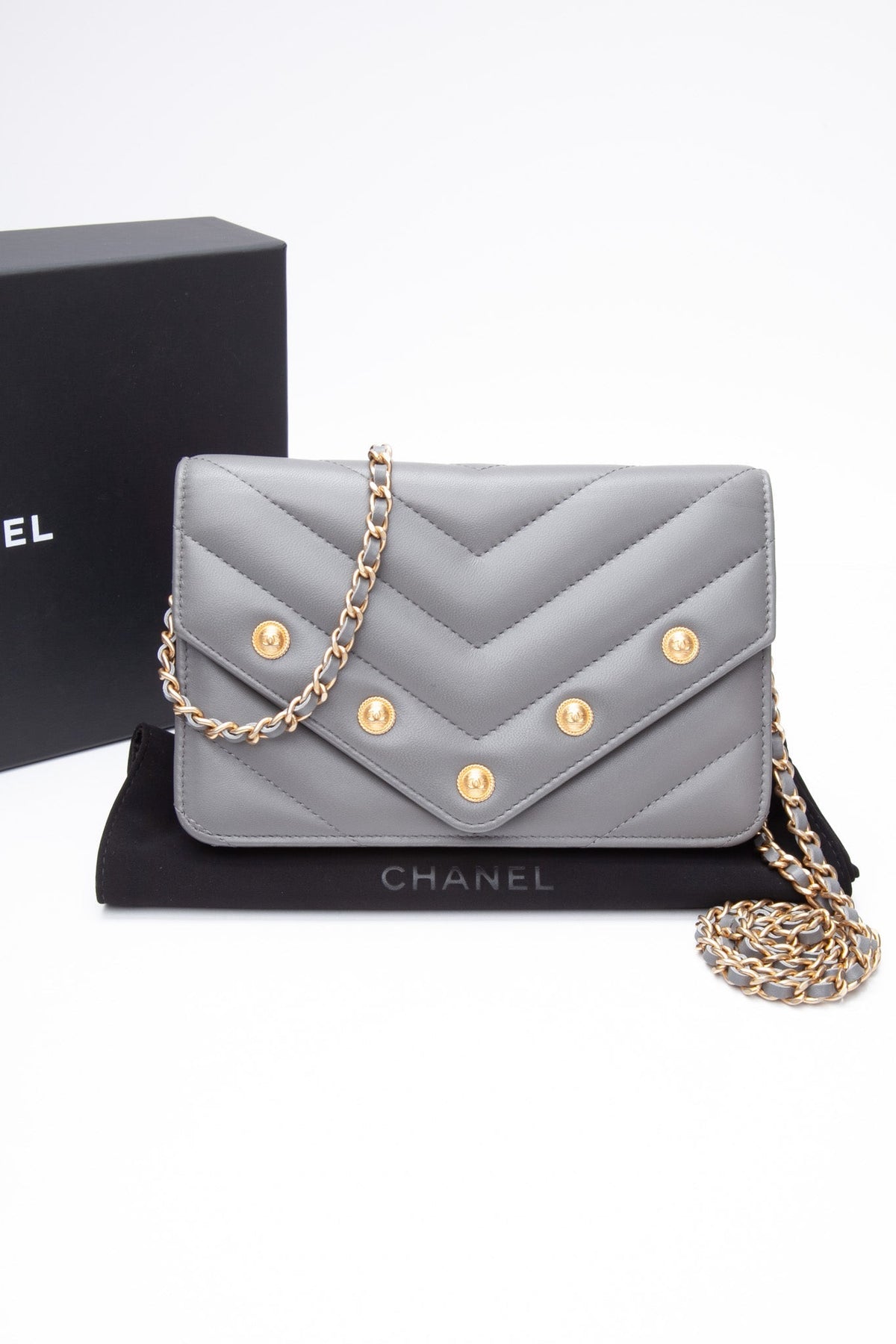 CHANEL Gray Lambskin Chevron Medallion WOC Wallet on Chain
