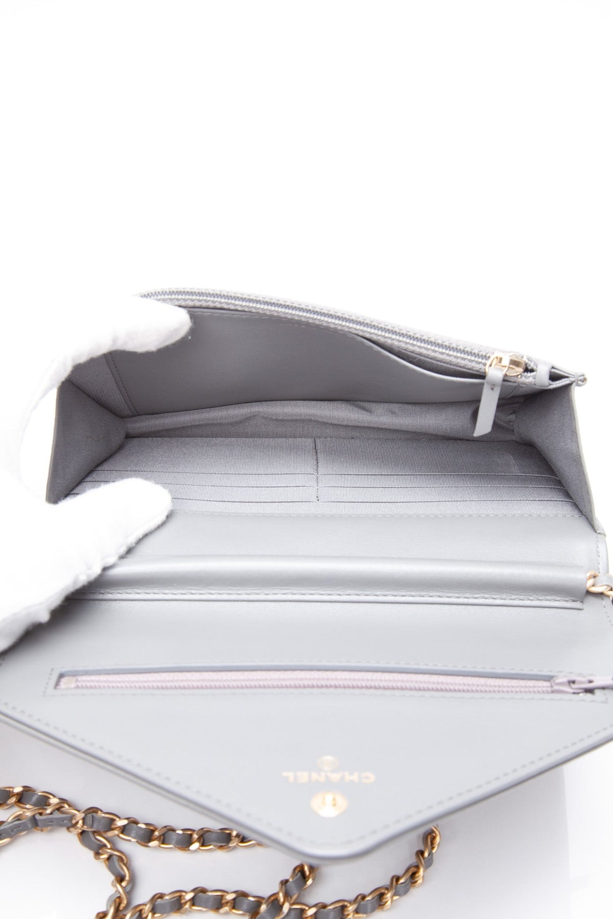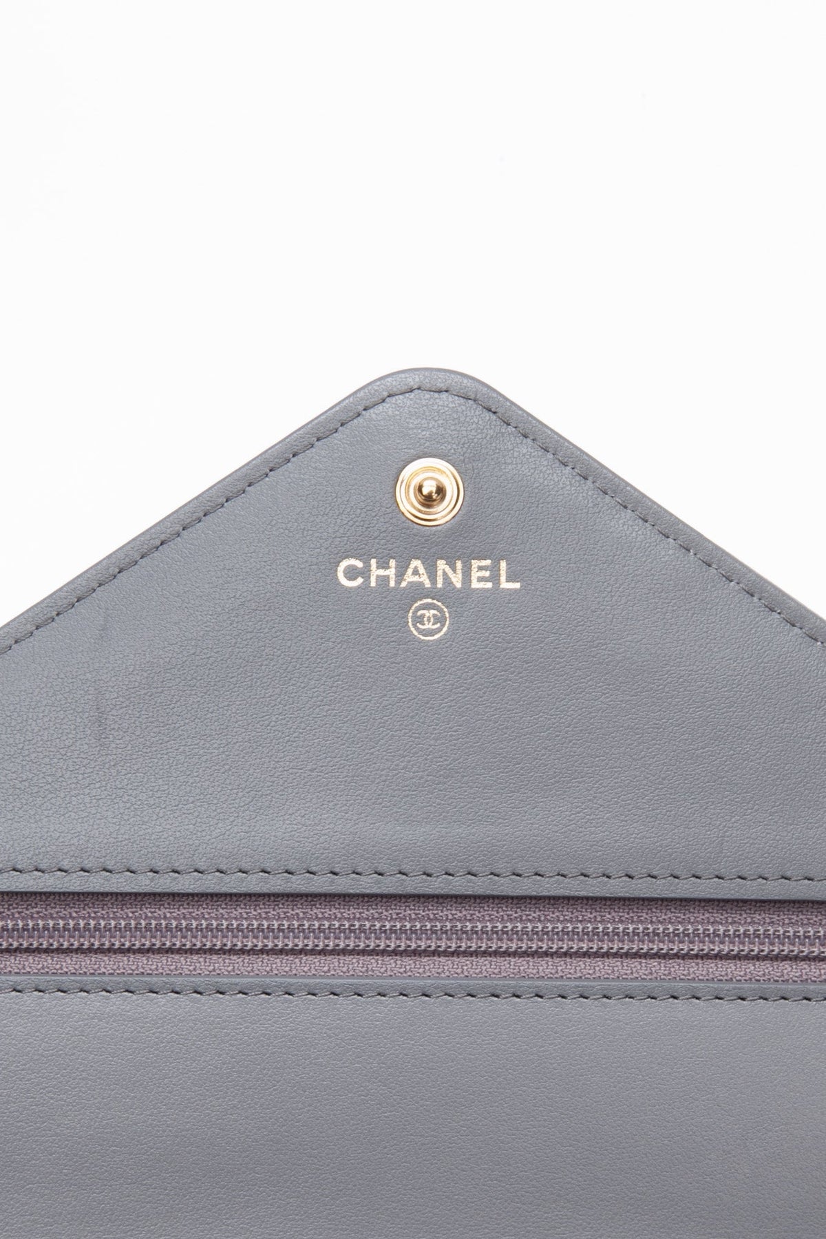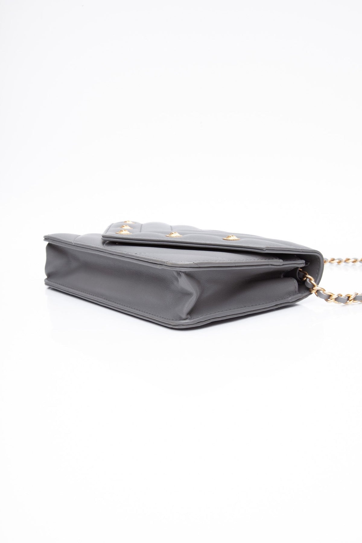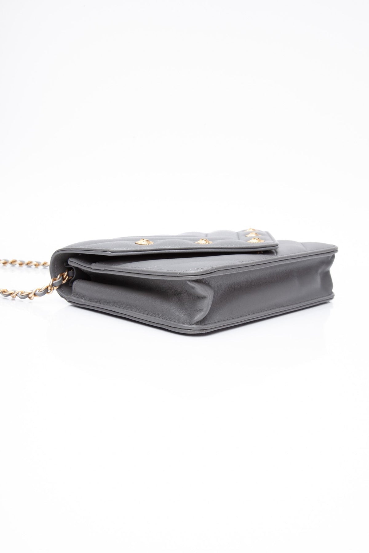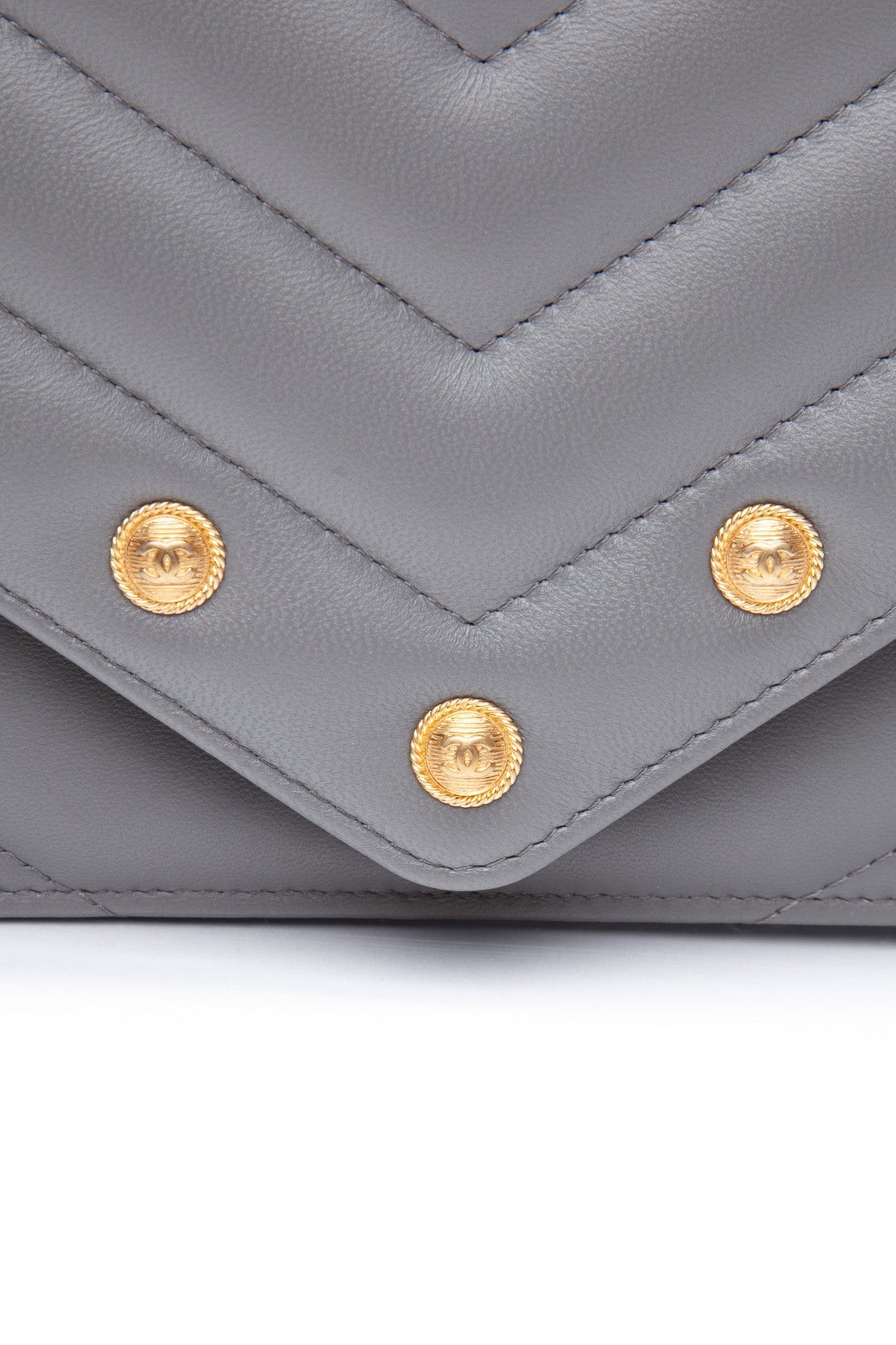 CHANEL Gray Lambskin Chevron Medallion WOC Wallet on Chain