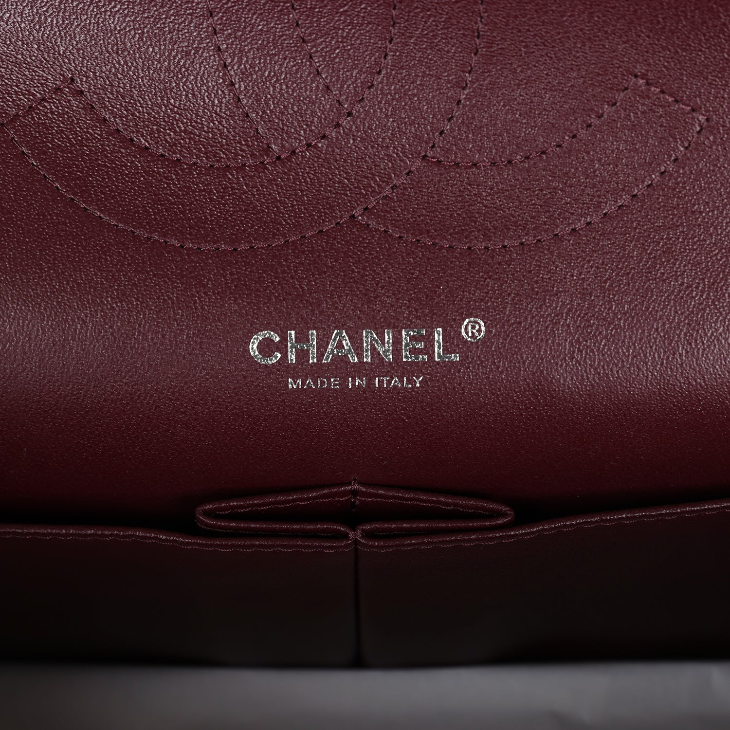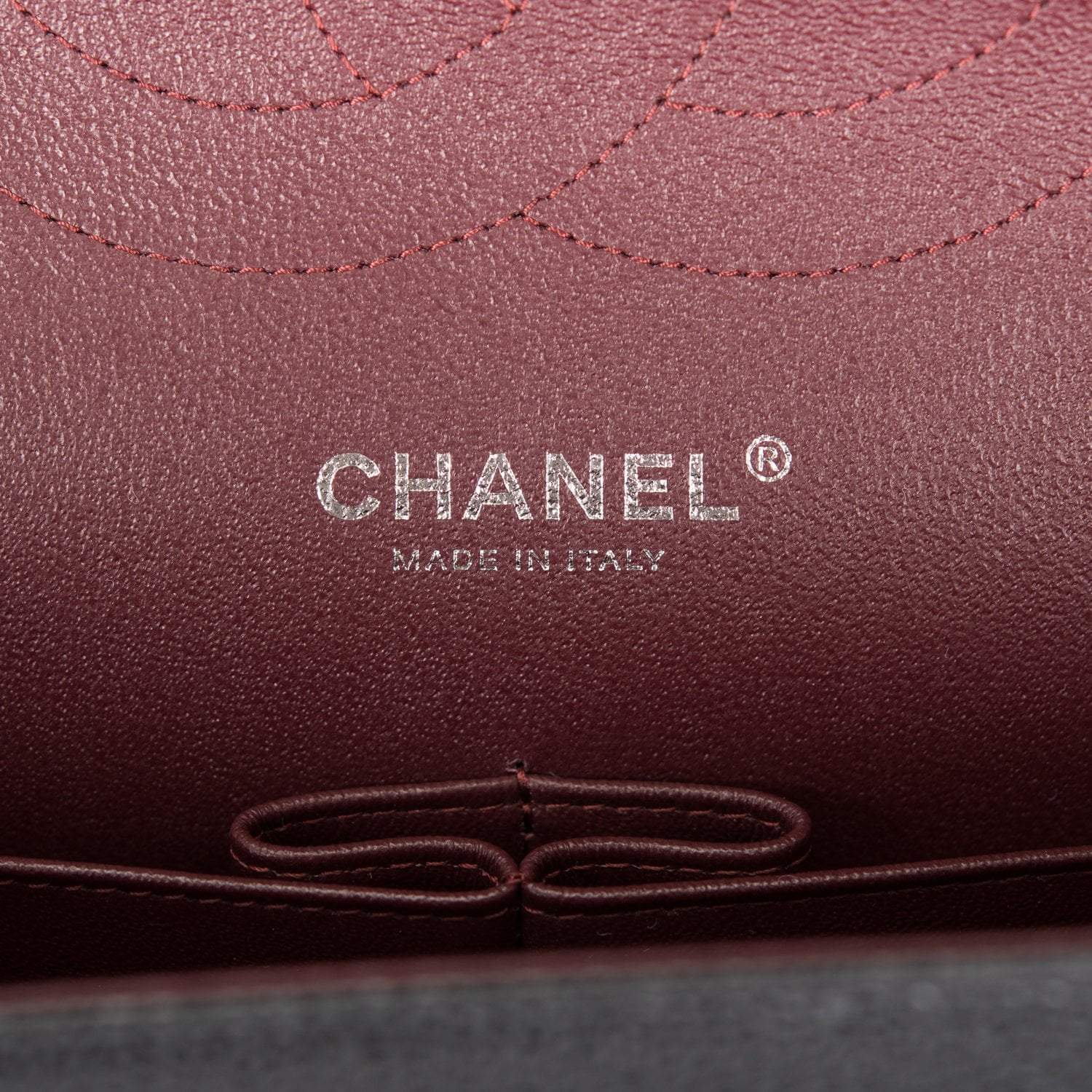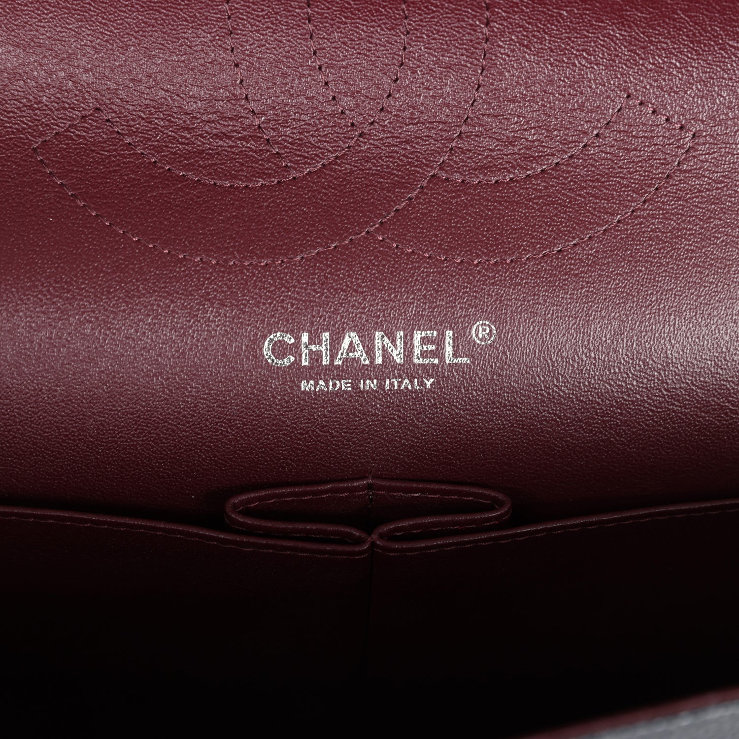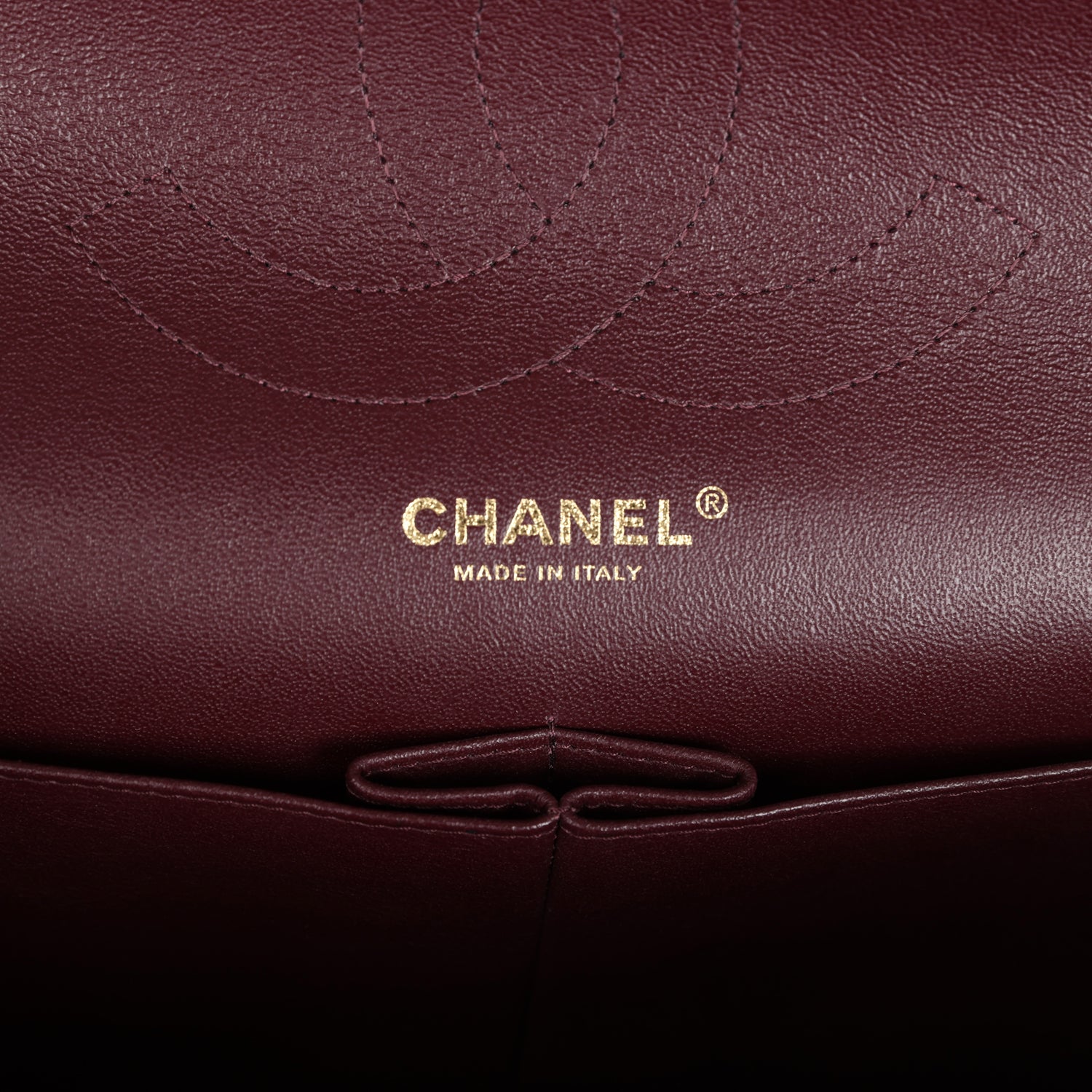Regular price $1,630.00 Sale price $450.00 Save $1,180.00This Jumbo Classic Double Flap bag is in dark burgundy shiny grained calfskin leather with gold tone hardware and features a front flap with signature CC turnlock closure, half moon back pocket, and adjustable interwoven gold tone chainlink and dark burgundy leather shoulder strap.
