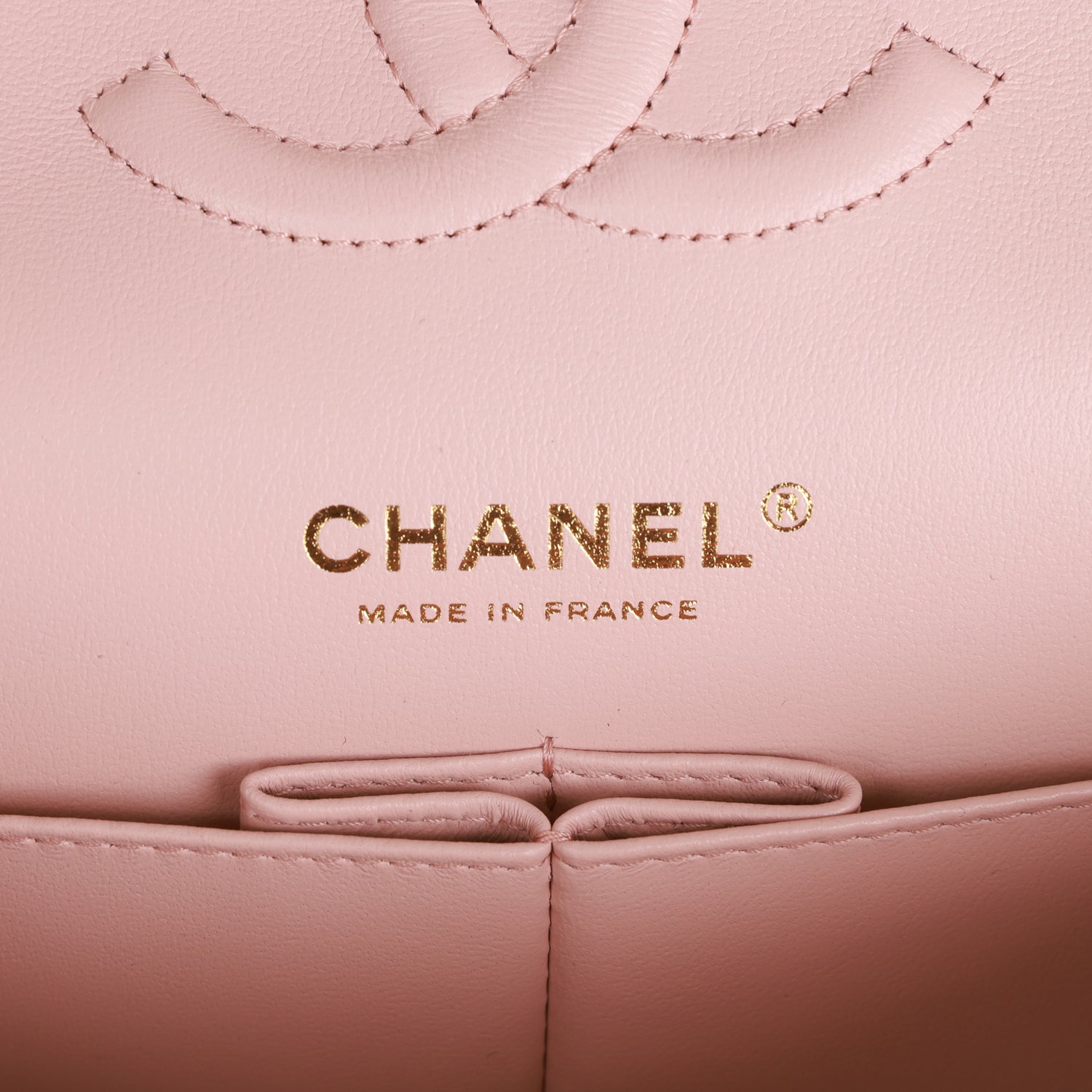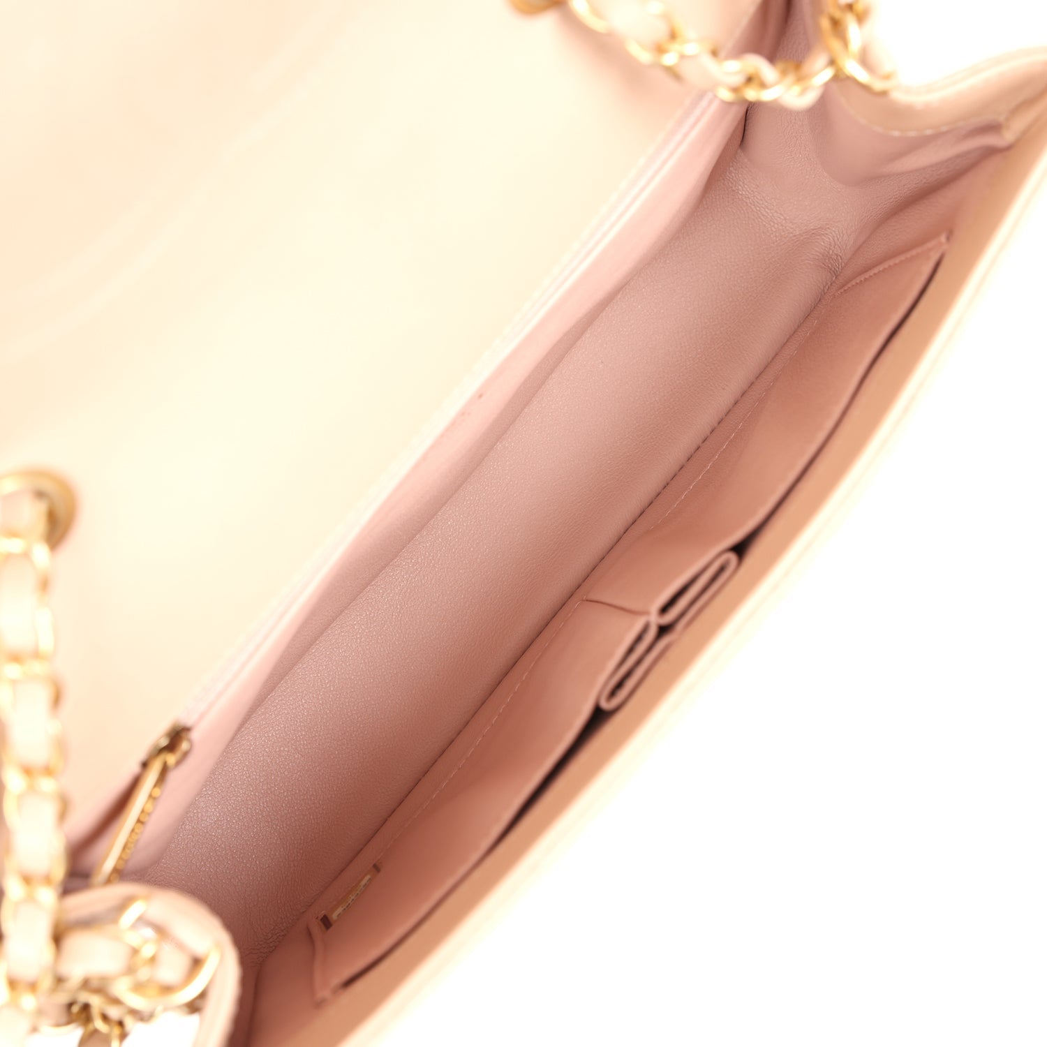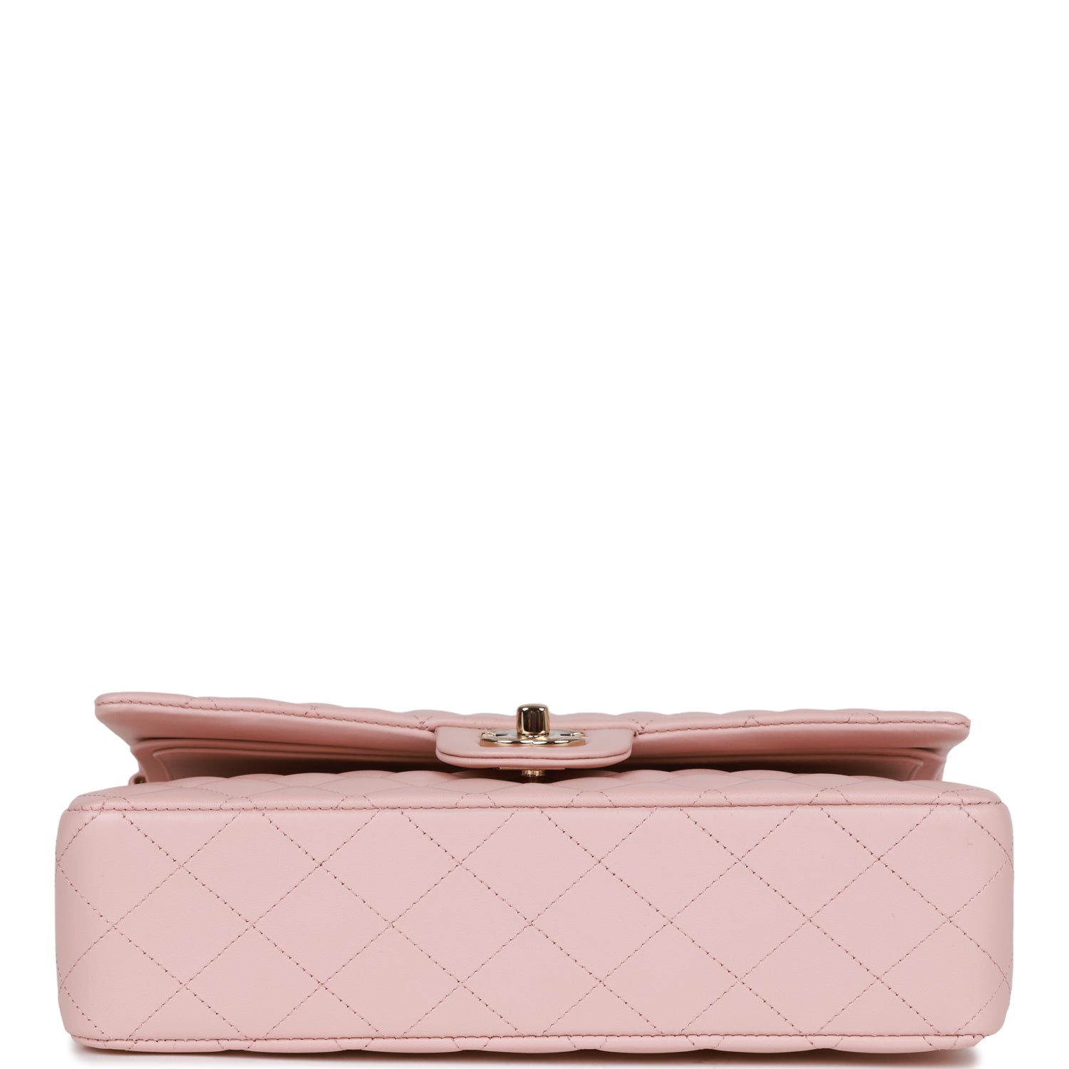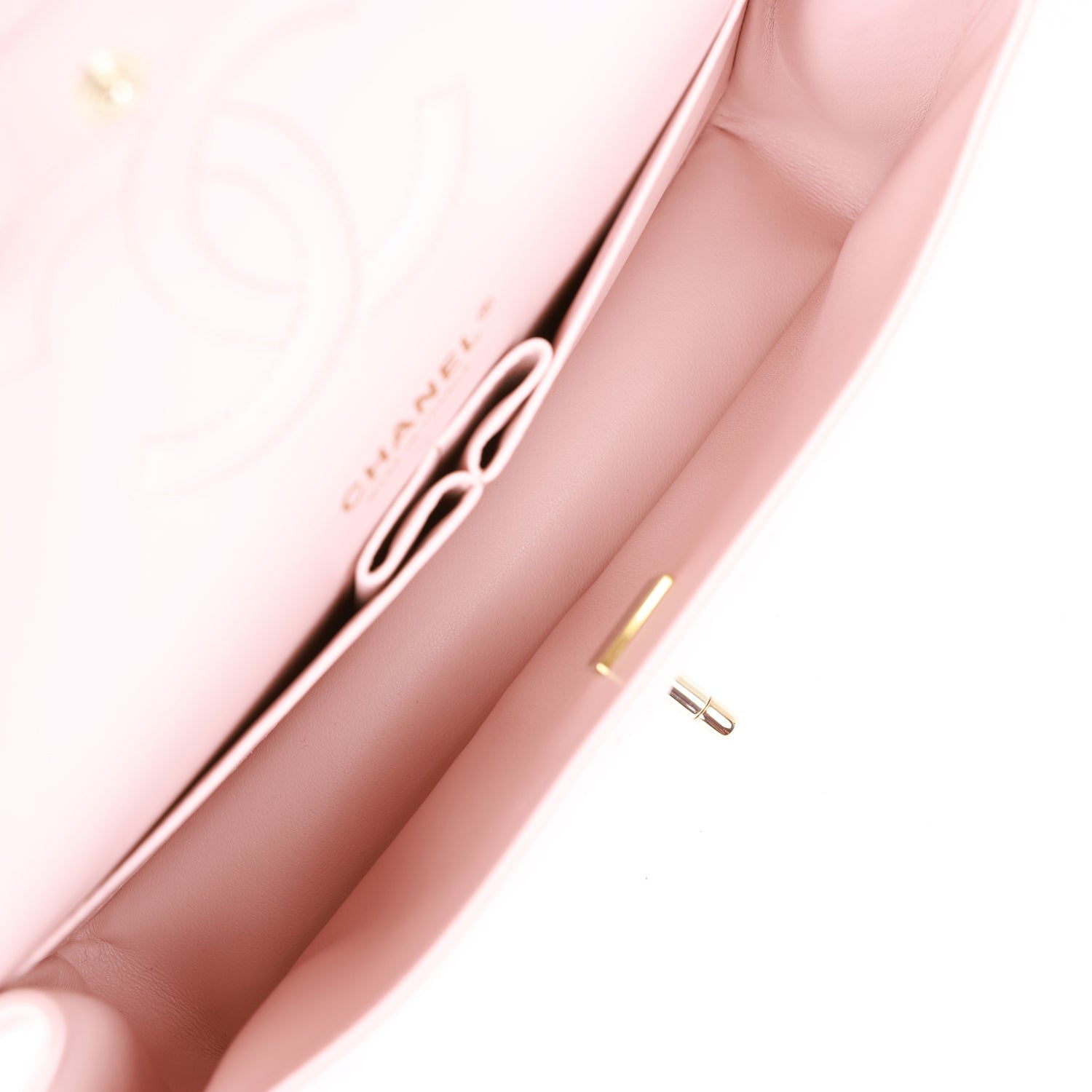 Regular price $2,150.00 Sale price $430.00 Save $1,720.00This Medium Classic Double Flap bag is in Light Pink lambskin leather with light gold tone hardware and features a front flap with signature CC turnlock closure, half moon back pocket, and an interwoven light gold tone chain link and light pink leather crossbody/shoulder strap.