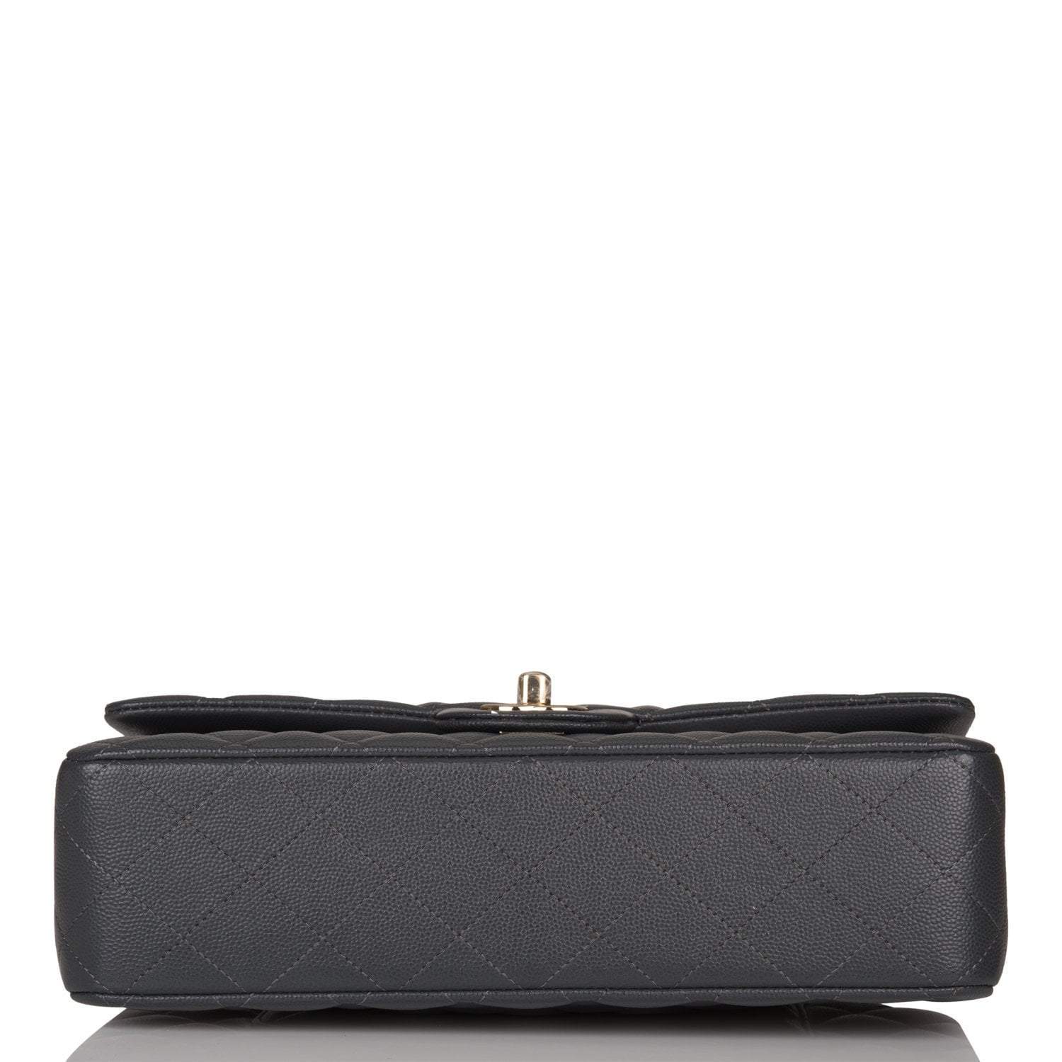 Chanel Medium Classic Double Flap Bag Dark Gray Caviar Light Gold Hardware