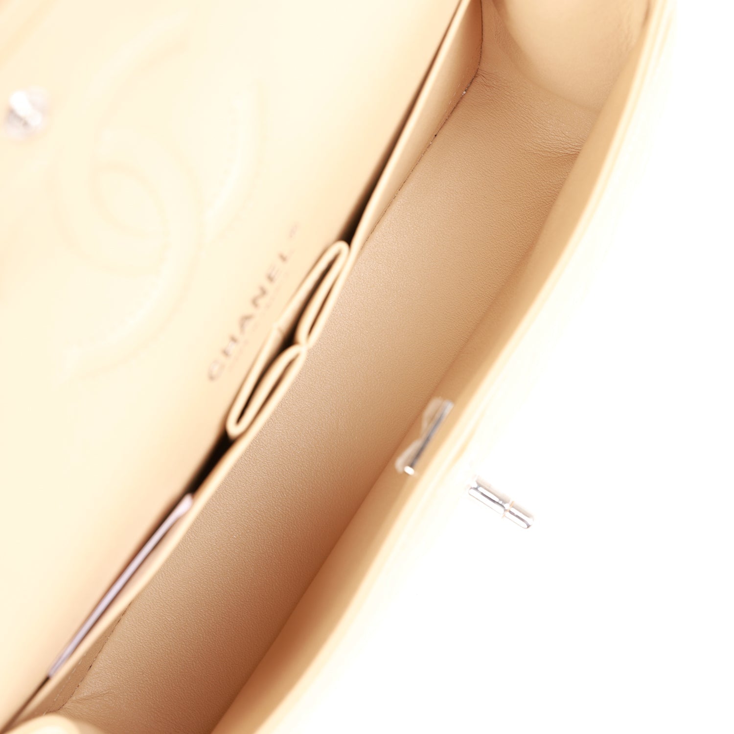 Chanel Medium Classic Double Flap Bag Beige Lambskin Silver Hardware