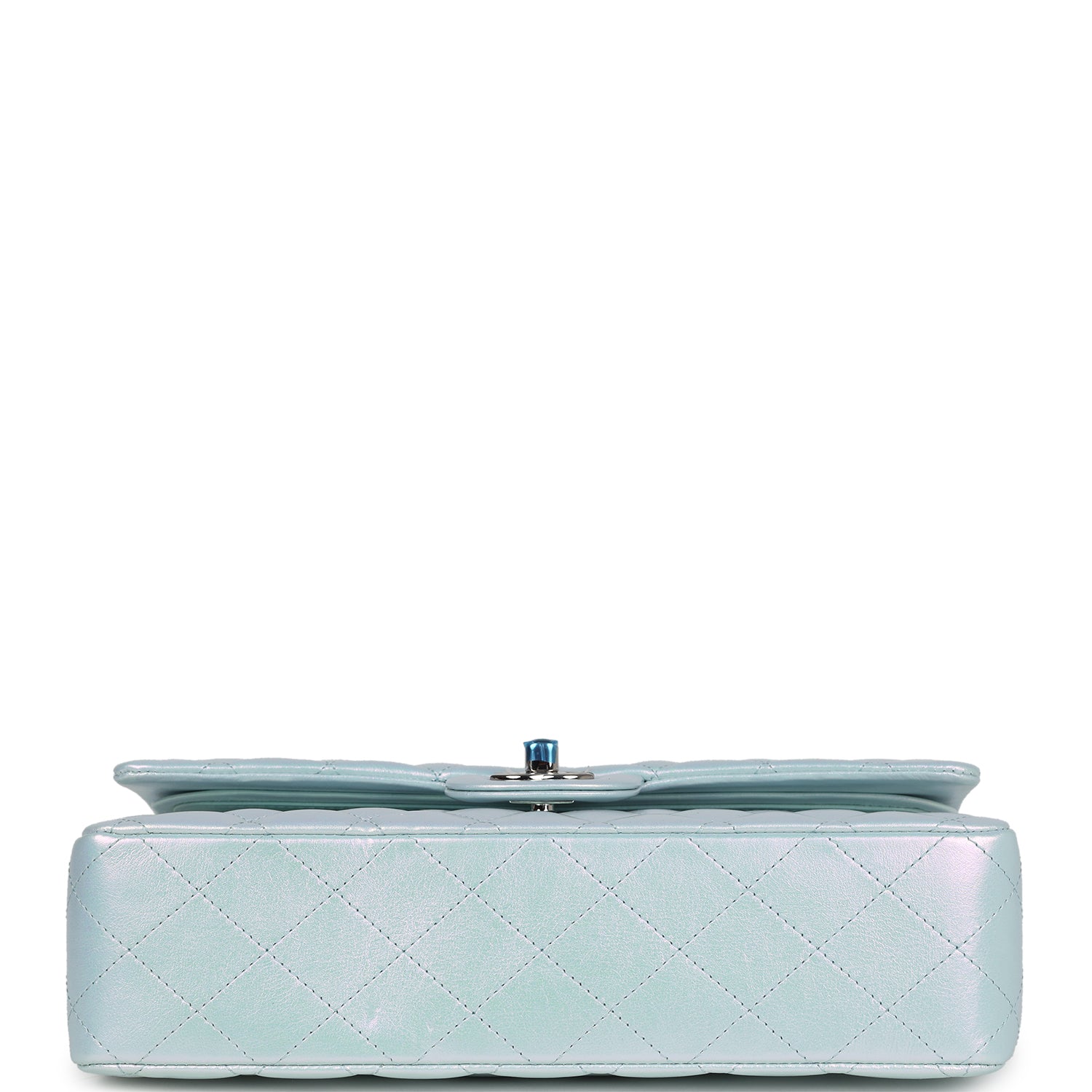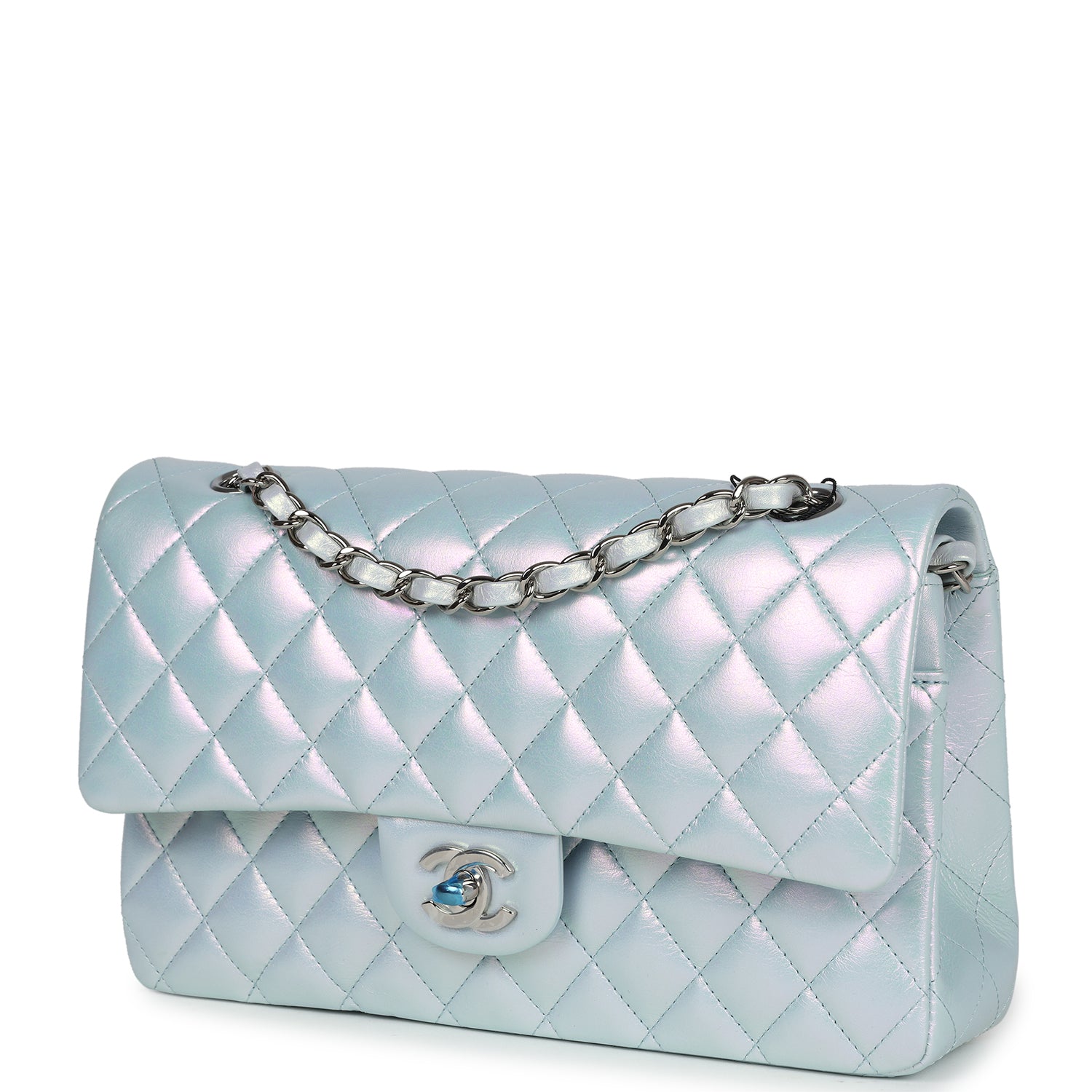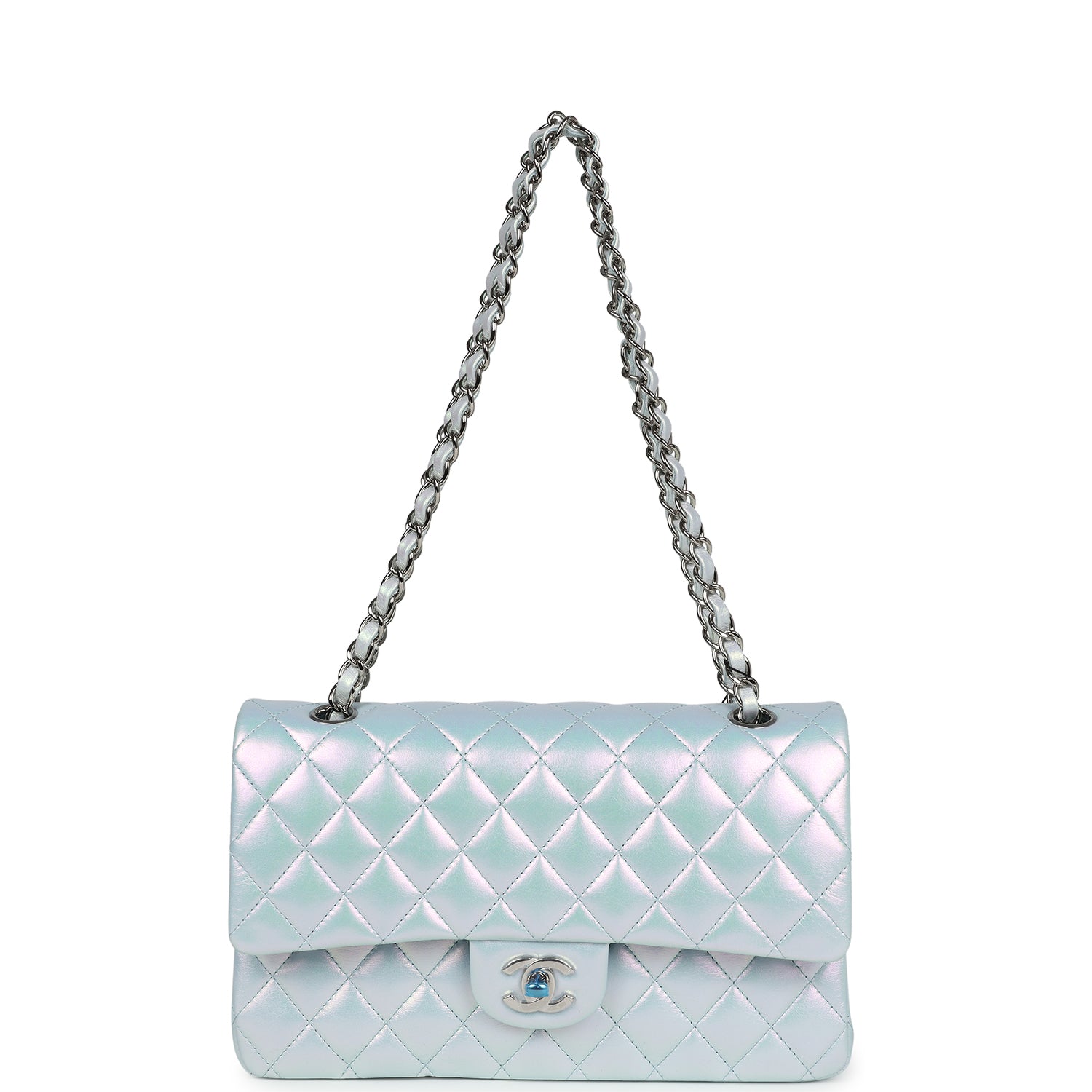 Chanel Medium Classic Double Flap Bag Blue Iridescent Calfskin Silver Hardware