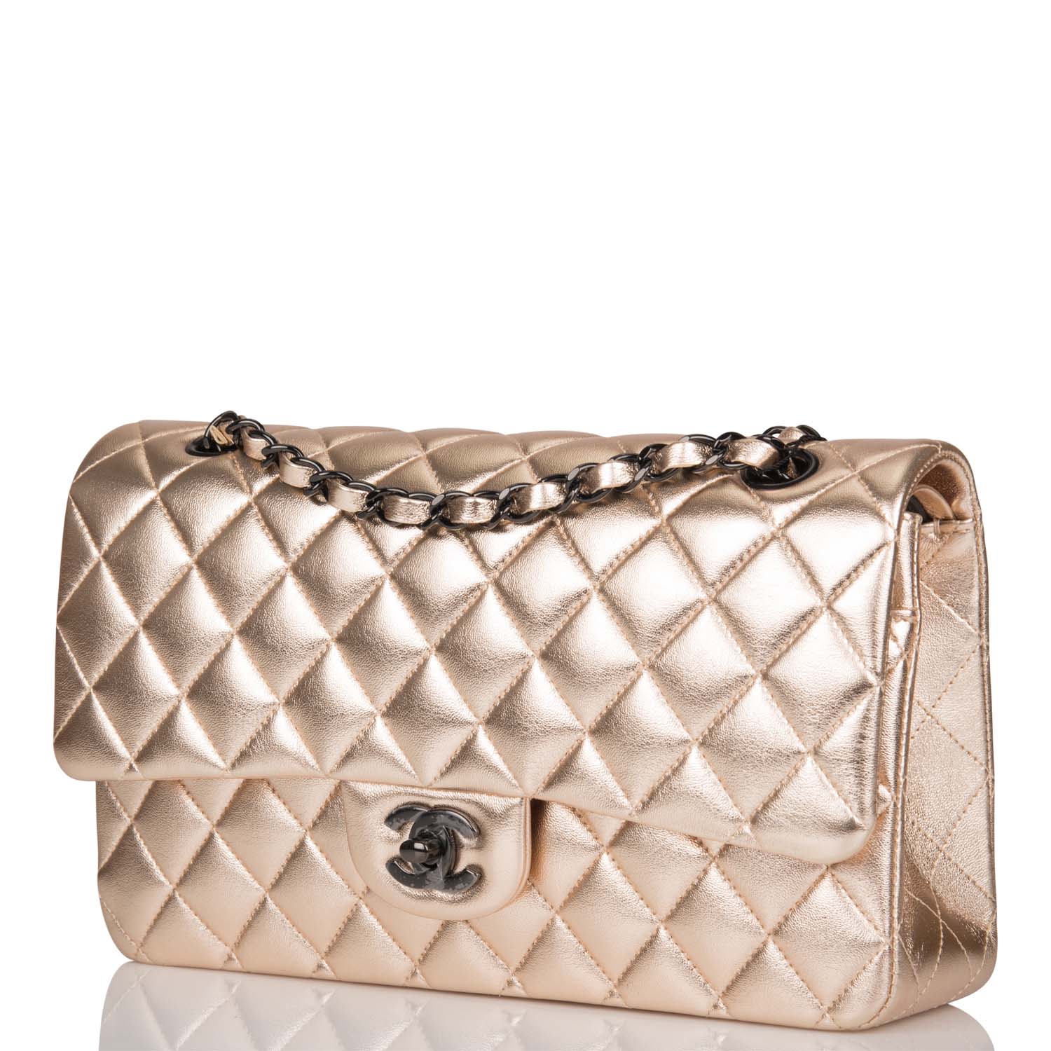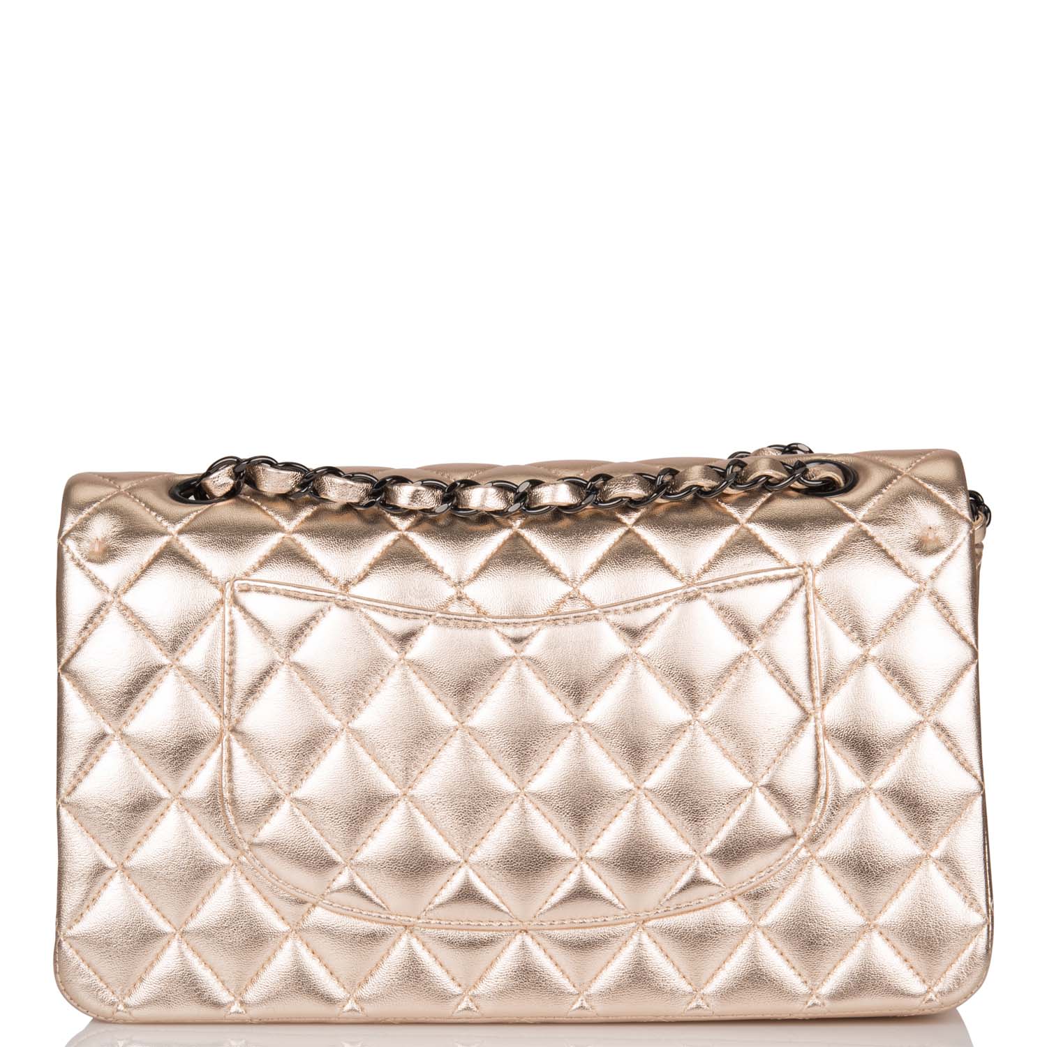 Regular price $16,520.00 Sale price $1,220.00 Save $15,300.00This medium classic double flap bag is in black lambskin leather with rose gold hardware and features a front flap with signature CC turnlock closure, half moon back pocket, and adjustable interwoven rose gold tone chain link and black leather shoulder strap.