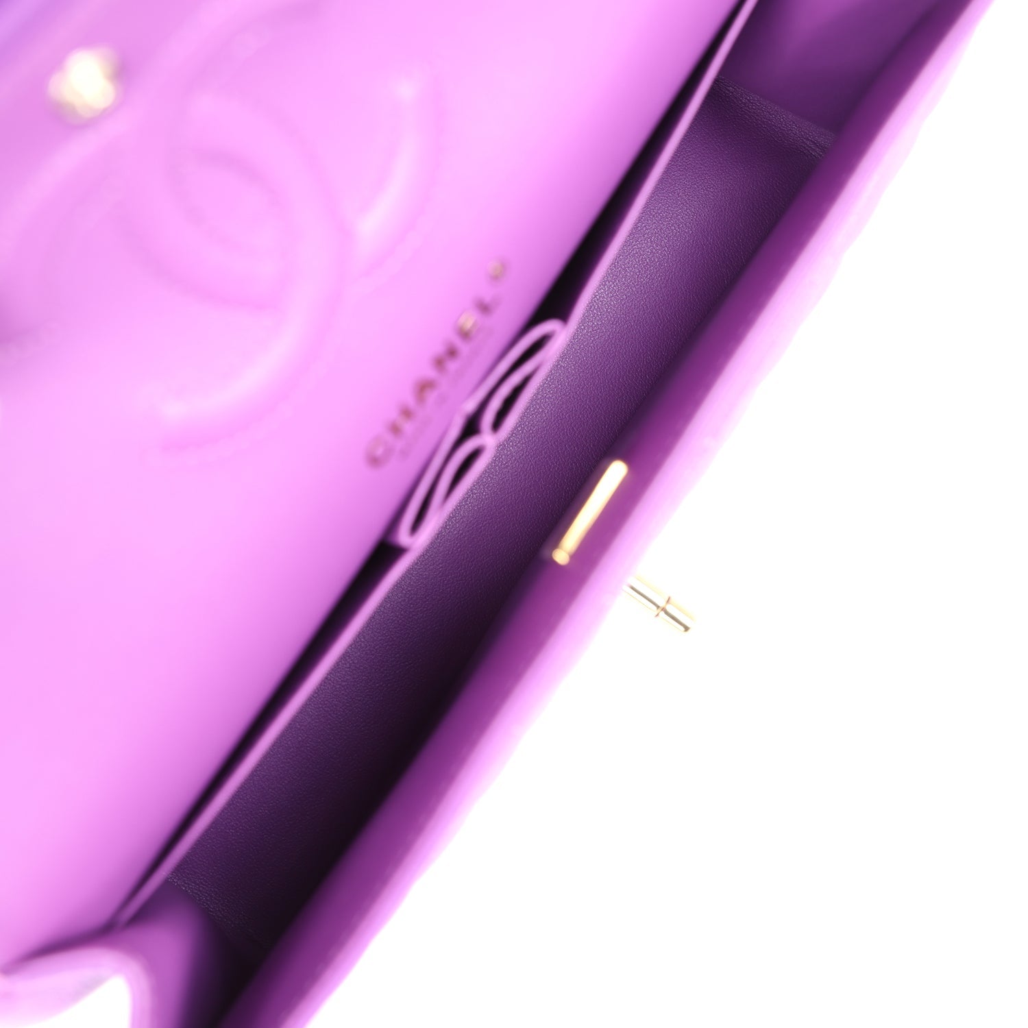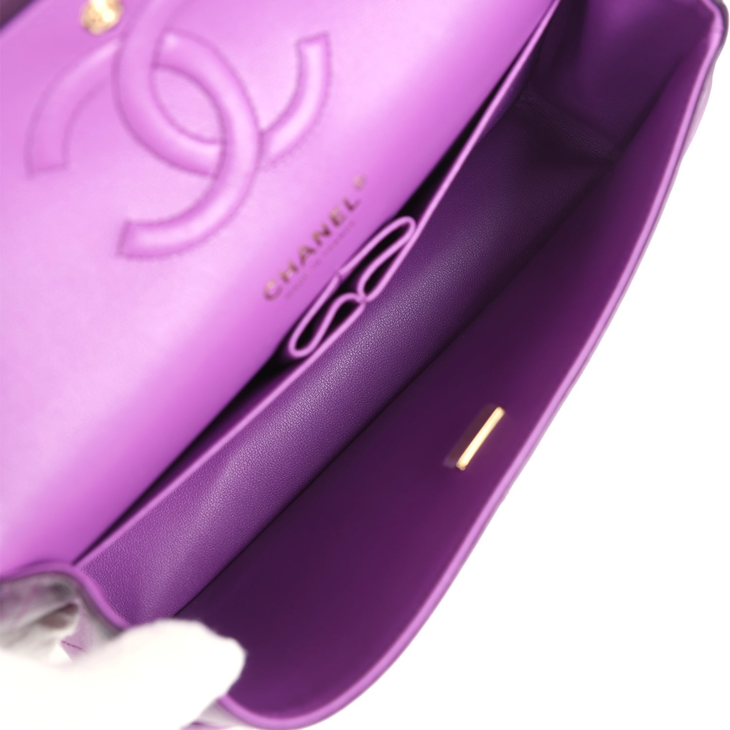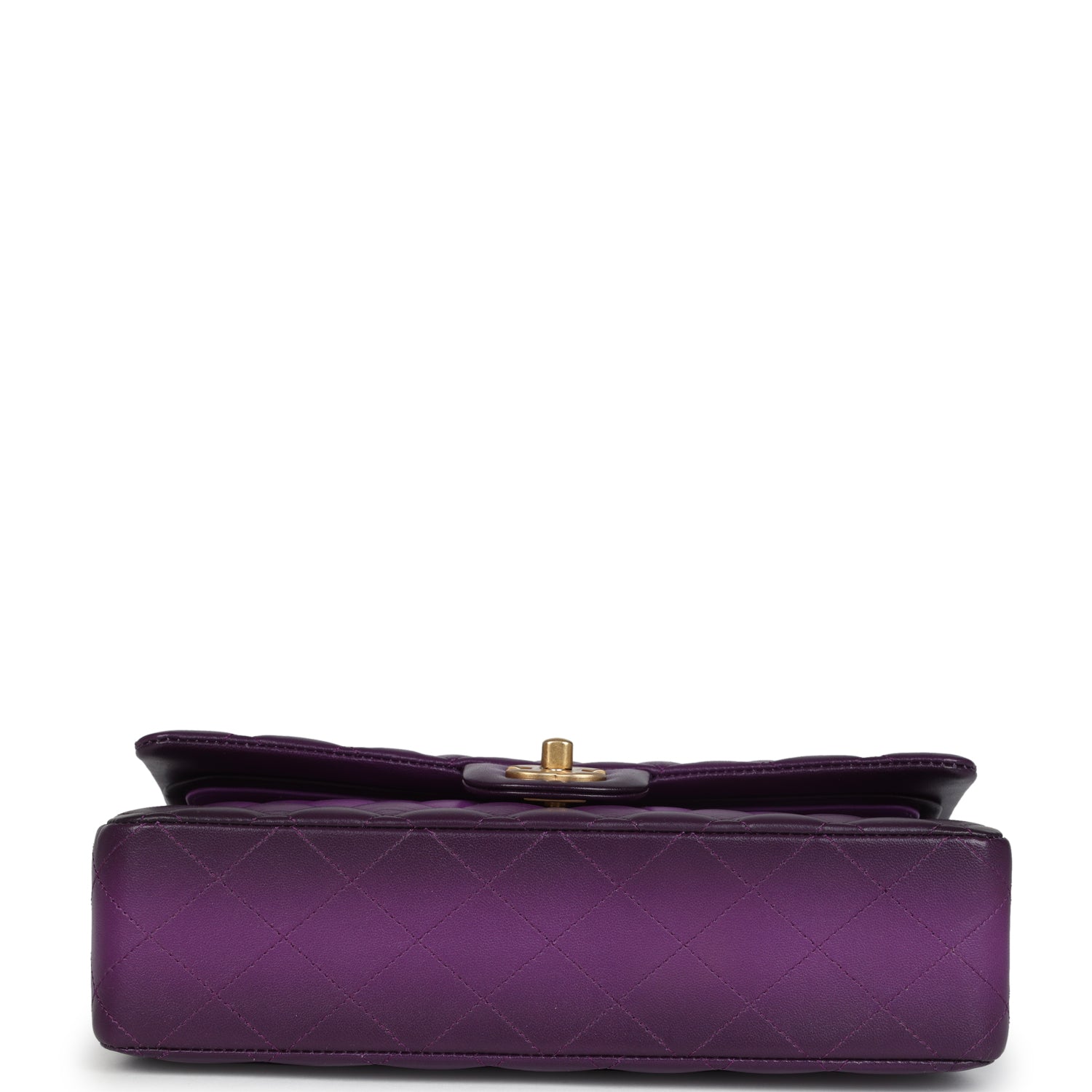 Chanel Medium Classic Double Flap Bag Purple Iridescent Lambskin Light Gold Hardware