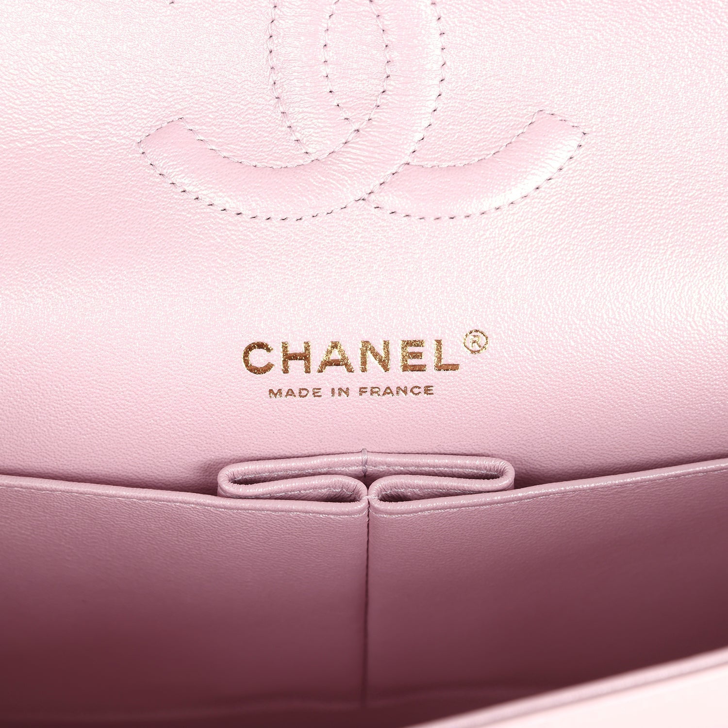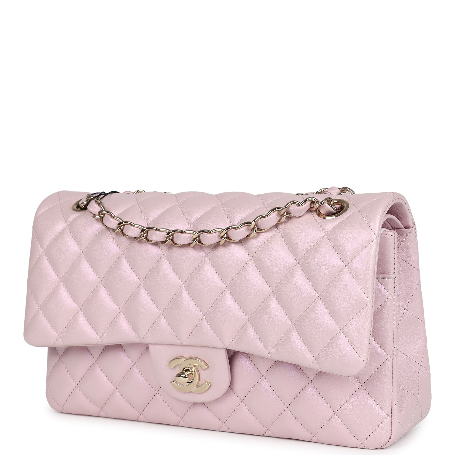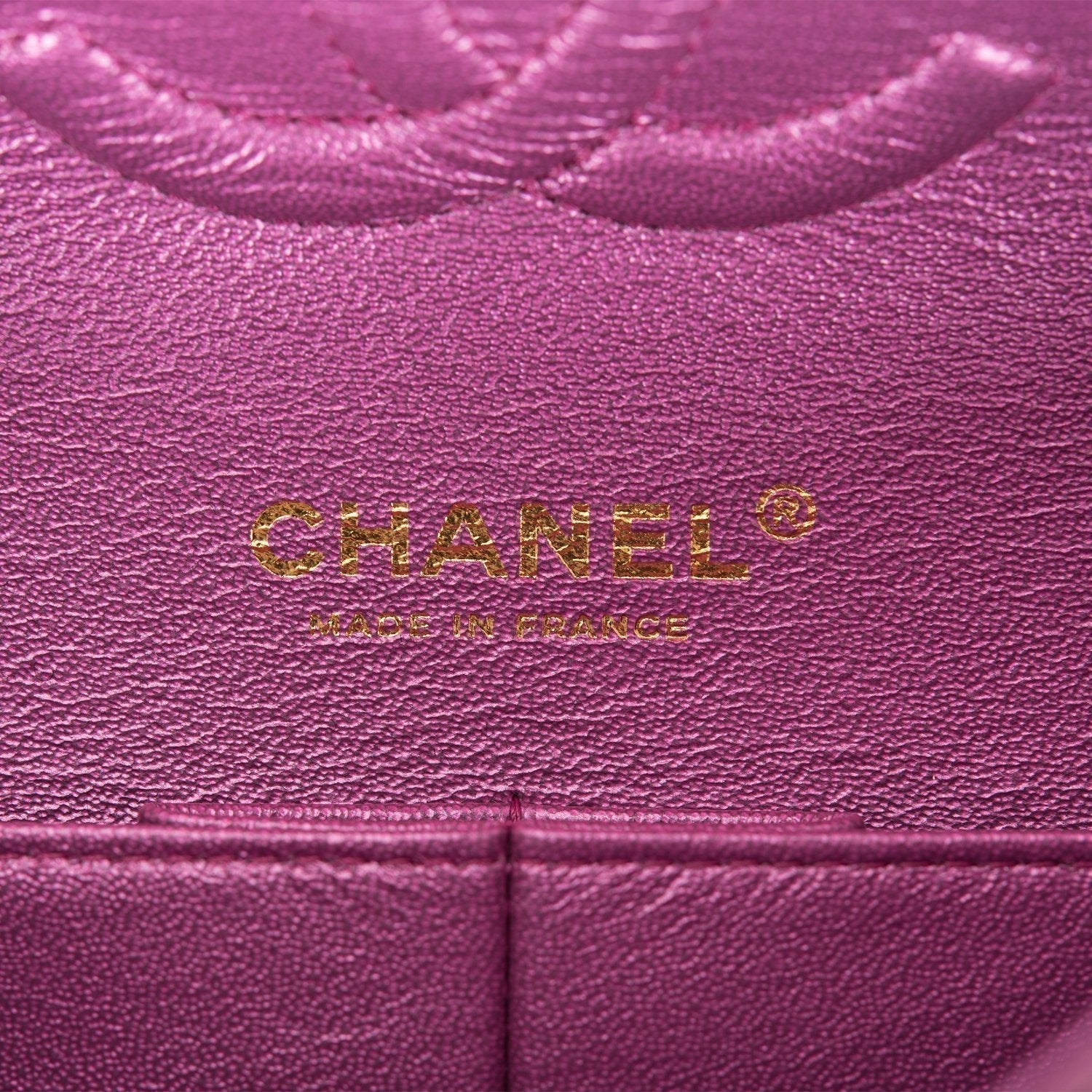Chanel Medium Classic Double Flap Bag Purple Iridescent Lambskin Light Gold Hardware