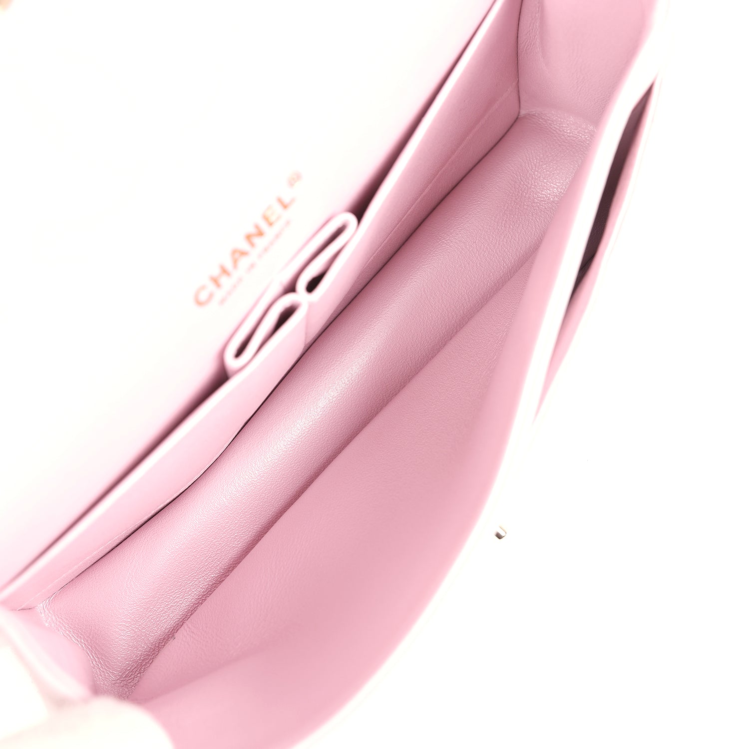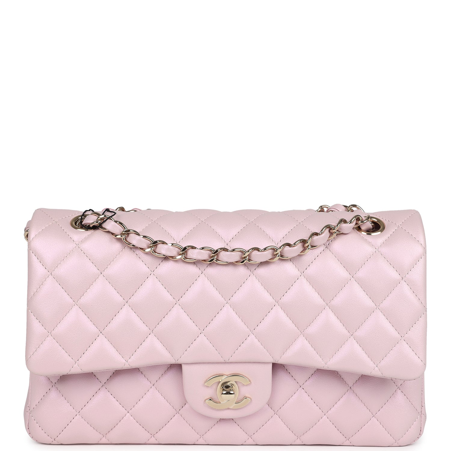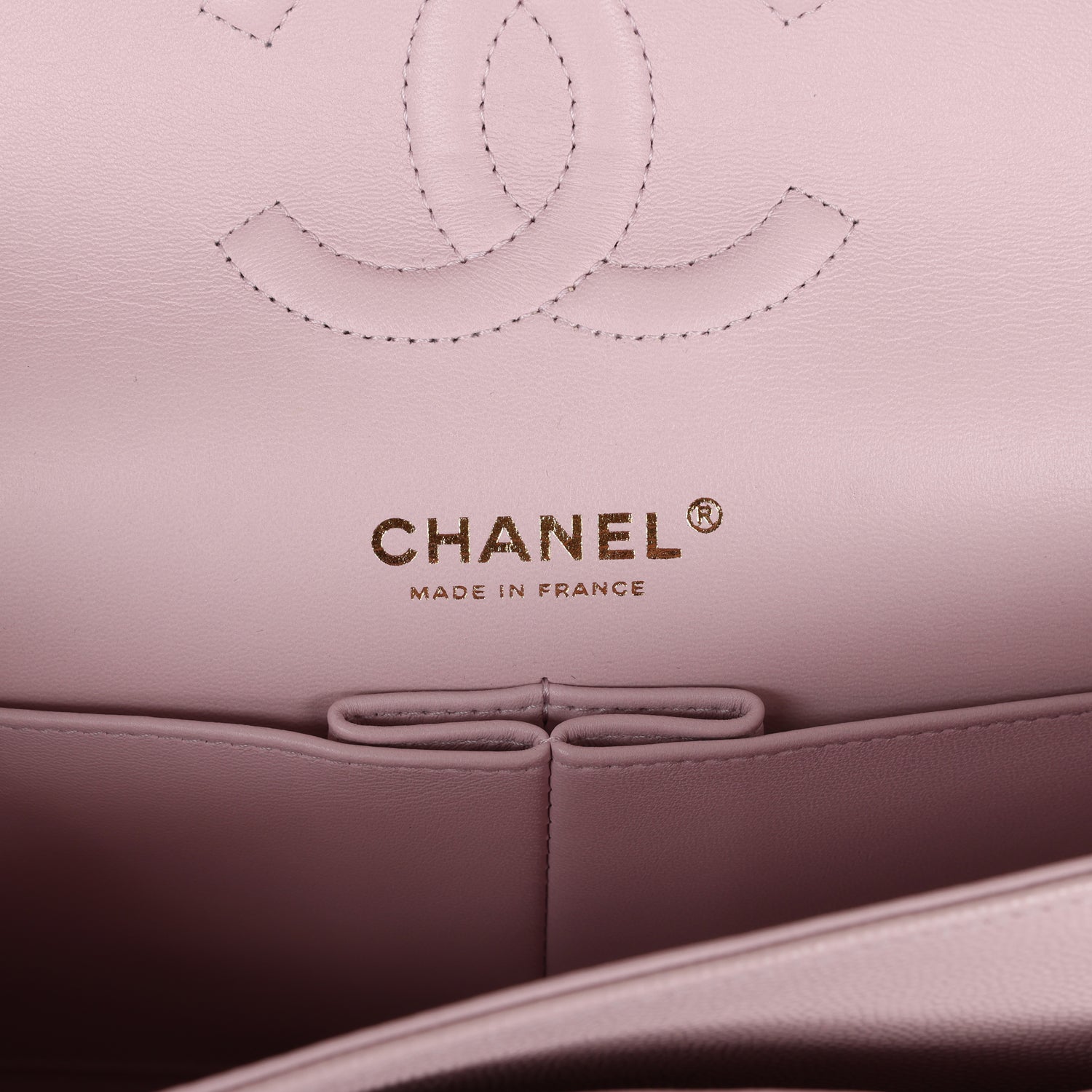 Regular price $1,630.00 Sale price $430.00 Save $1,200.00This Medium Classic Double Flap bag is in Light Pink caviar leather with light gold tone hardware and features a front flap with signature CC turnlock closure, half moon back pocket, and adjustable interwoven light gold tone chain link and light pink leather shoulder strap.