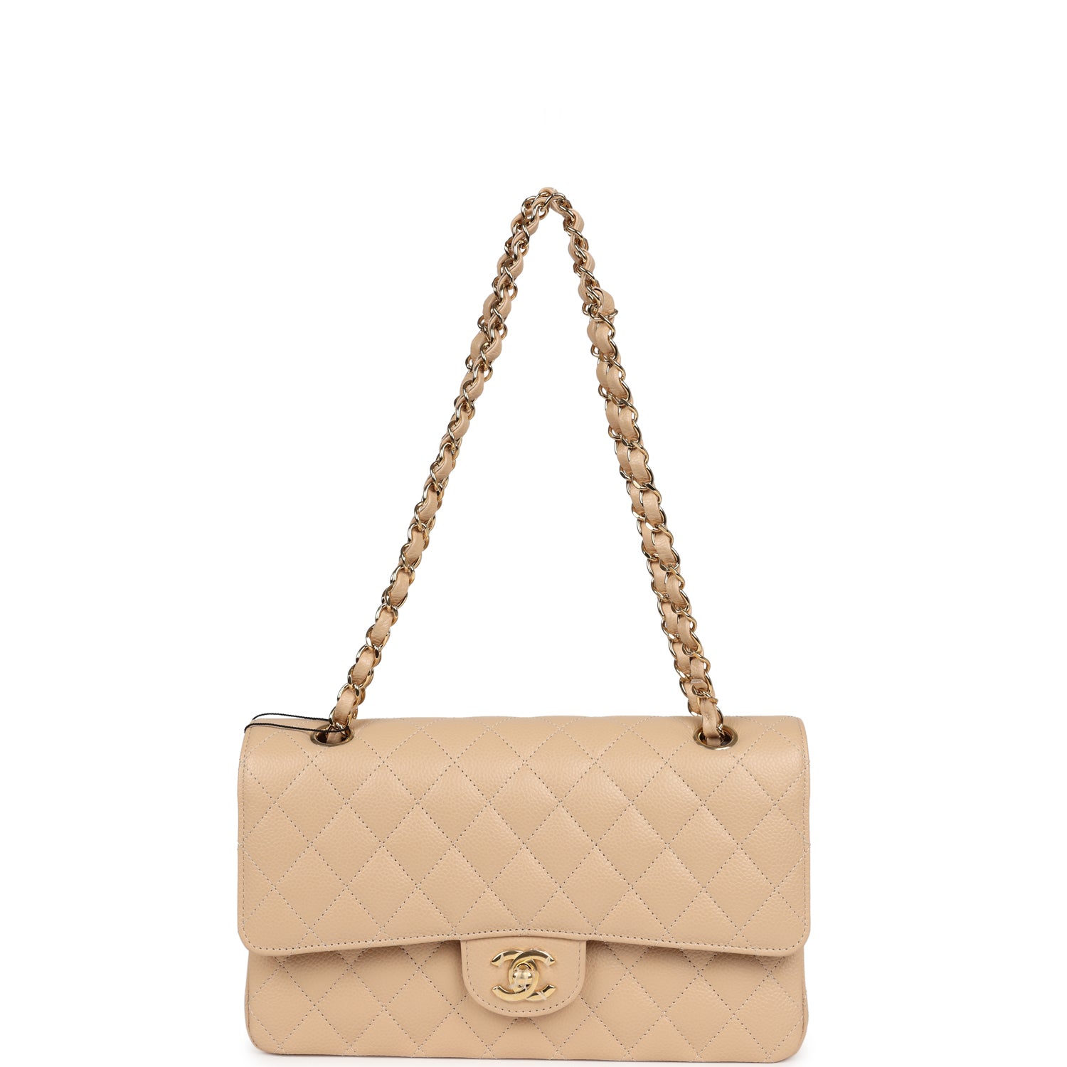 Chanel Medium Classic Double Flap Beige Caviar Gold Hardware
