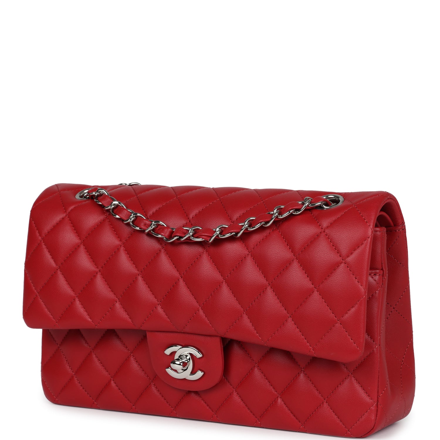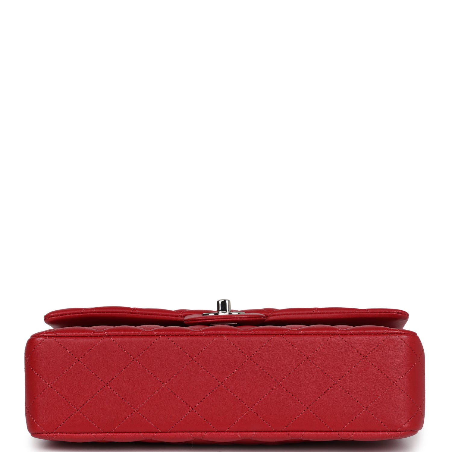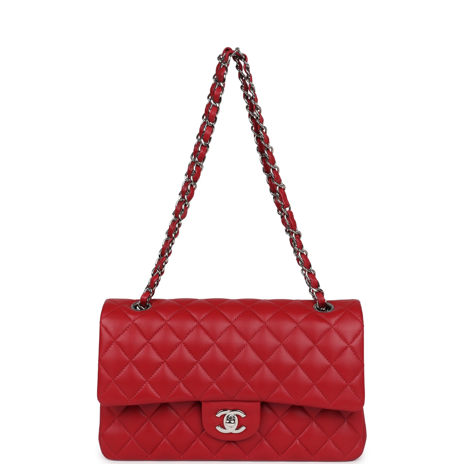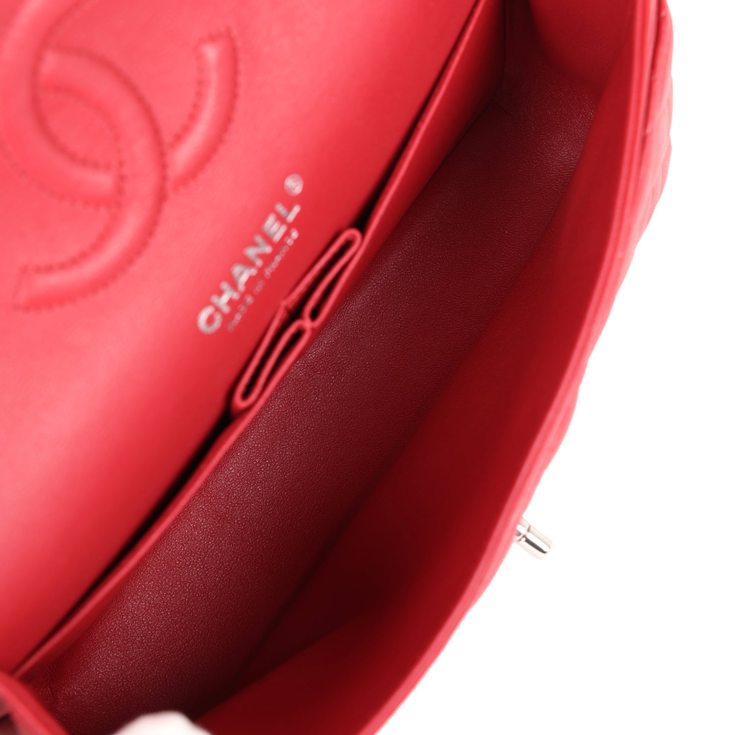 Chanel Medium Classic Double Flap Bag Red Lambskin Silver Hardware