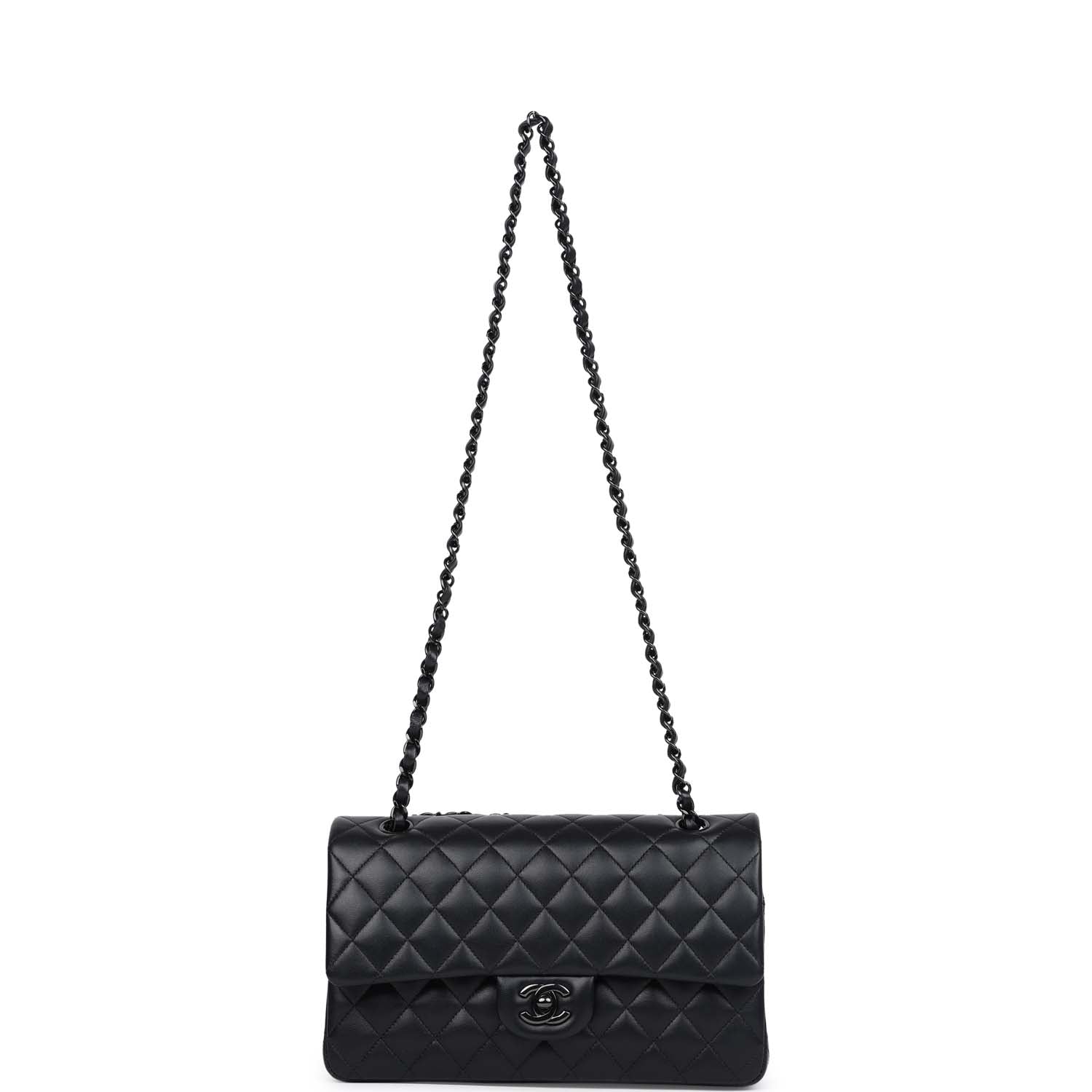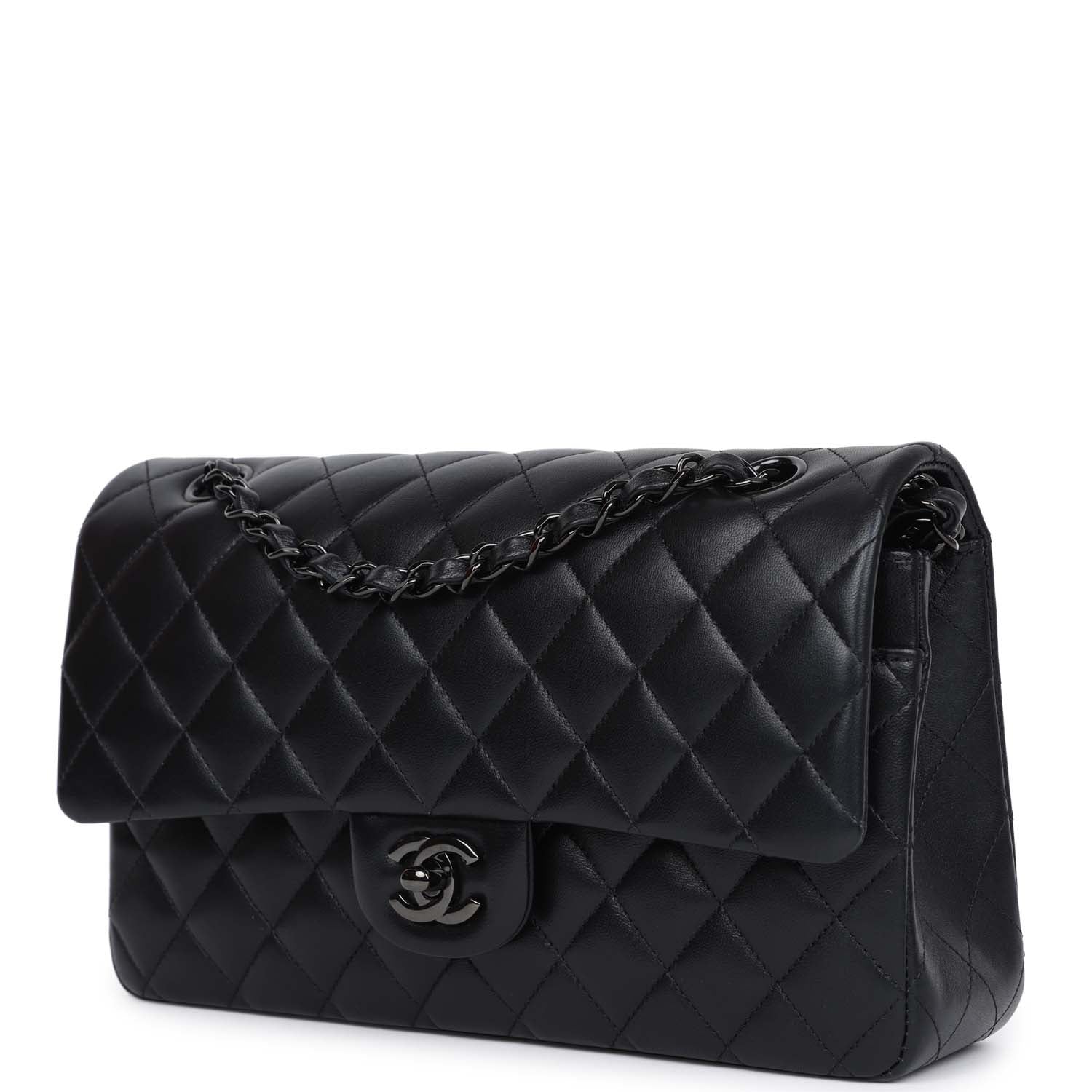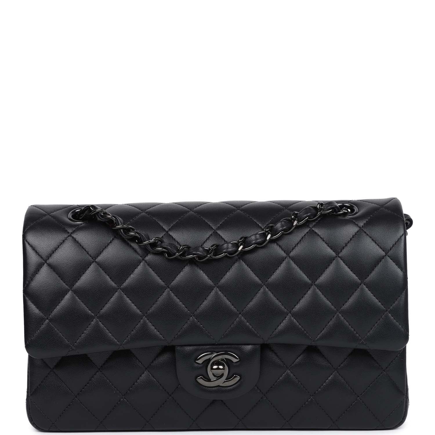 Regular price $16,180.00 Sale price $1,230.00 Save $14,950.00This Medium Classic Double Flap bag is in So Black lambskin leather with black hardware, front flap with CC turnlock closure, half moon back pocket, and an interwoven Black chain link and black leather shoulder/crossbody strap.