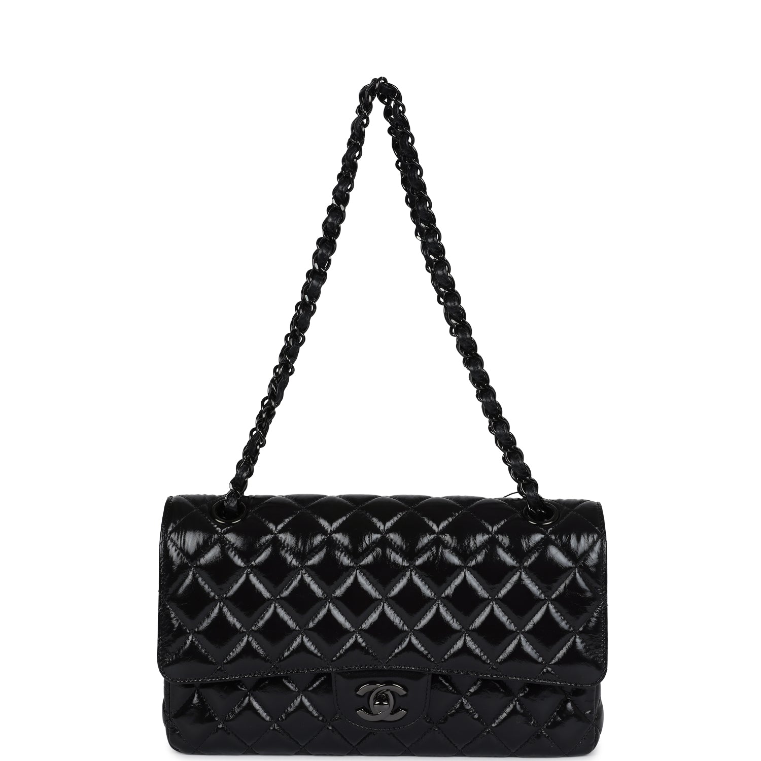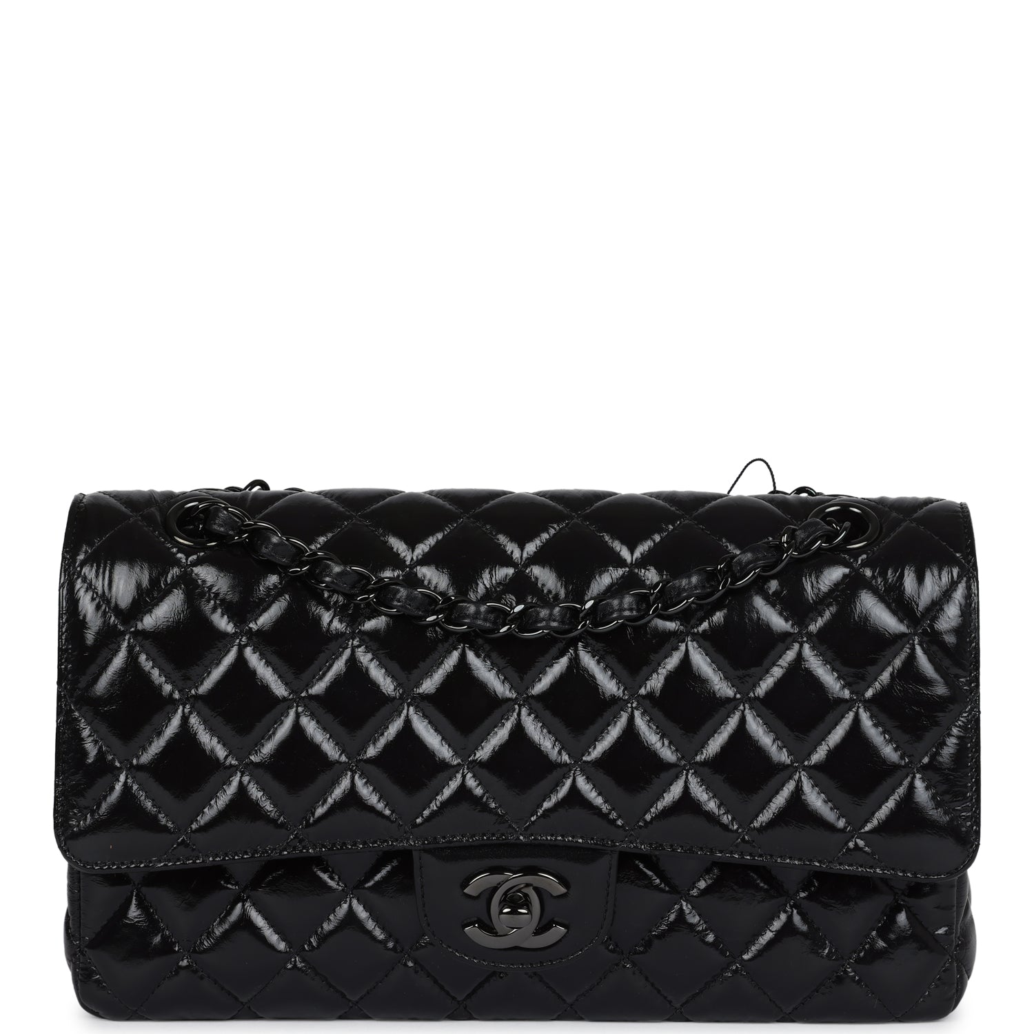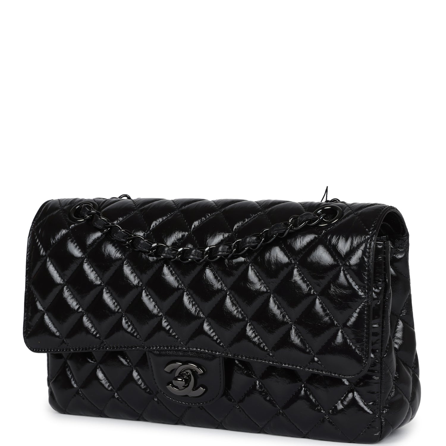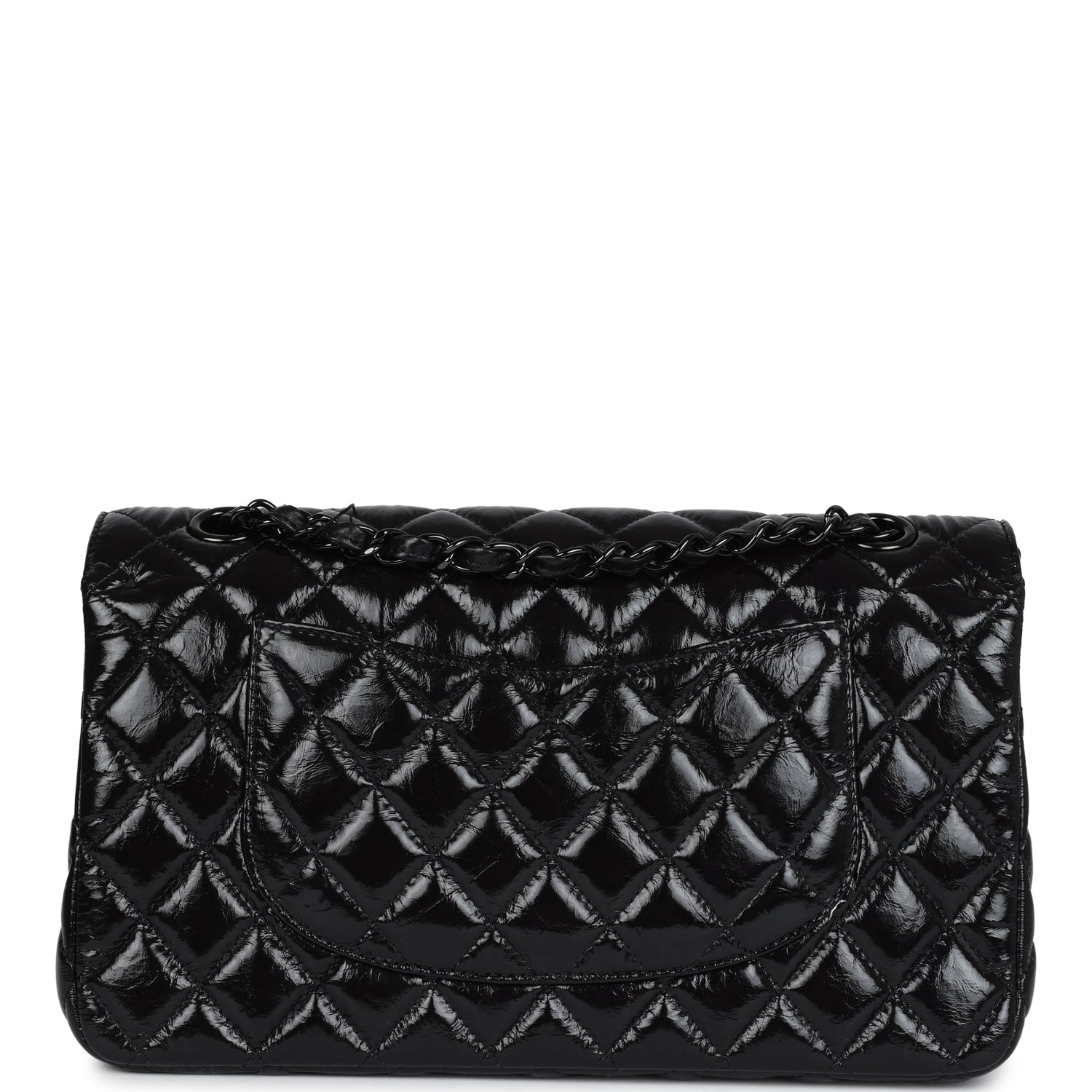 Chanel Medium Classic Double Flap Bag So Black Shiny Aged Calfskin Black Hardware