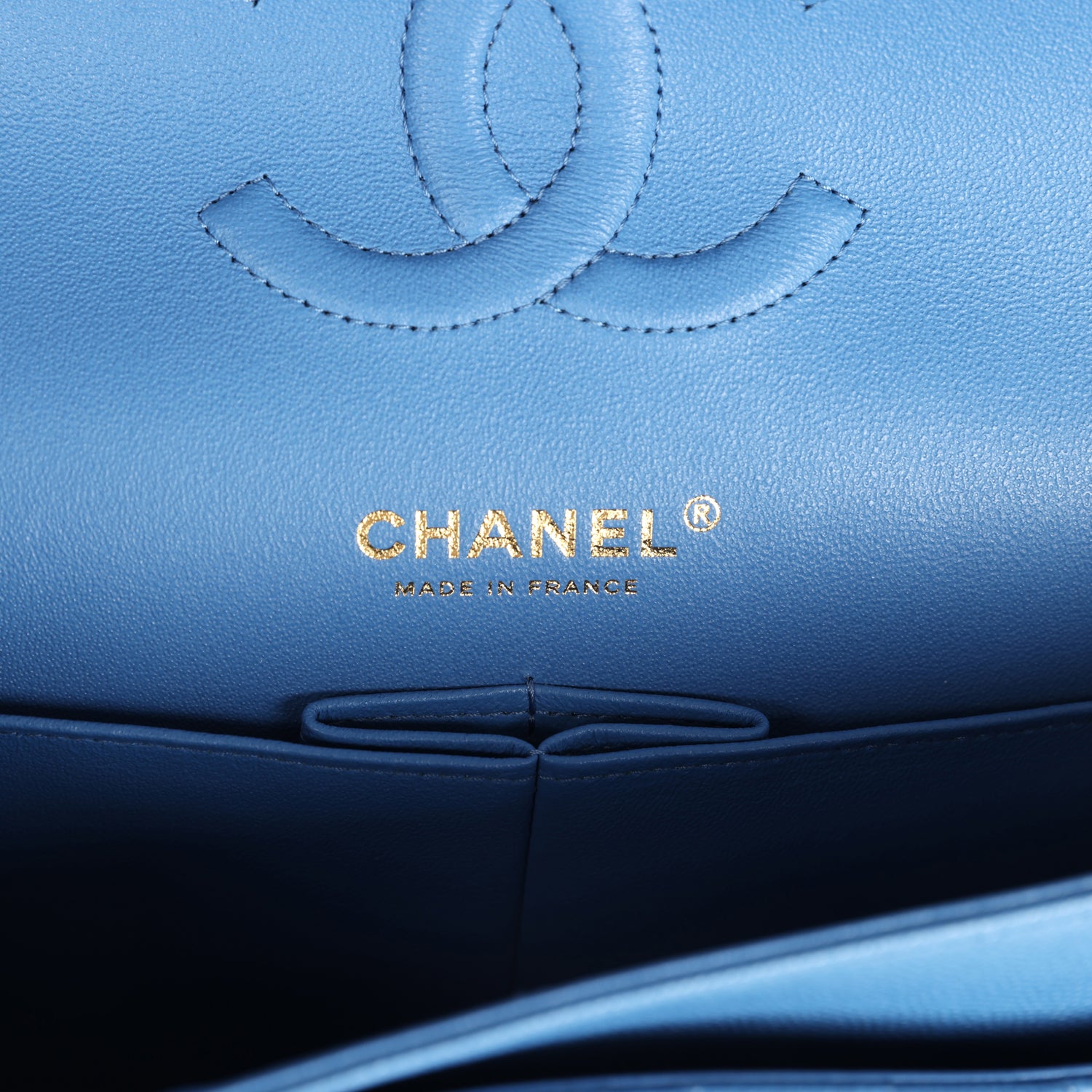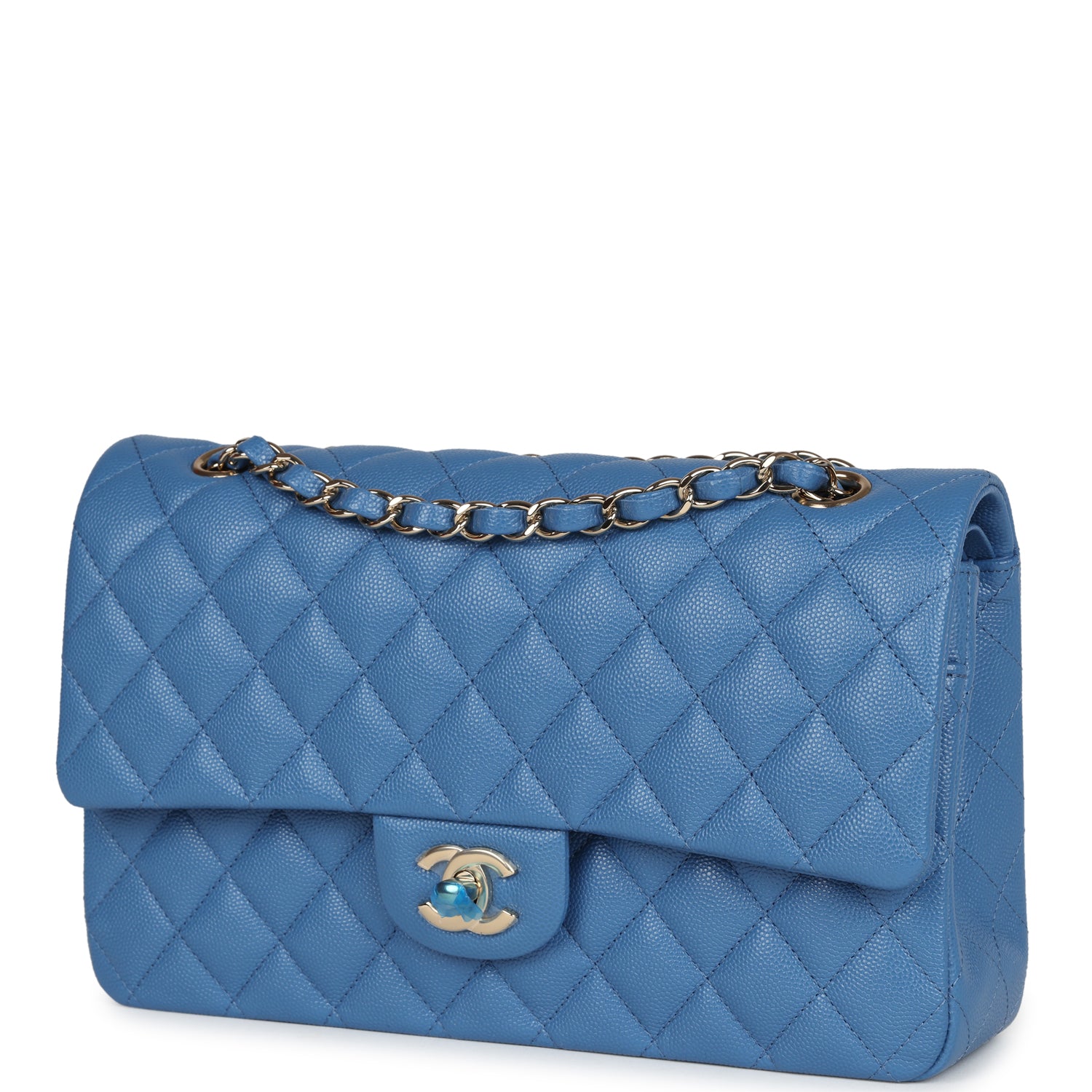 Chanel Medium Classic Double Flap Blue Caviar Gold Hardware