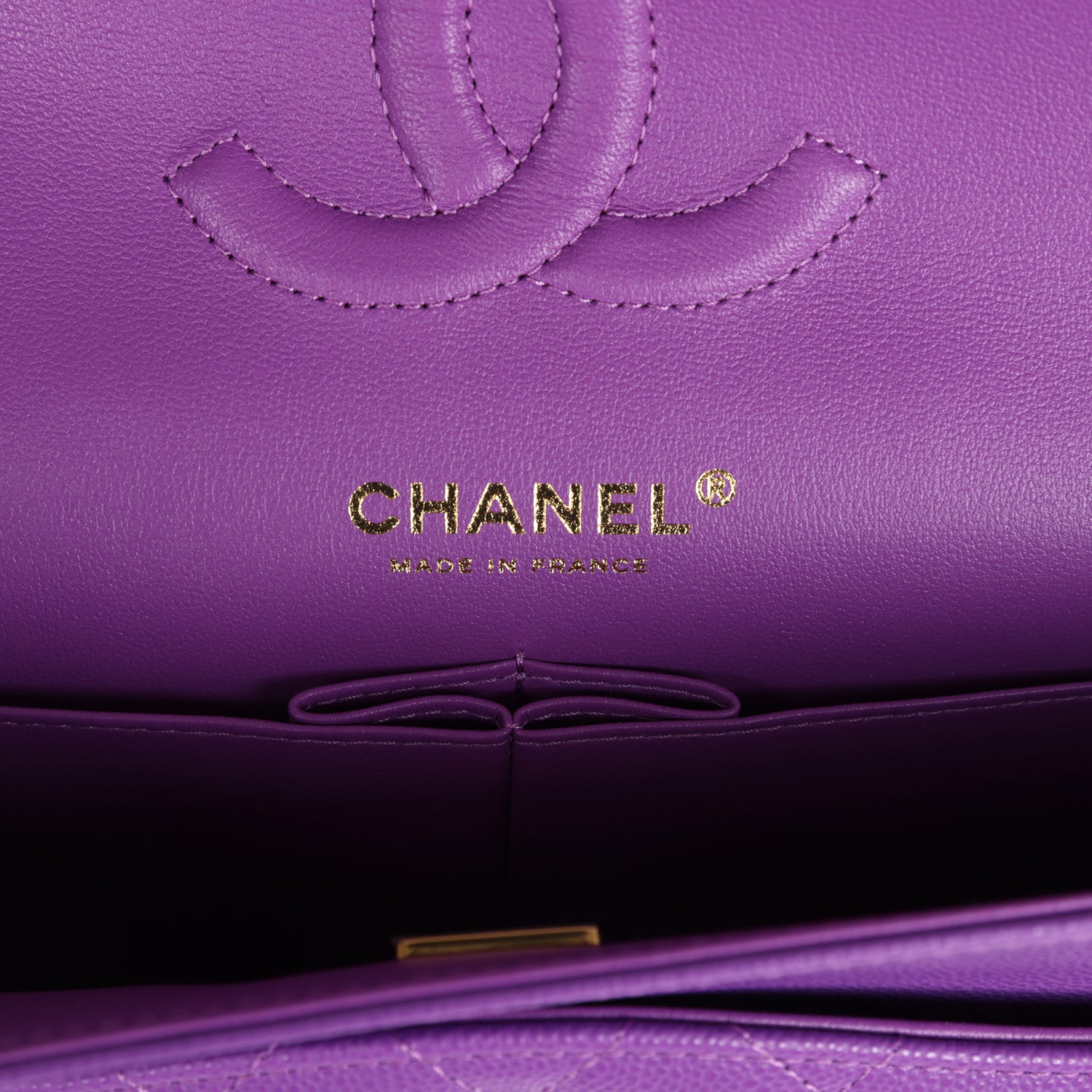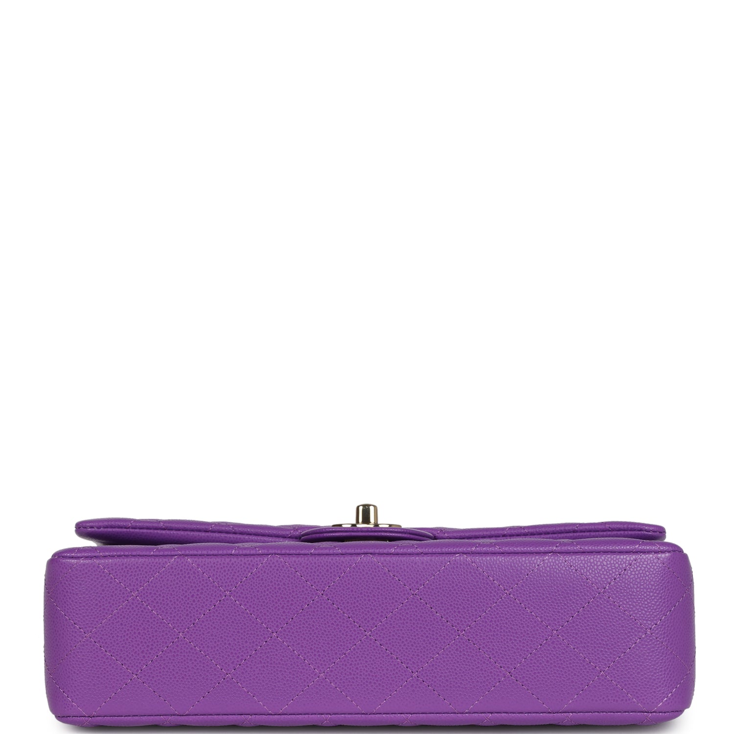Chanel Medium Classic Double Flap Bag Purple Caviar Light Gold Hardware