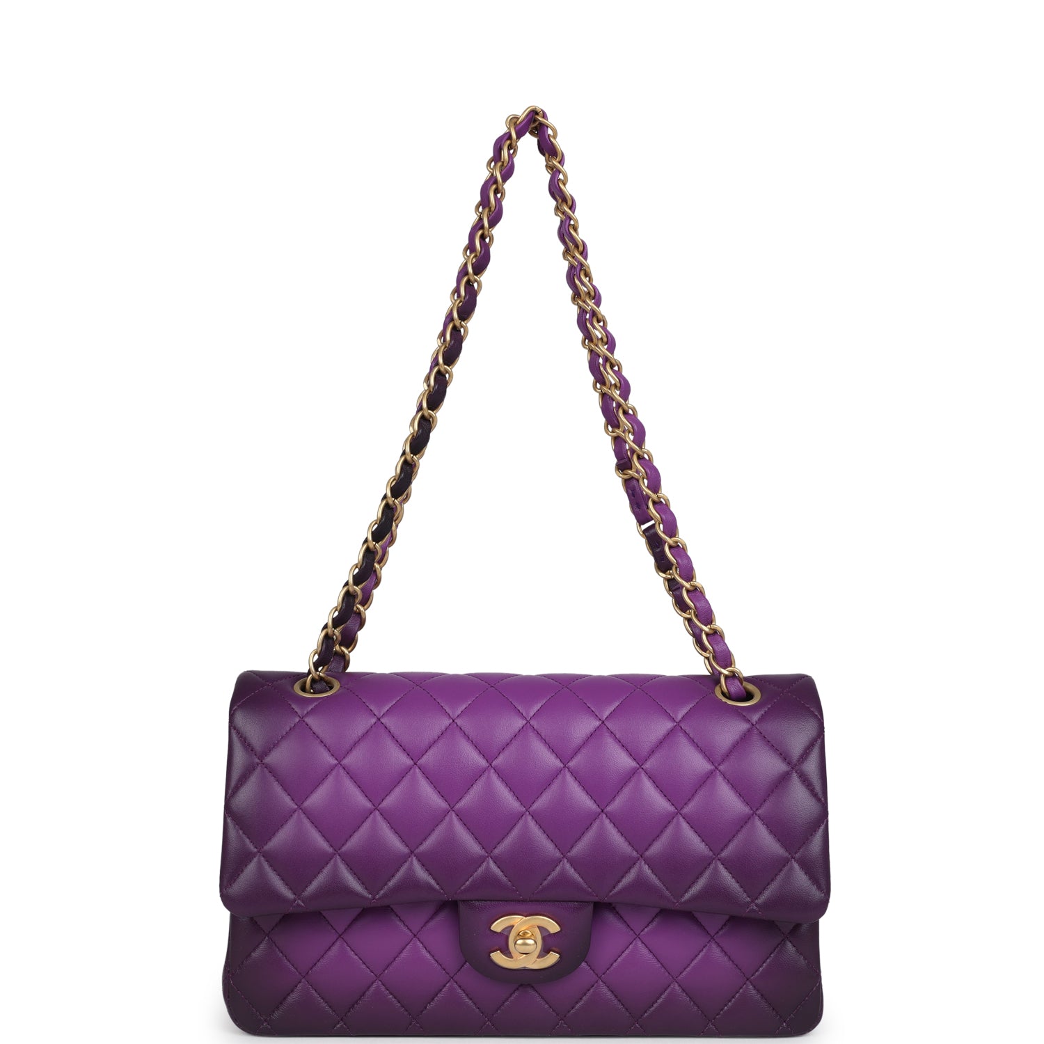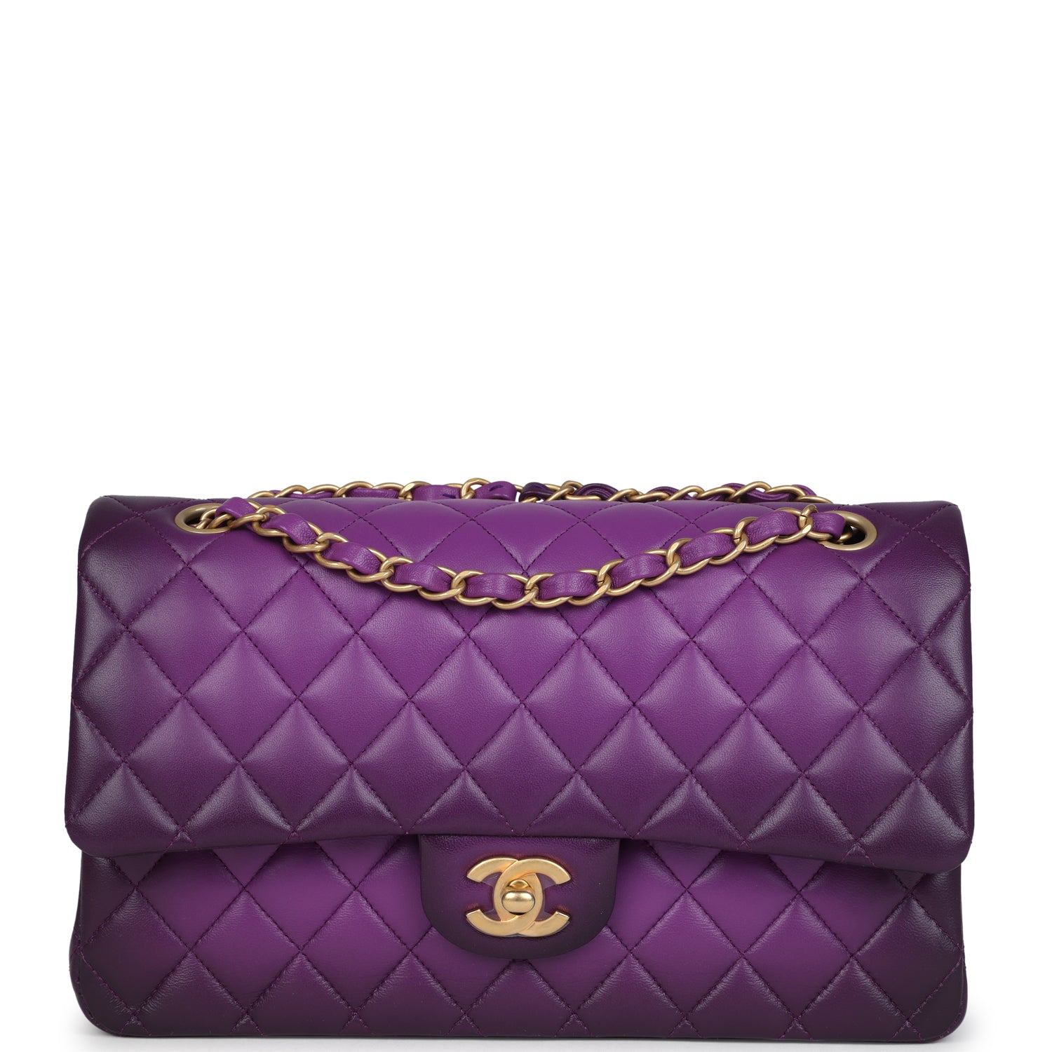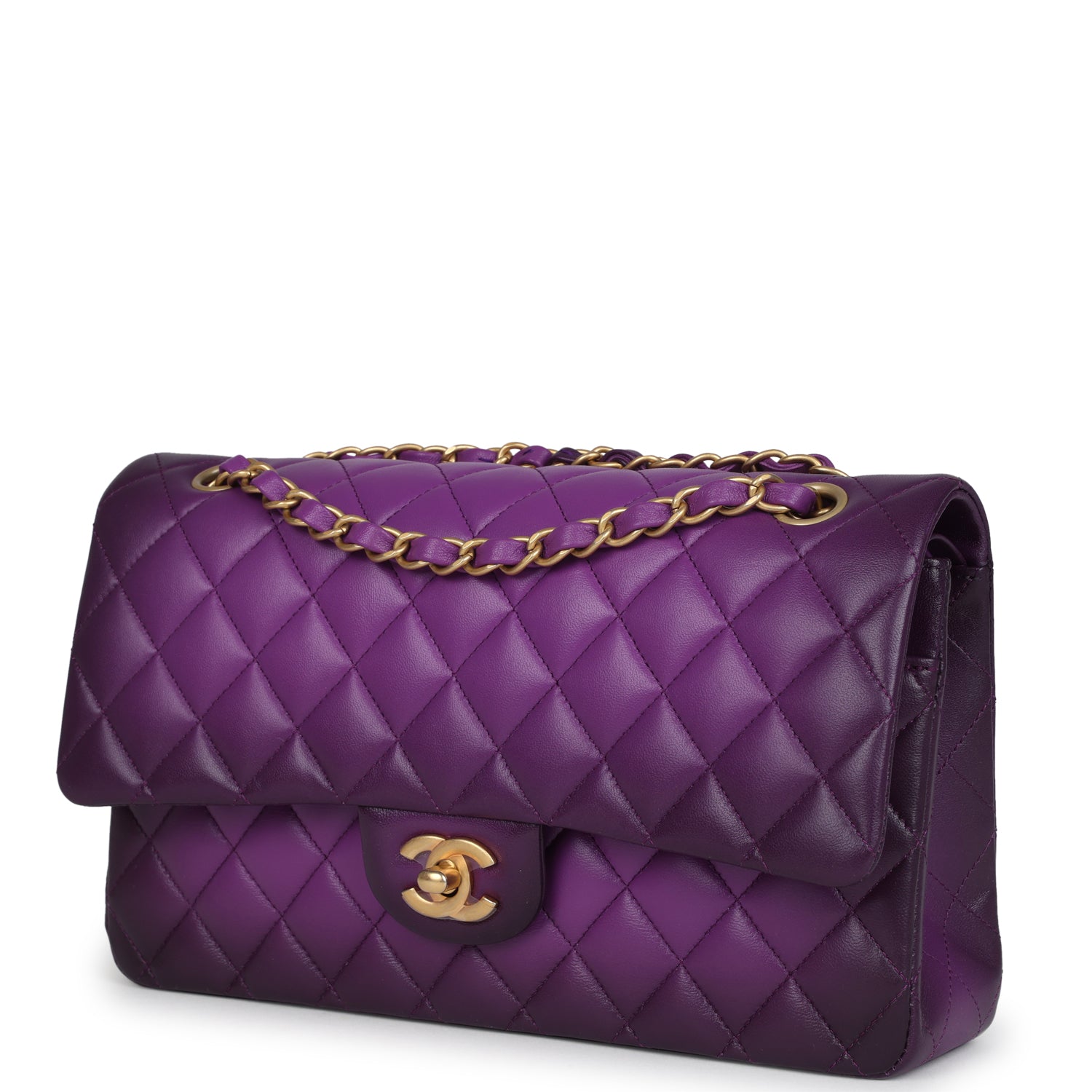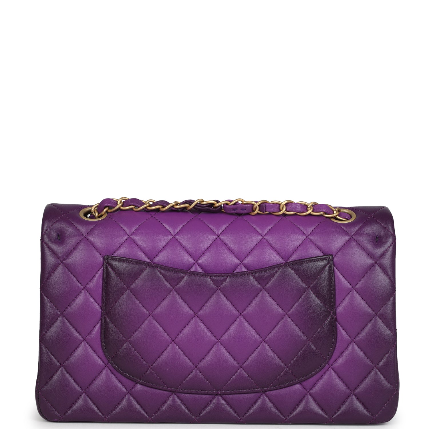 Chanel Medium Classic Double Flap Bag Purple Ombre Lambskin Brushed Gold Hardware