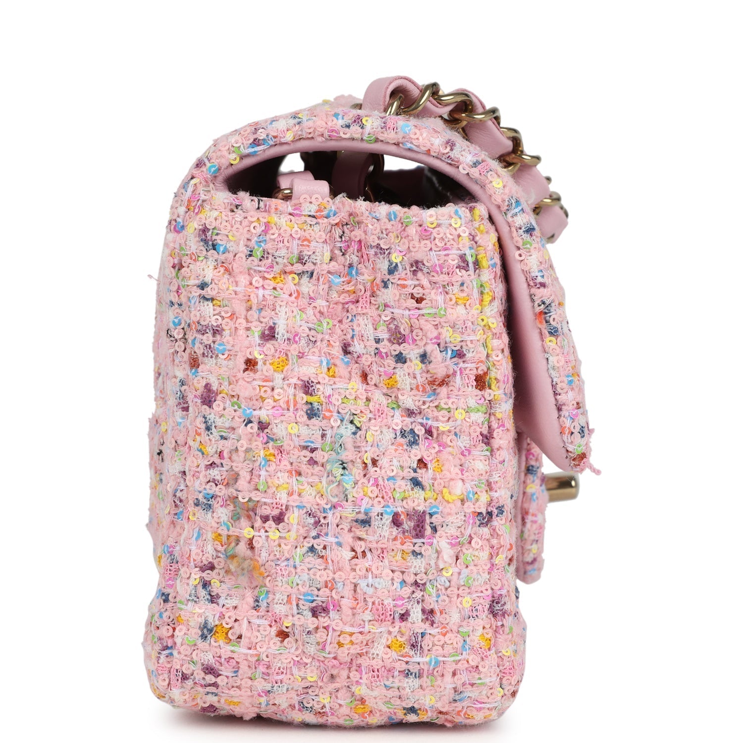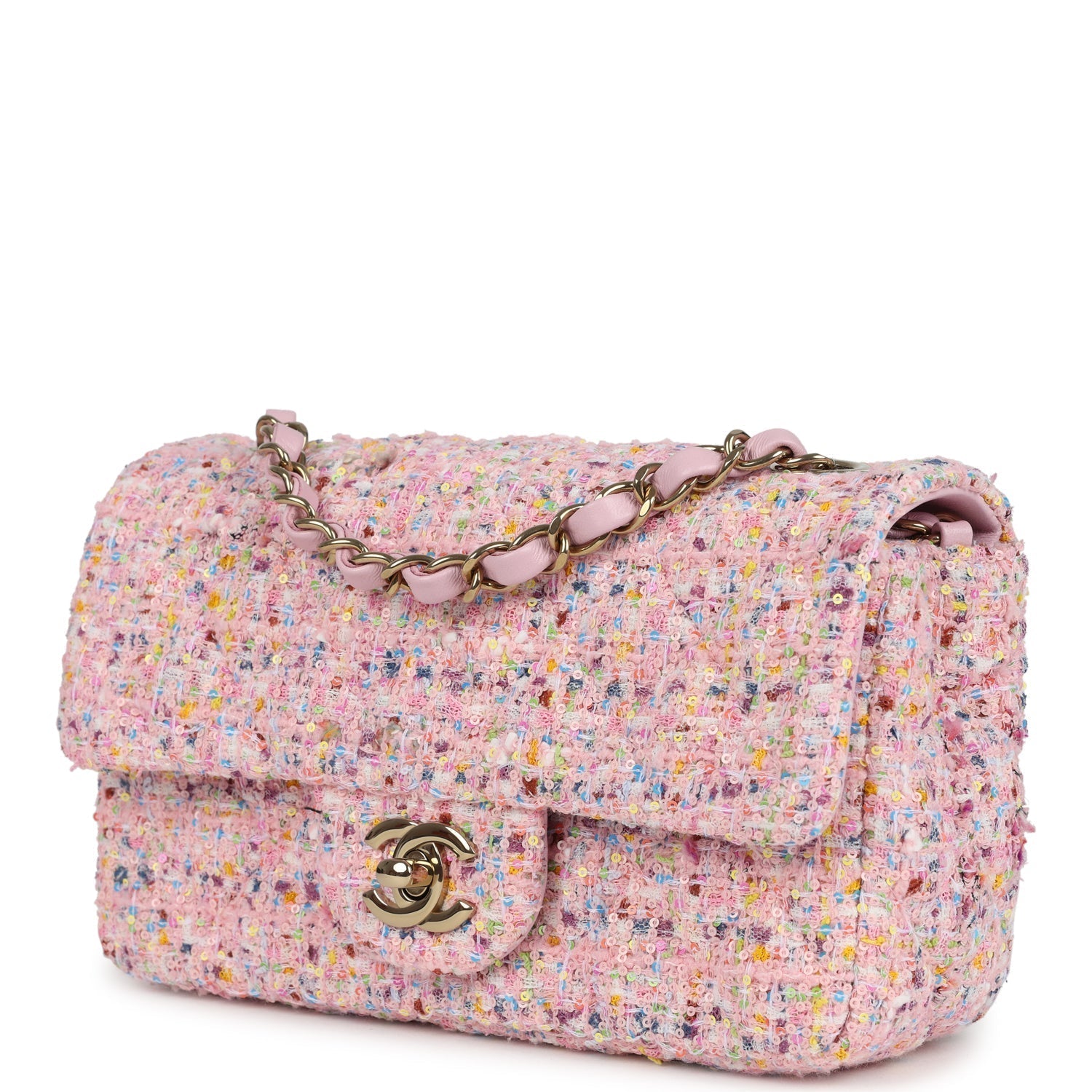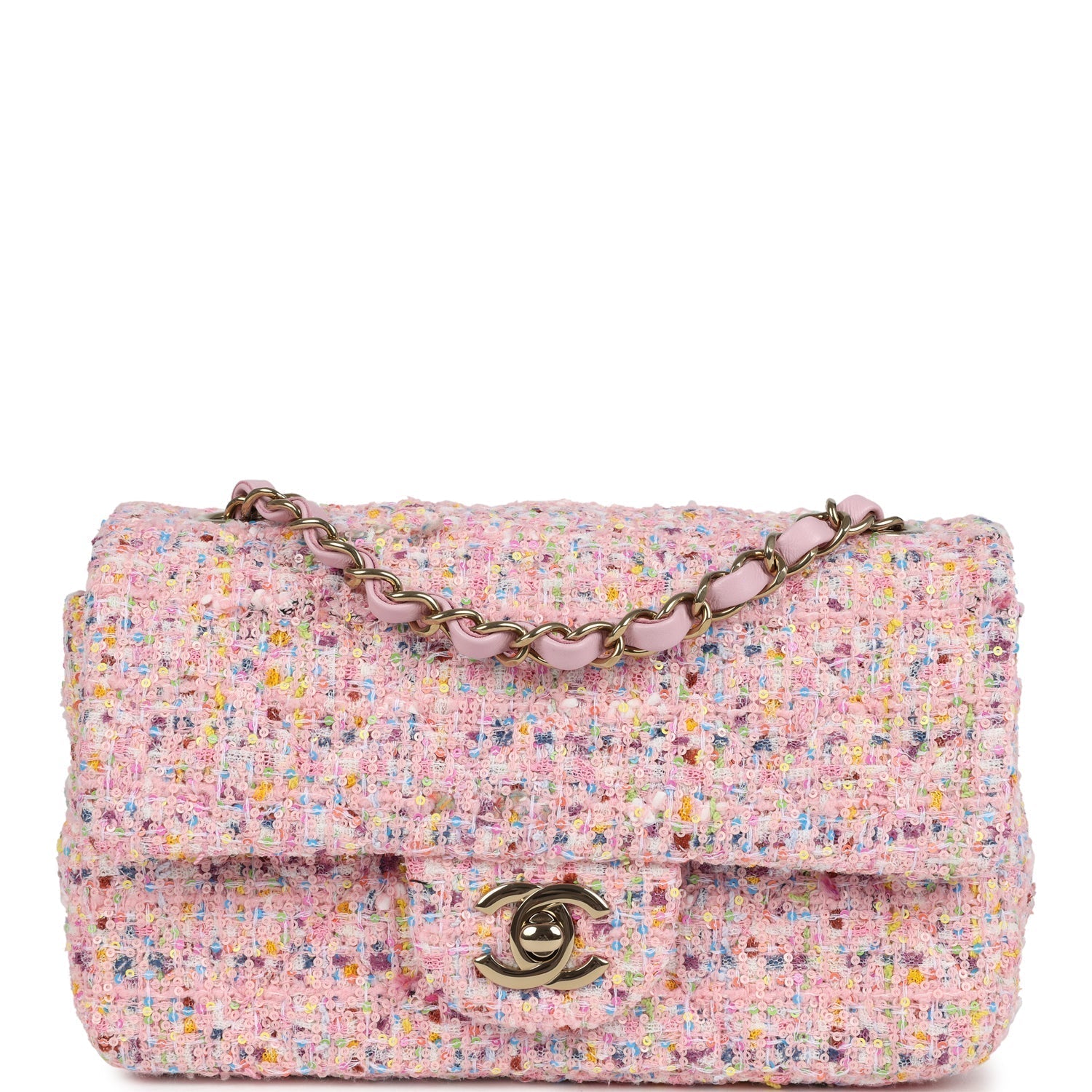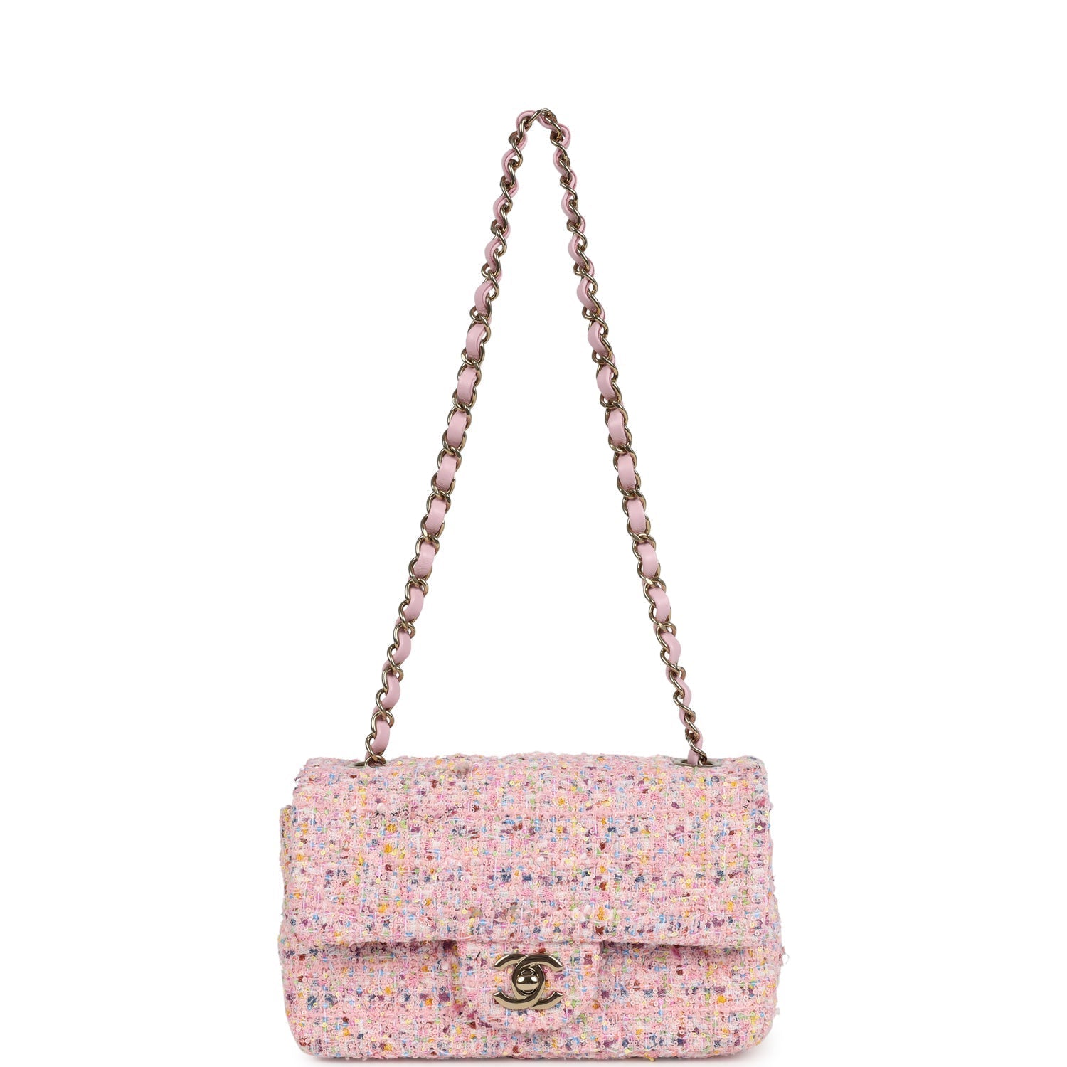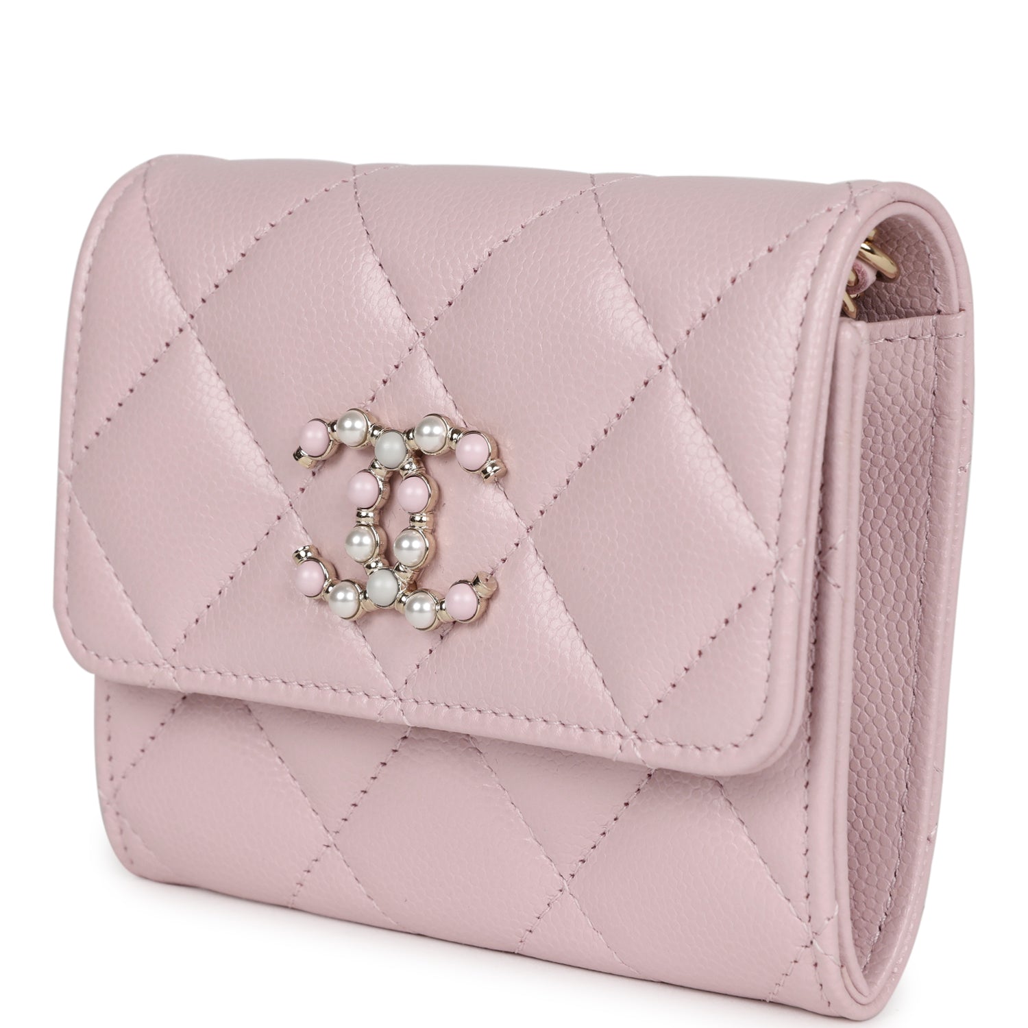 Regular price $1,990.00 Sale price $450.00 Save $1,540.00This Chanel Mini Crossbody is in Pink Caviar with Light gold hardware, tonal stitching, front flap has a CC snap closure with faux pearls and pink beads, and an interwoven pink and light gold hardware chain link strap.