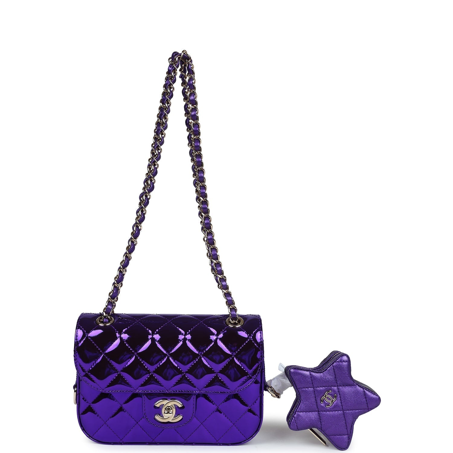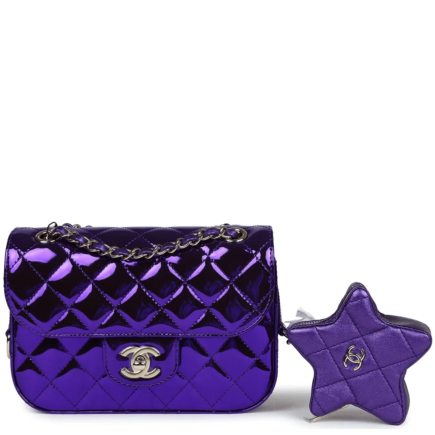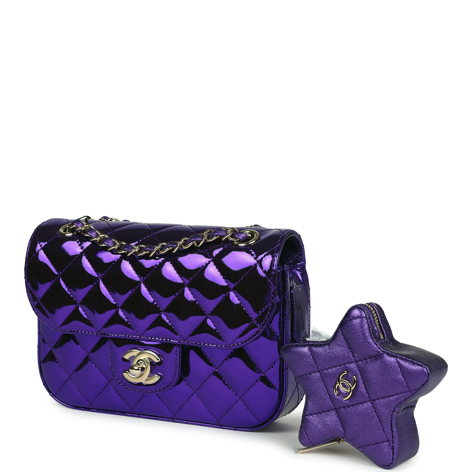 Chanel Mini Flap Bag & Star Coin Purse Purple Mirror Calfskin/Metallic Calfskin Light Gold Hardware
