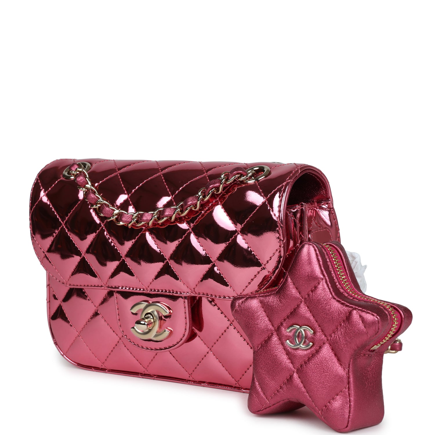 Chanel Mini Flap Bag & Star Coin Purse Pink Mirror Calfskin/Metallic Calfskin Light Gold Hardware