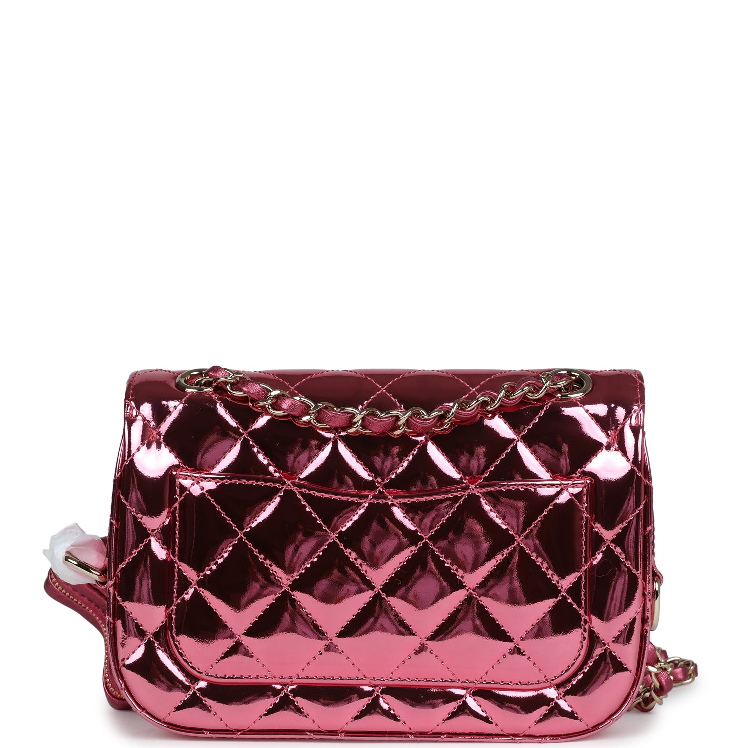 Regular price $1,880.00 Sale price $450.00 Save $1,430.00This Chanel mini flap bag and star coin purse comes in Pink Mirror calfskin and Pink Metallic calfskin leather with Light Gold hardware, features tonal stitching, single flap bag, front cc turnlock closure, a detachable Star coin purse on side of bag, Light Gold tone metal interwoven with Metallic Pink leather chainlink shoulder/crossbody strap.