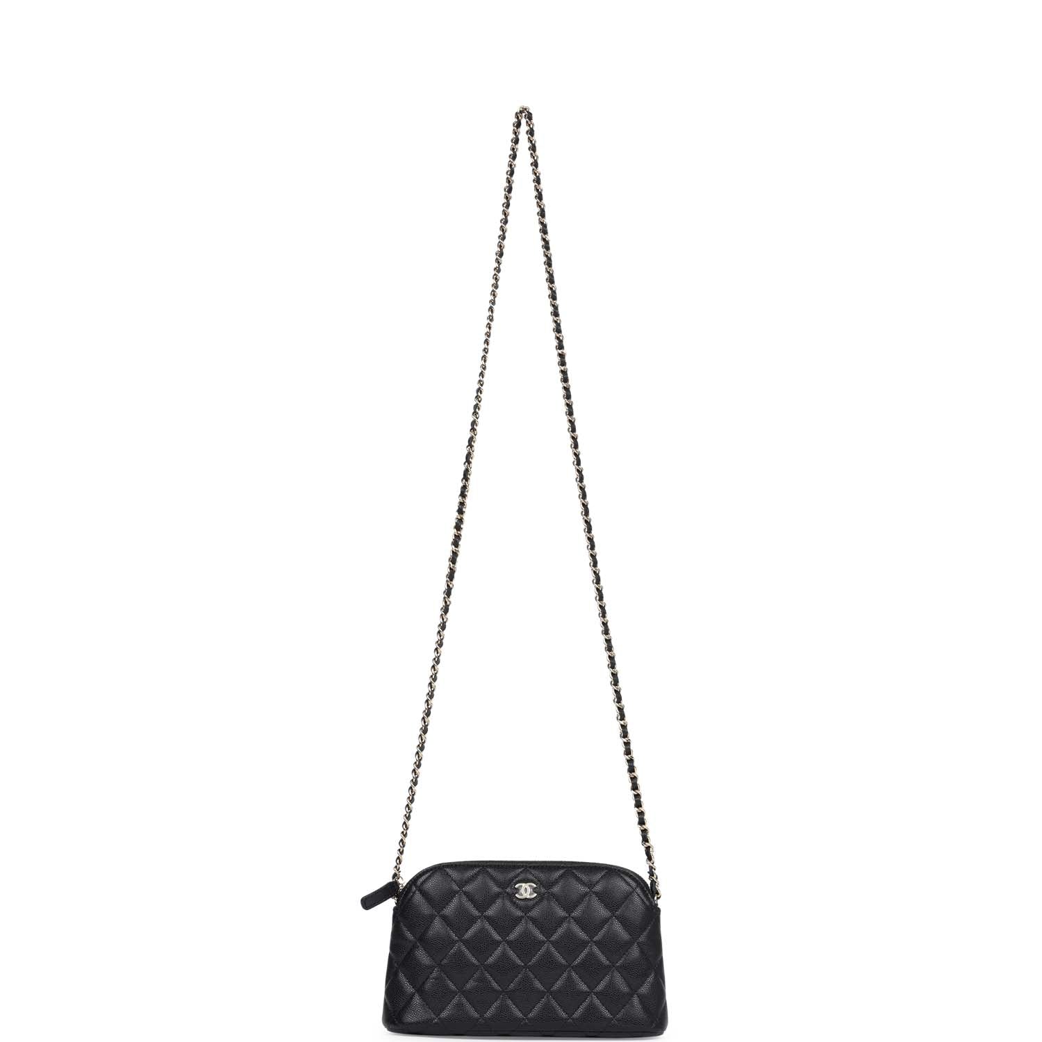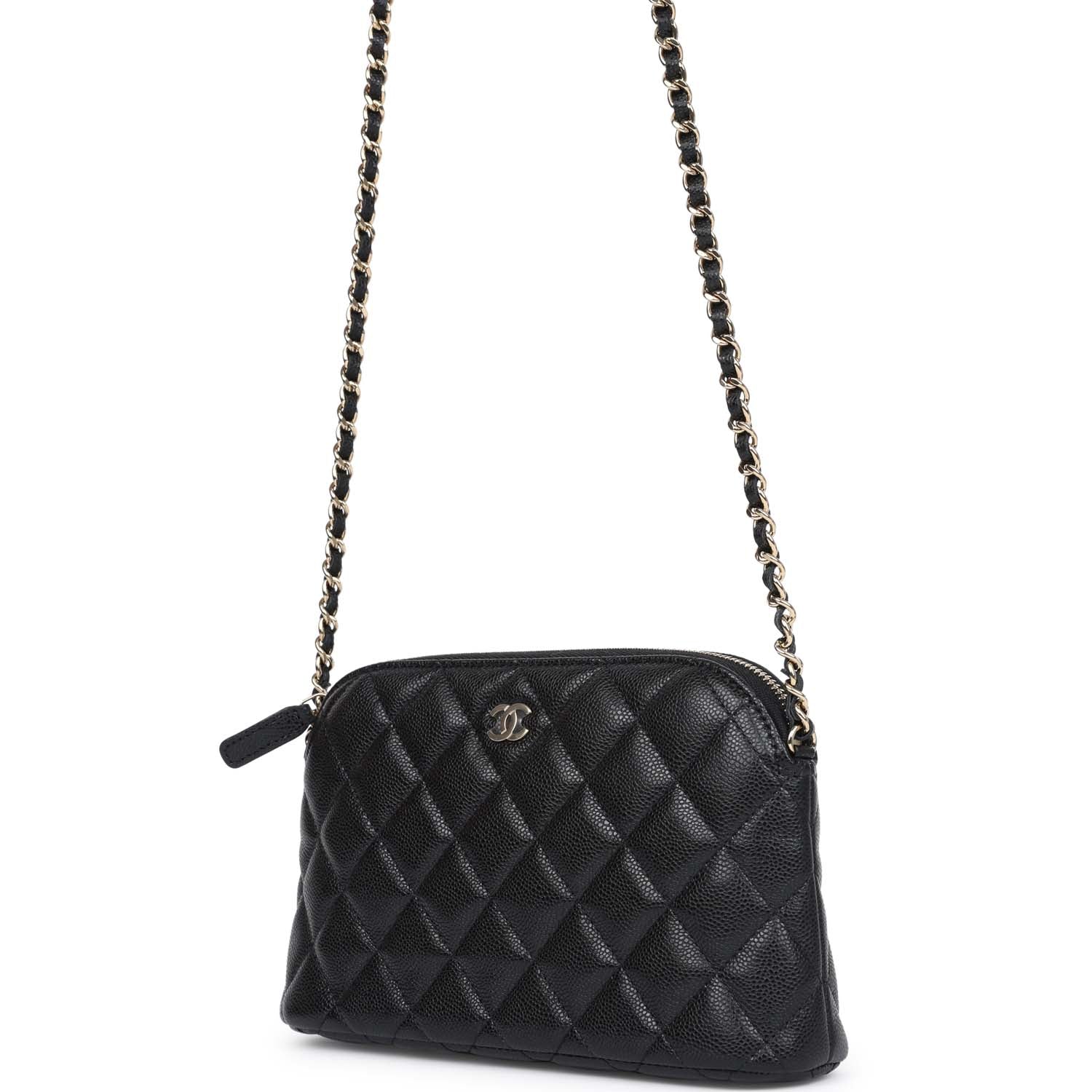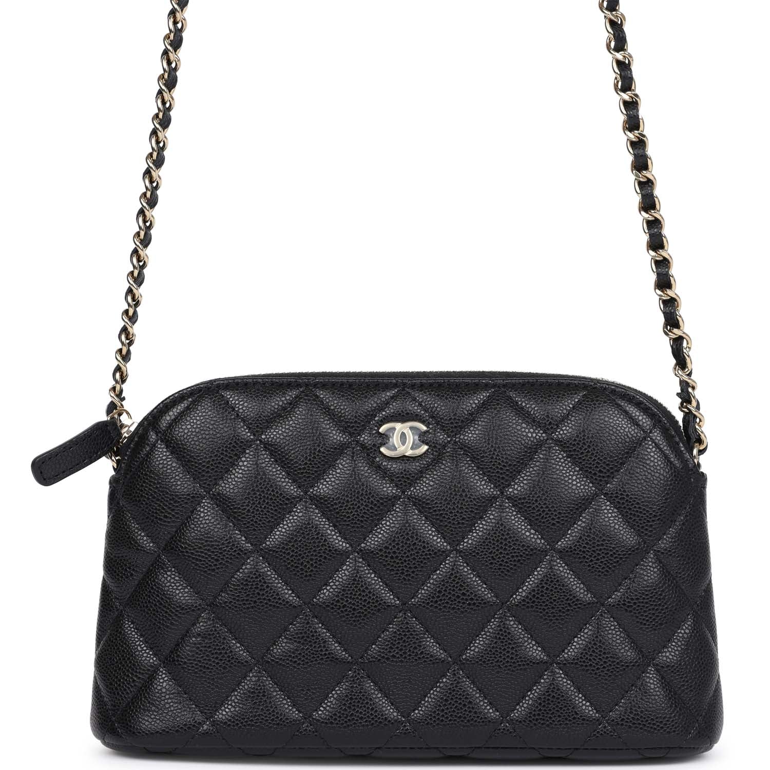 Chanel Mini Clutch with Chain Crossbody Bag Black Caviar Light Gold Hardware