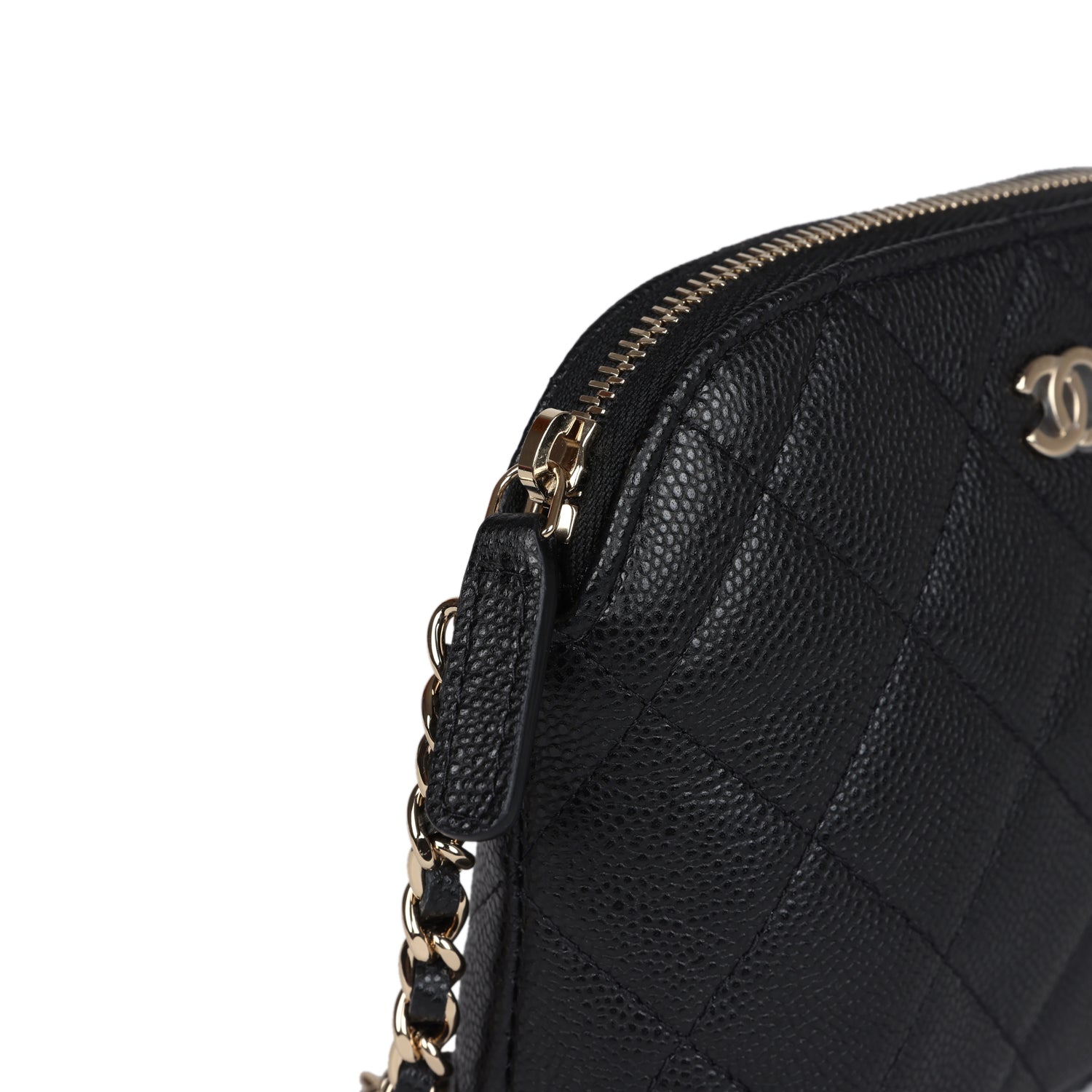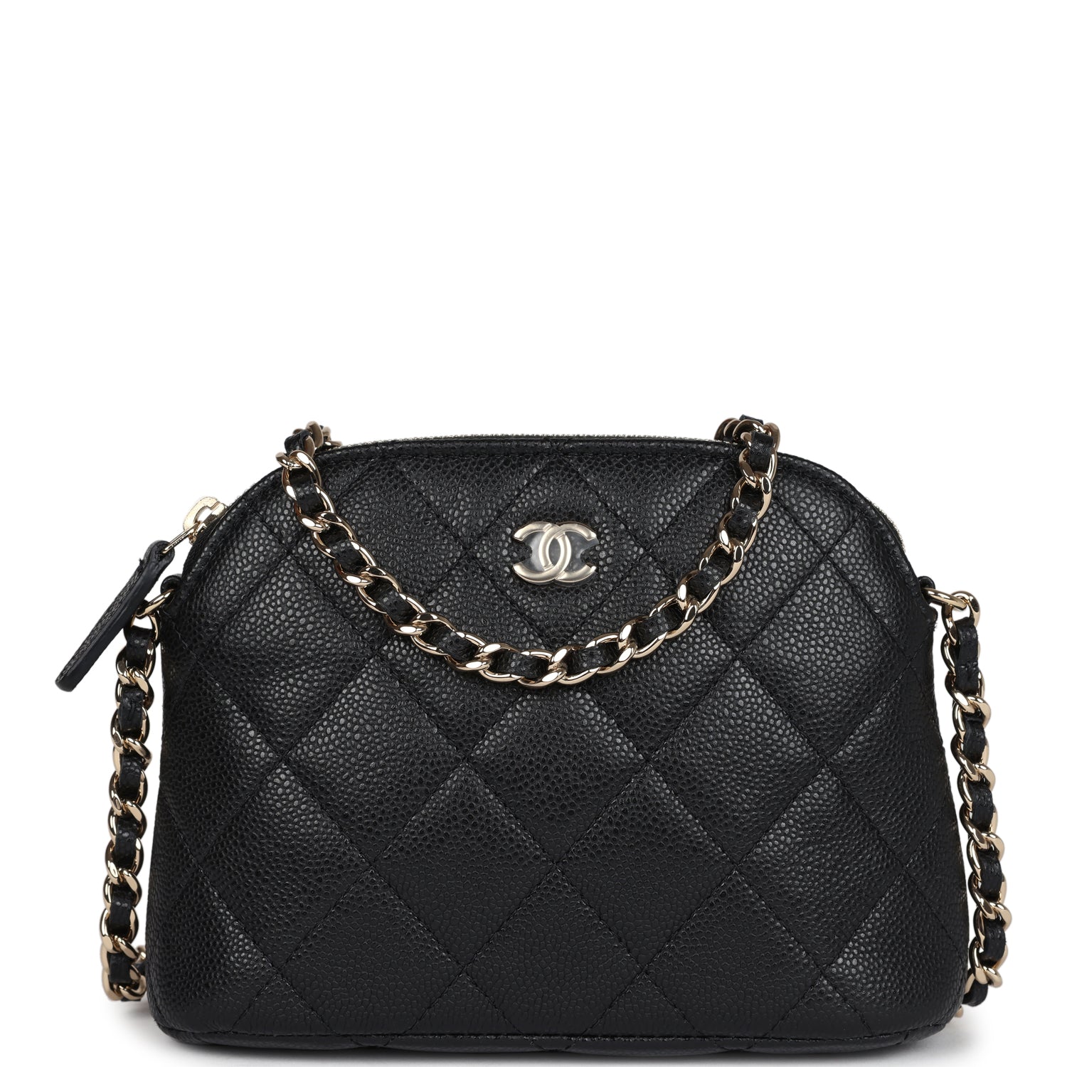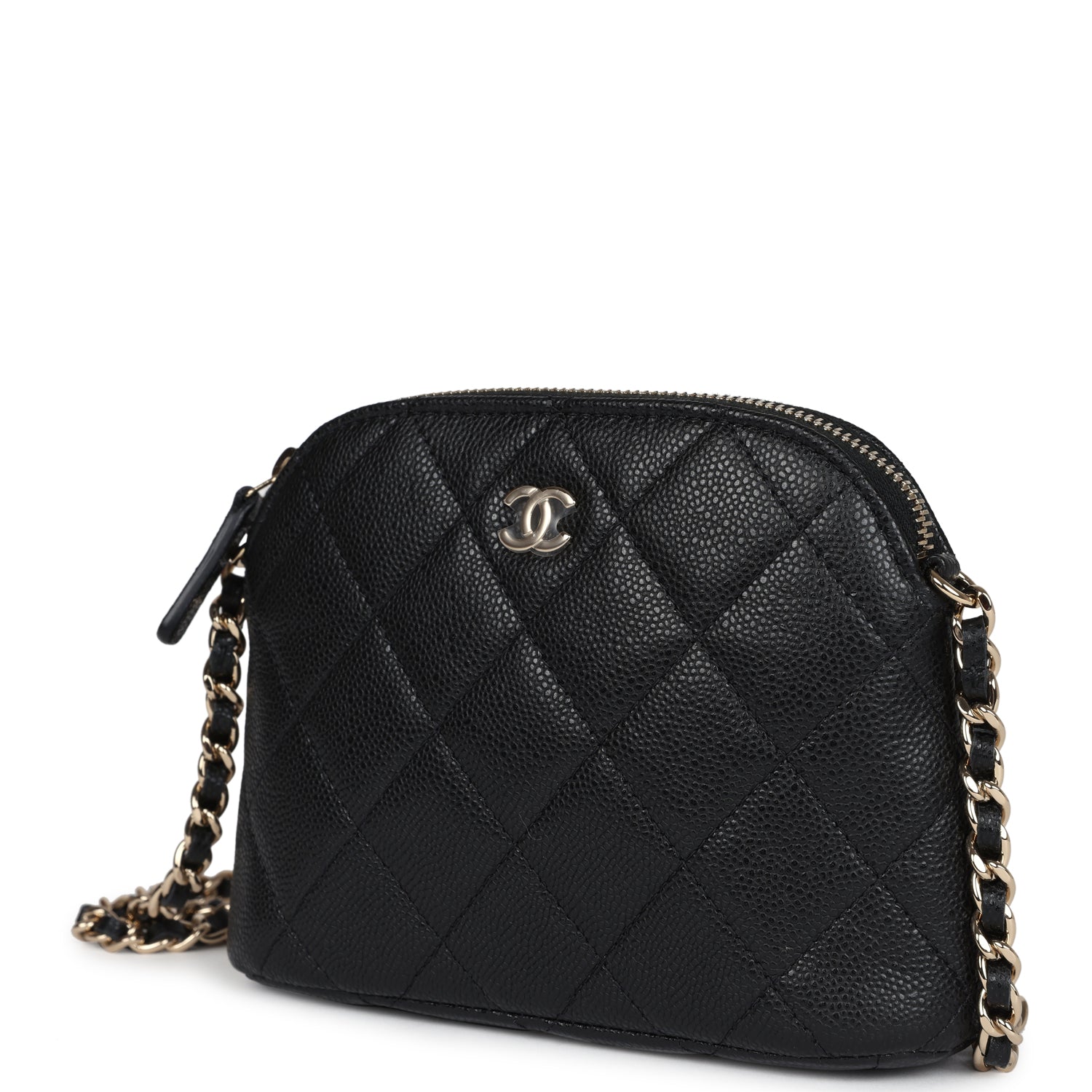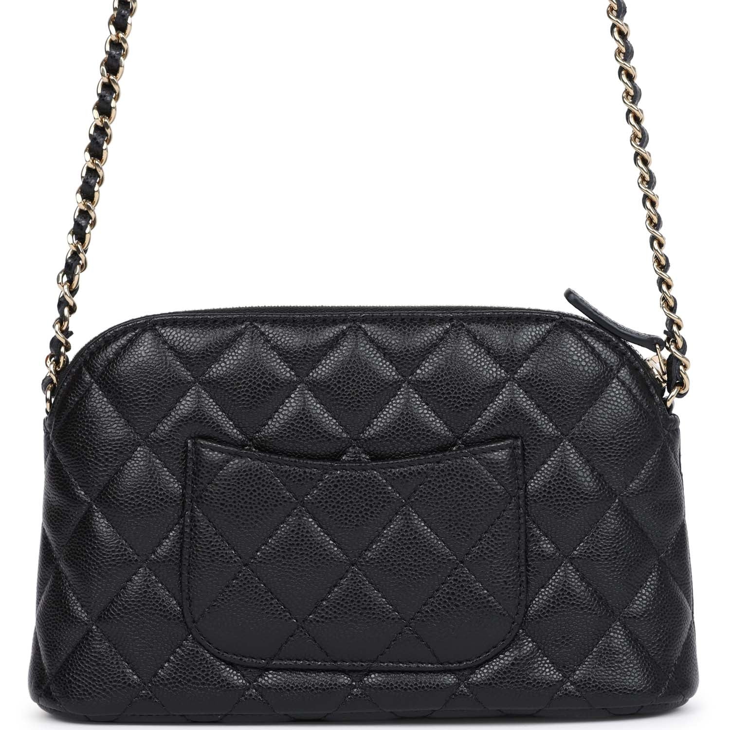 Chanel Mini Clutch with Chain Crossbody Bag Black Caviar Light Gold Hardware