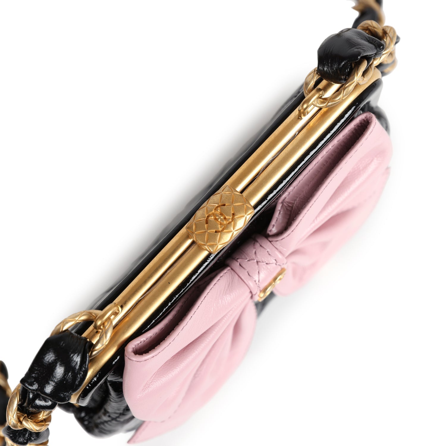 Regular price $2,220.00 Sale price $430.00 Save $1,790.00Chanel Mini Clutch with Bow Crossbody Bag Black Shiny Lambskin and Pink Patent Crumpled Lambskin Antique Gold Hardware