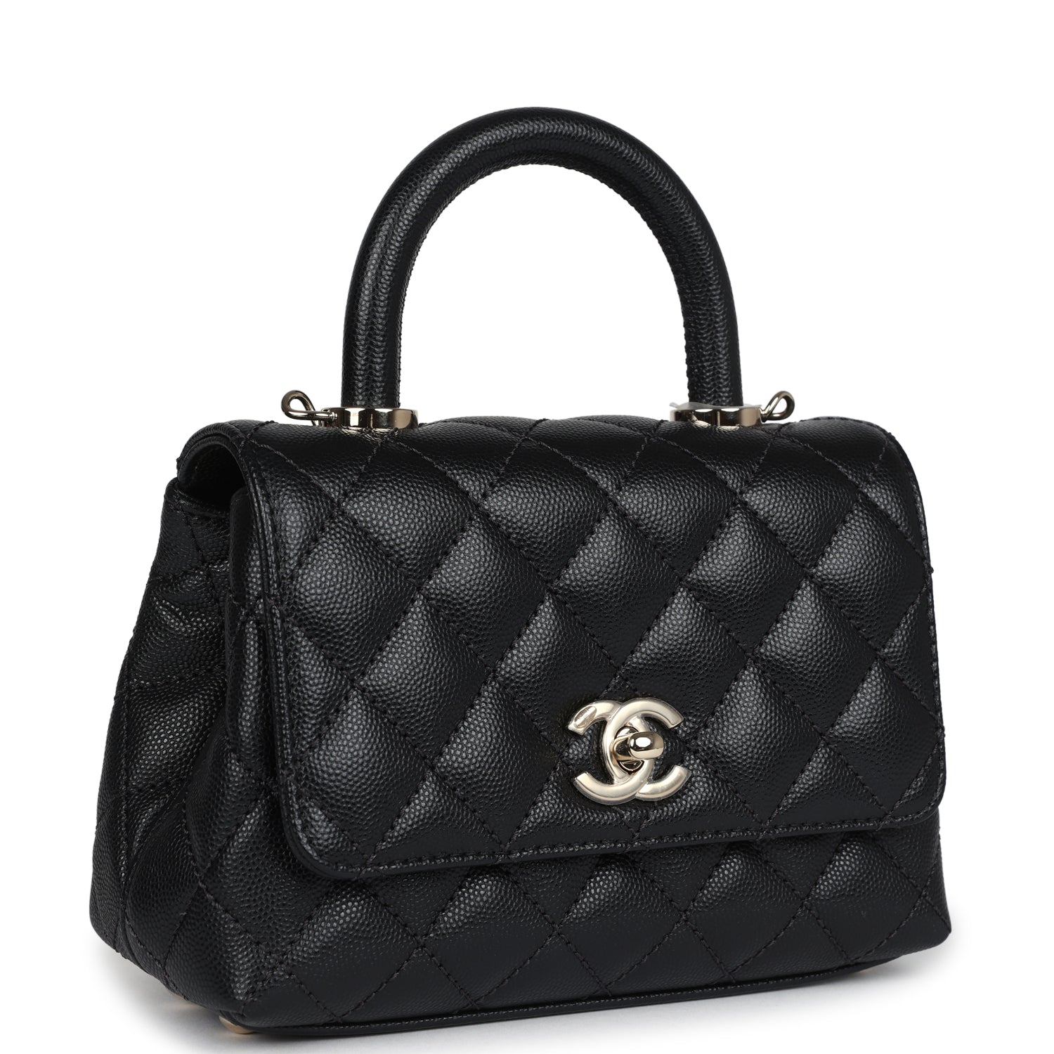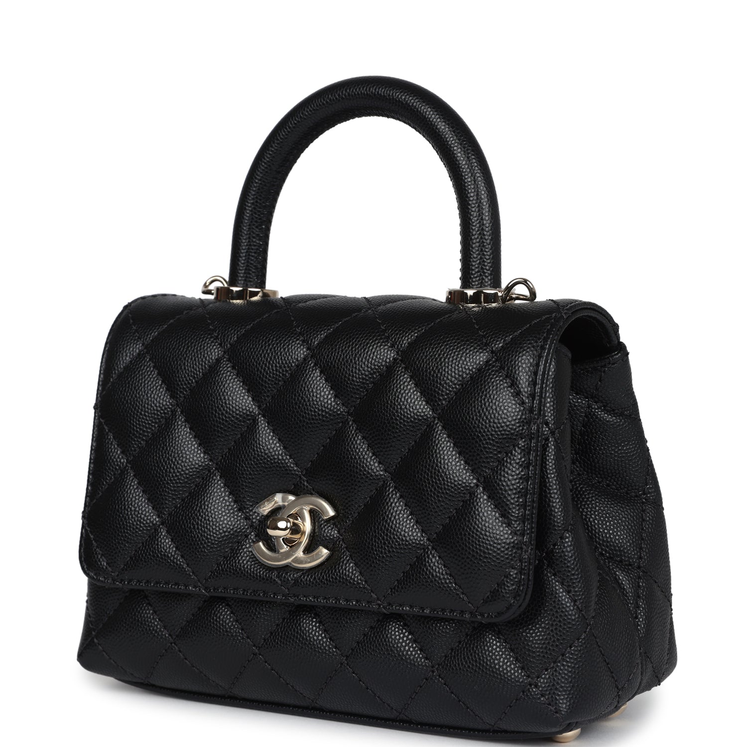 Chanel Mini Coco Handle Flap Bag Black Caviar Light Gold Hardware