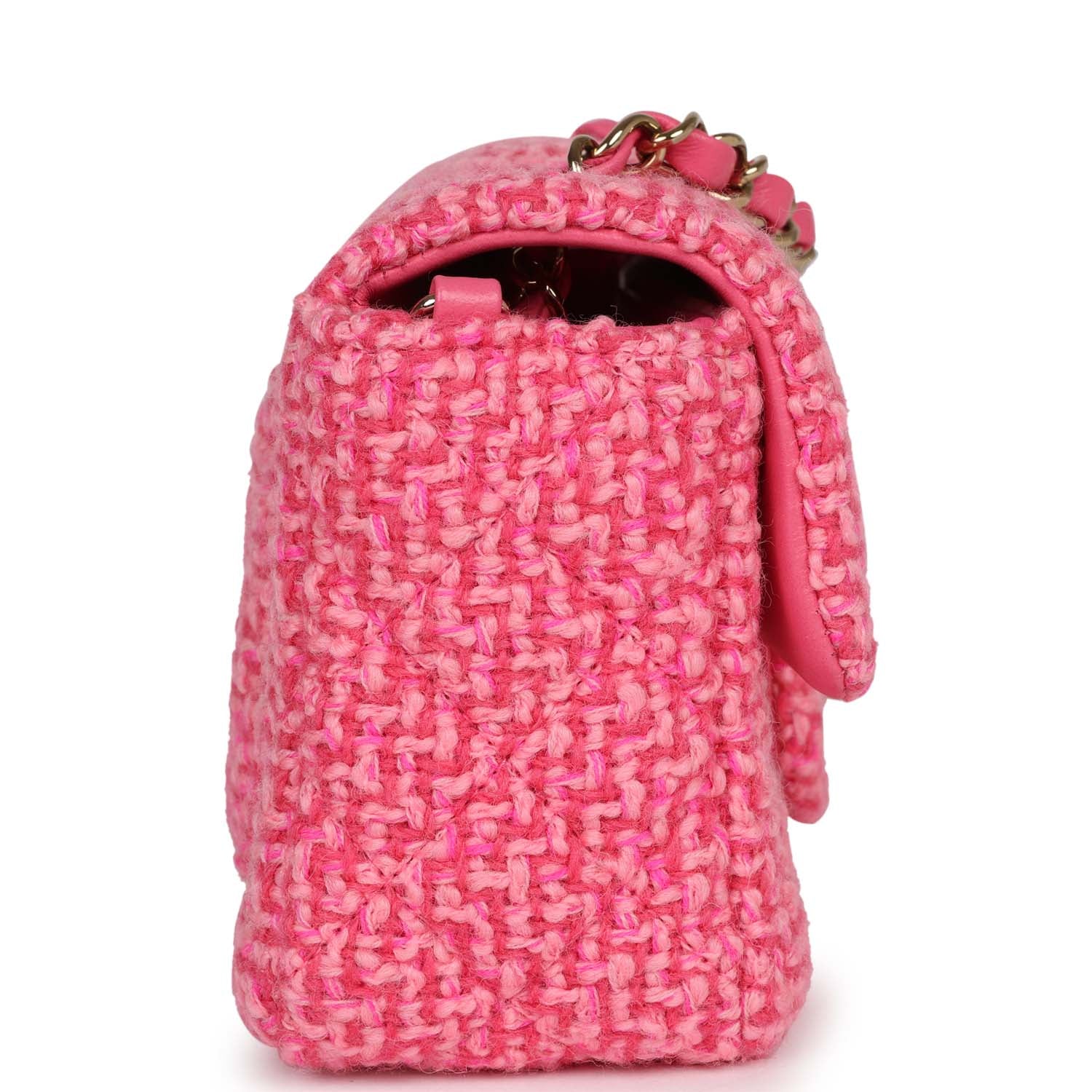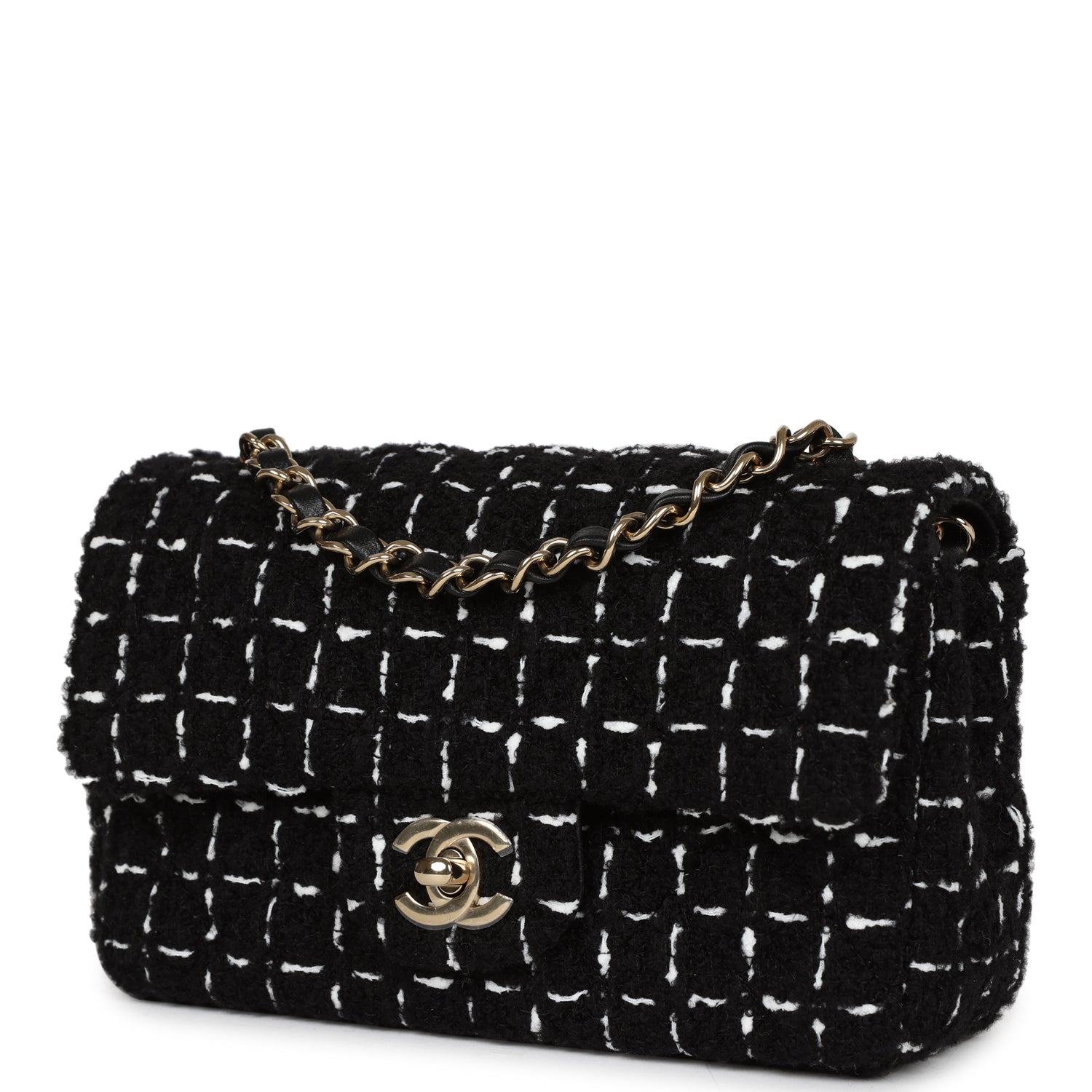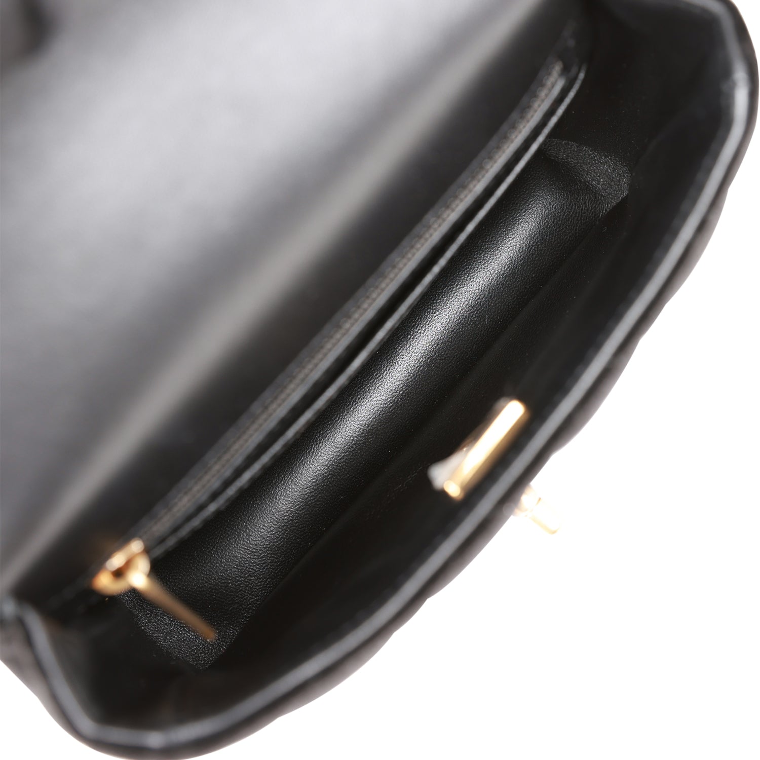 Regular price $18,660.00 Sale price $1,240.00 Save $17,420.00This Chanel Classic Mini Square flap bag is in black lambskin leather with light gold tone hardware and has a front flap with signature CC turnlock closure, tonal stitching, rear half moon pocket and single interwoven black leather and light gold tone chain link shoulder/crossbody strap.