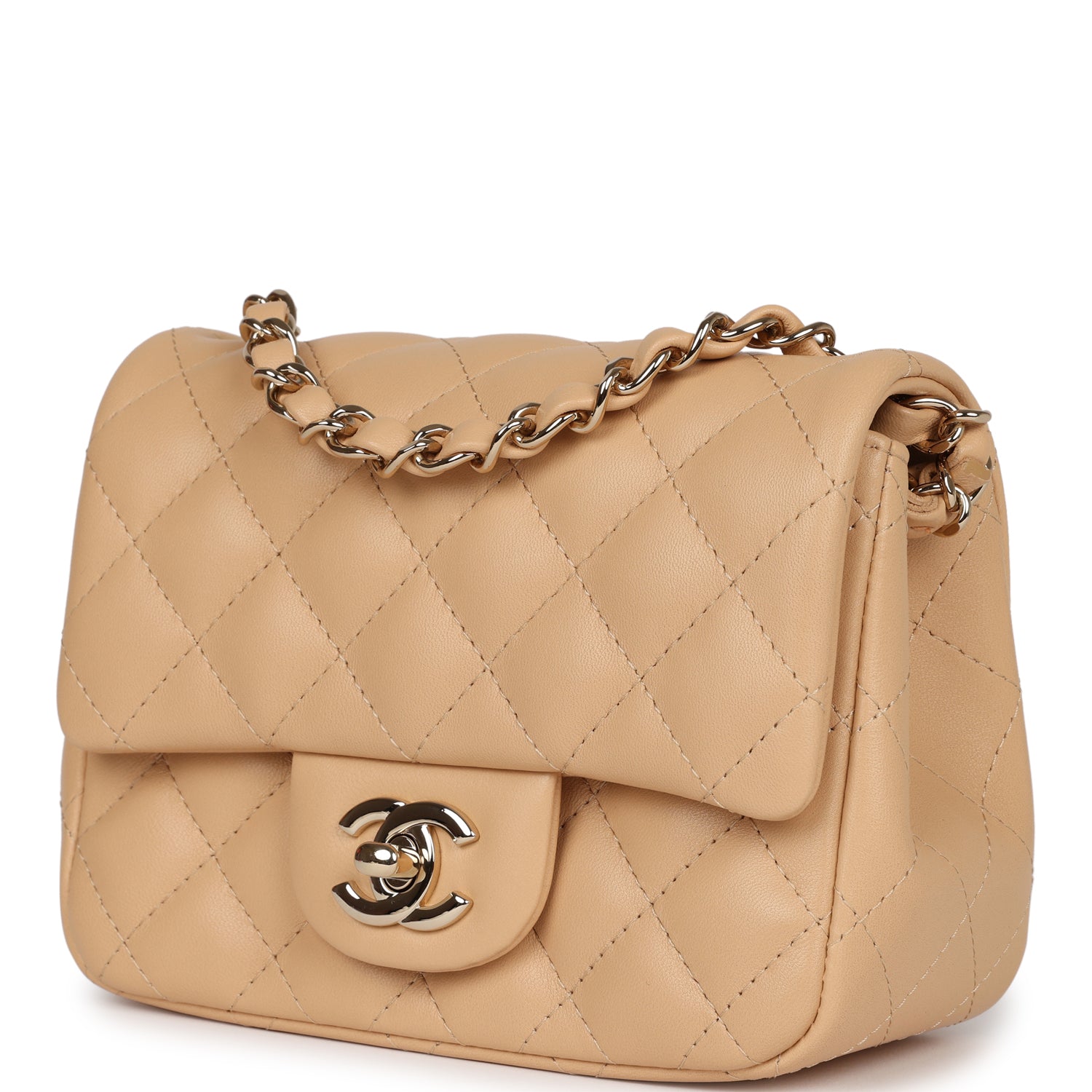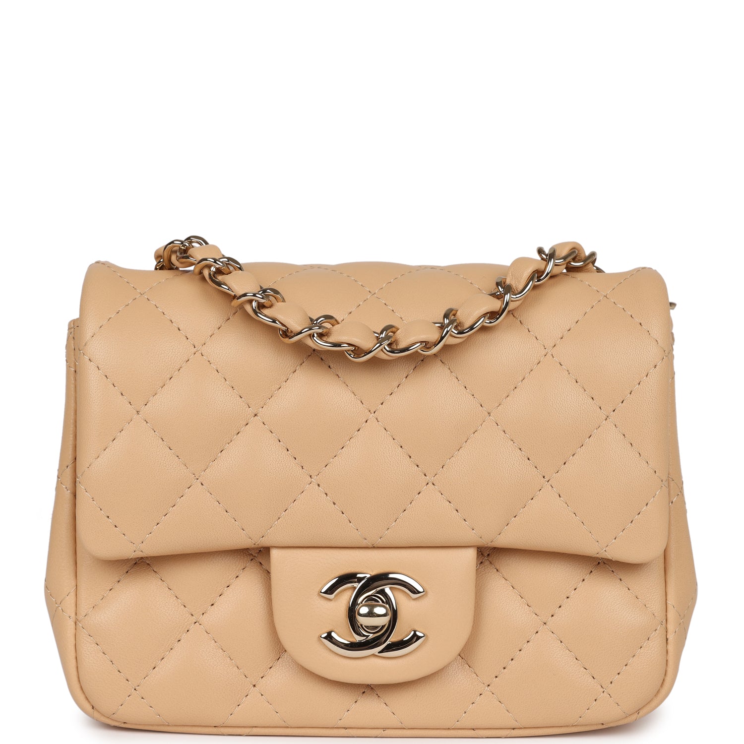 Chanel Mini Classic Square Flap Beige Lambskin Gold Hardware