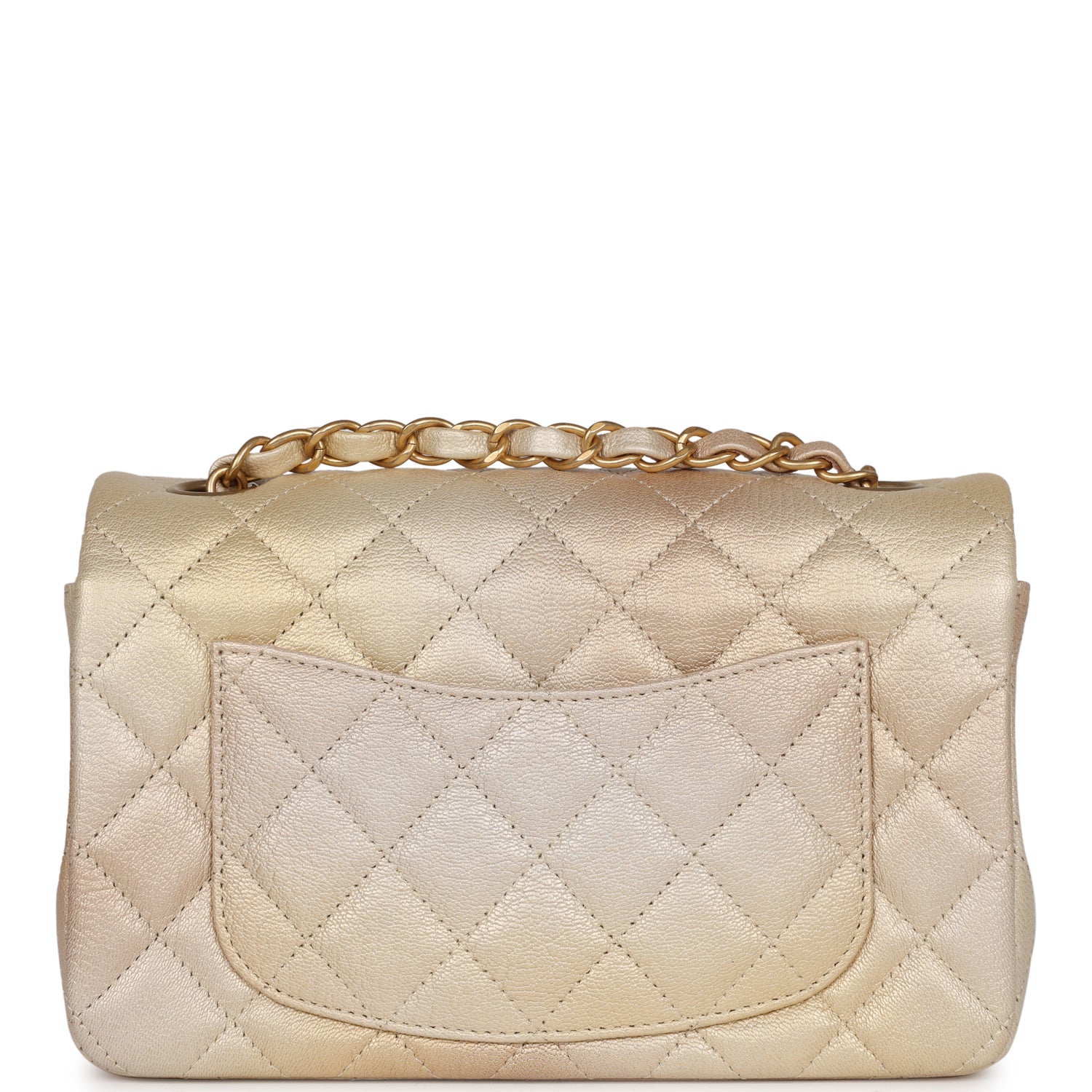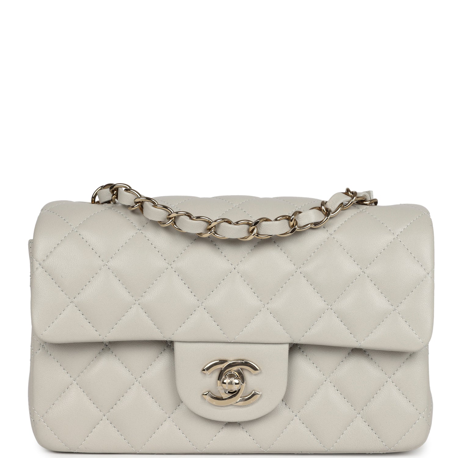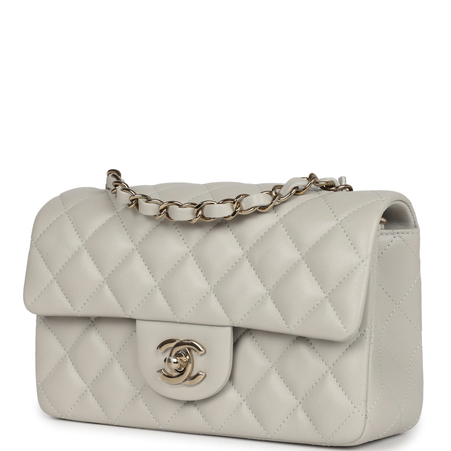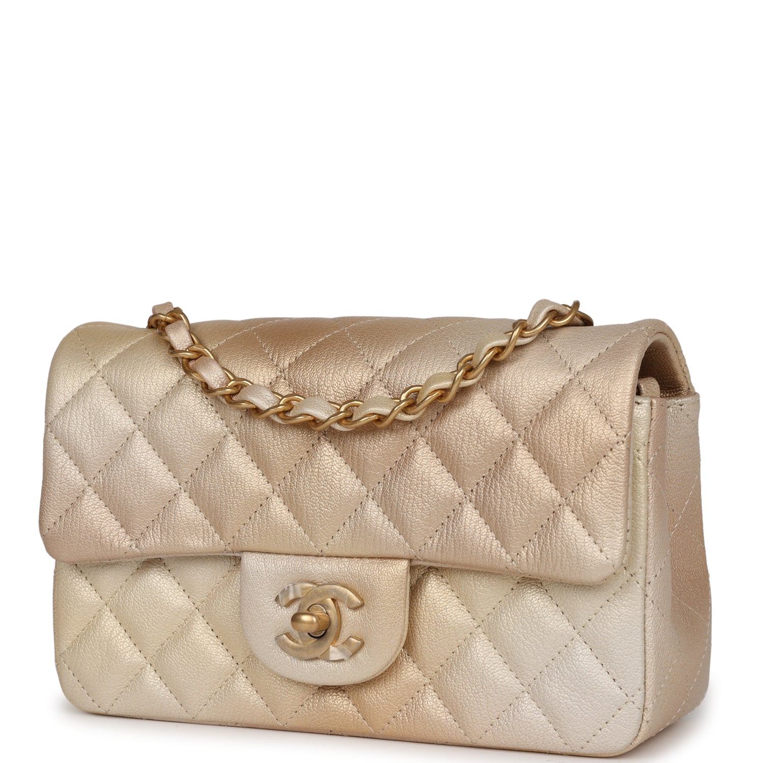 Chanel Mini Classic Rectangular Flap Iridescent Green Lambskin Light Gold Hardware