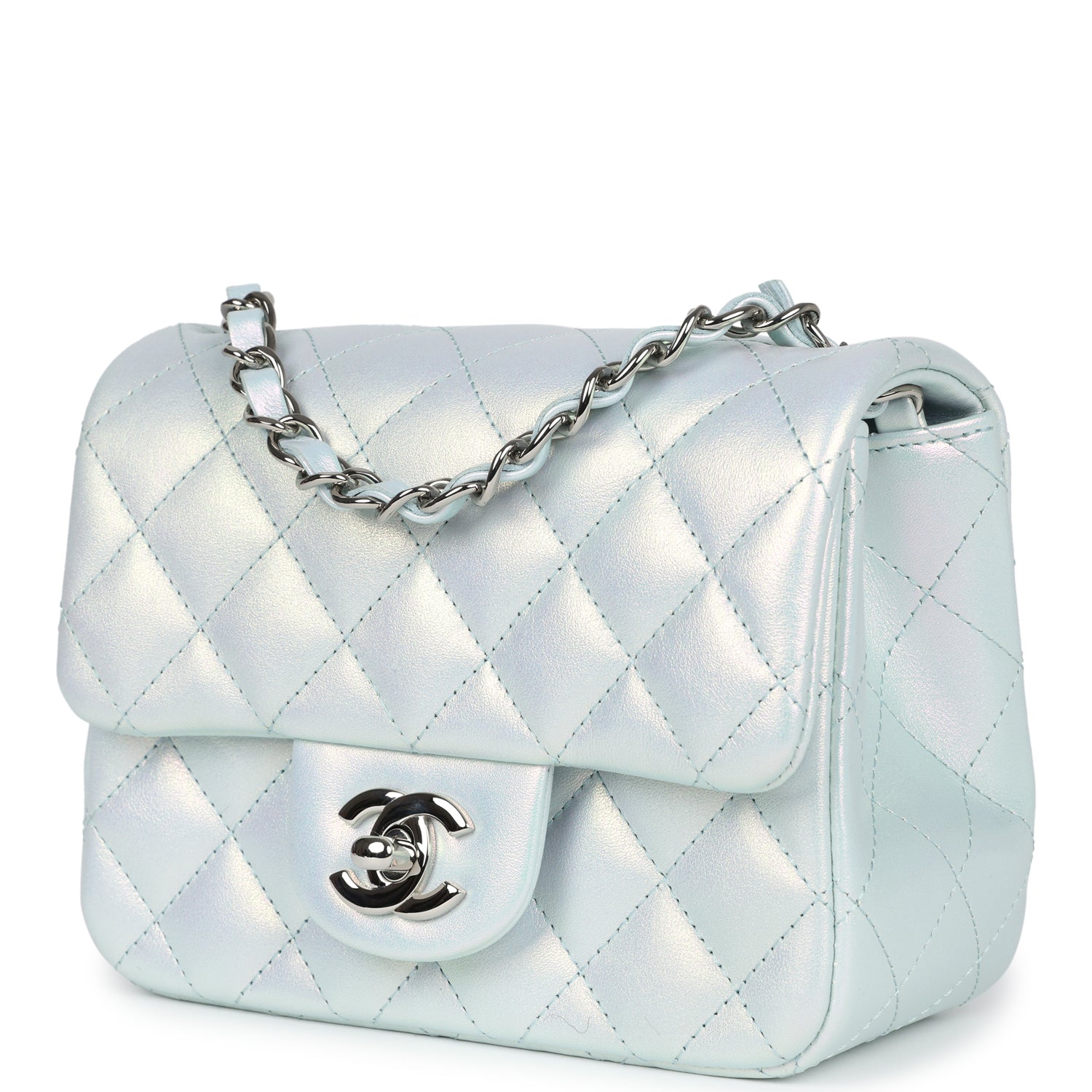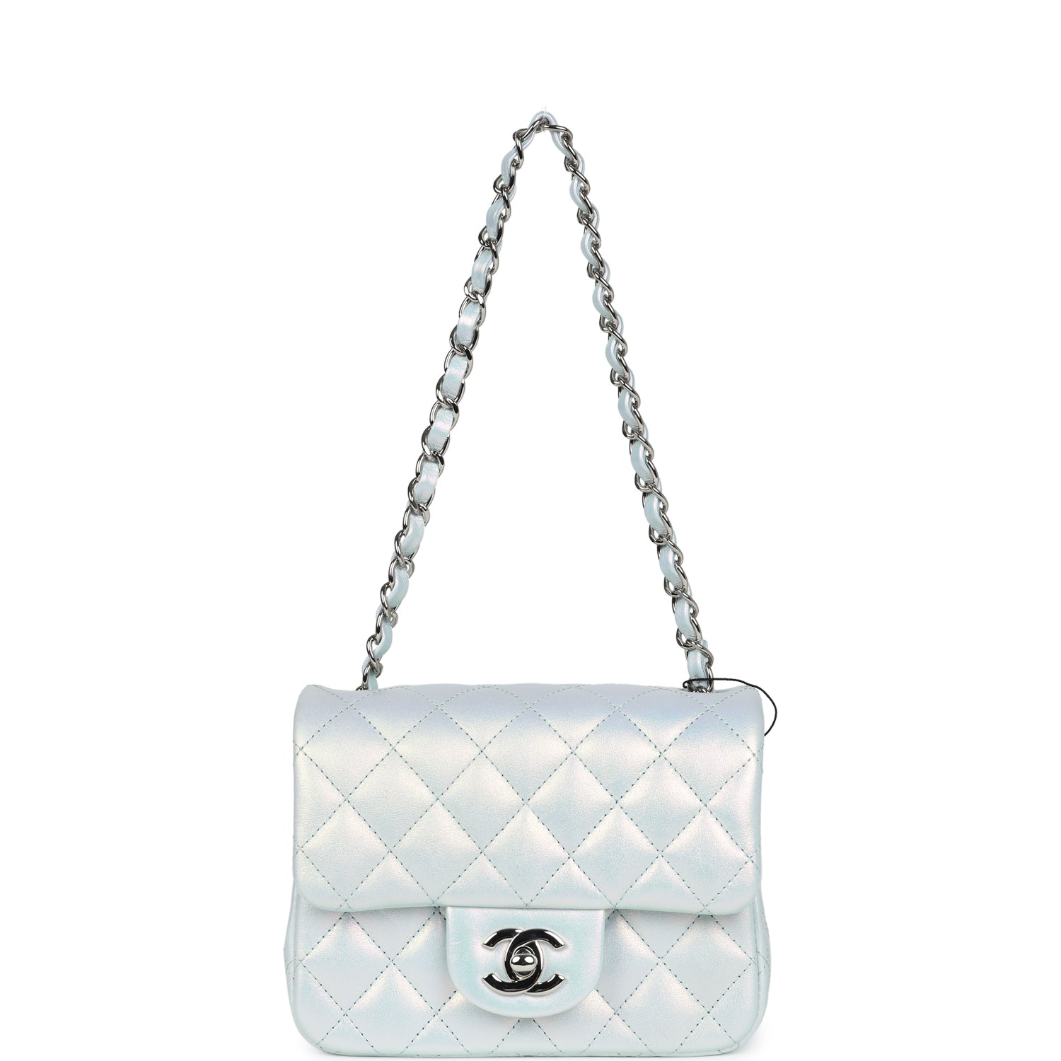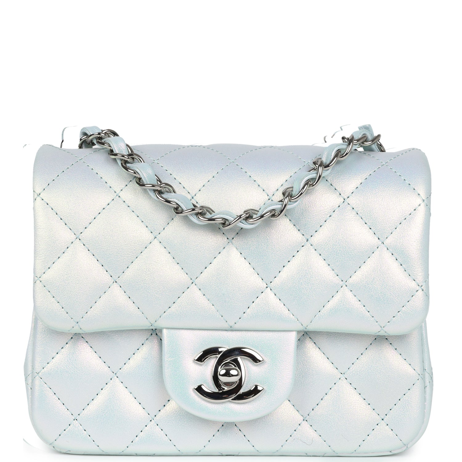 Chanel Mini Classic Square Flap Bag Blue Iridescent Calfskin Silver Hardware