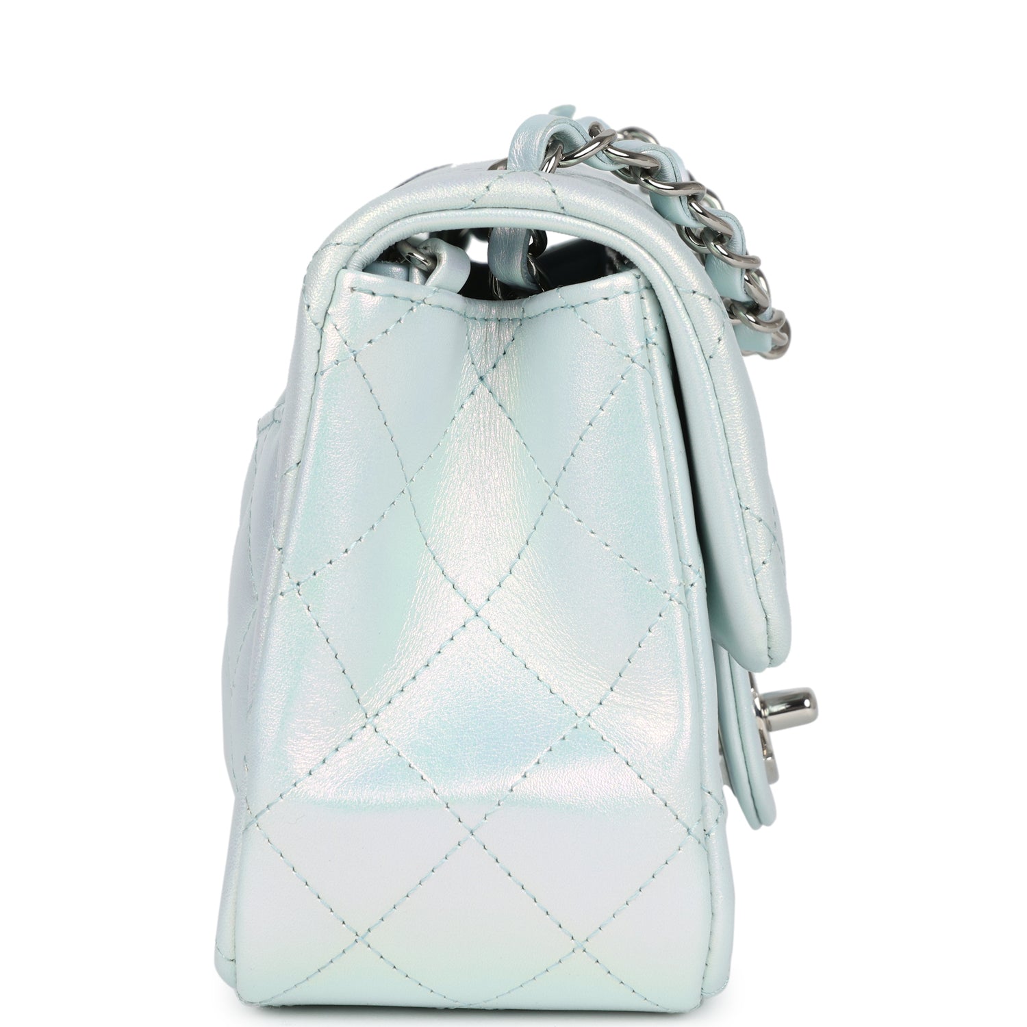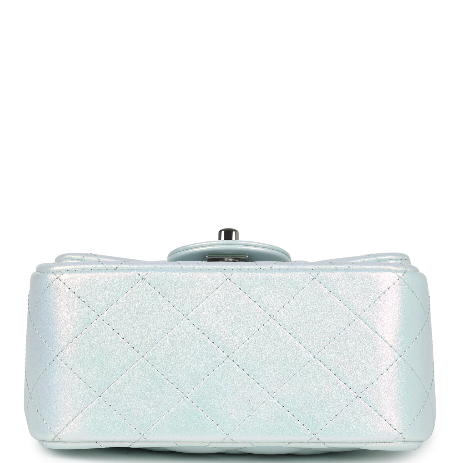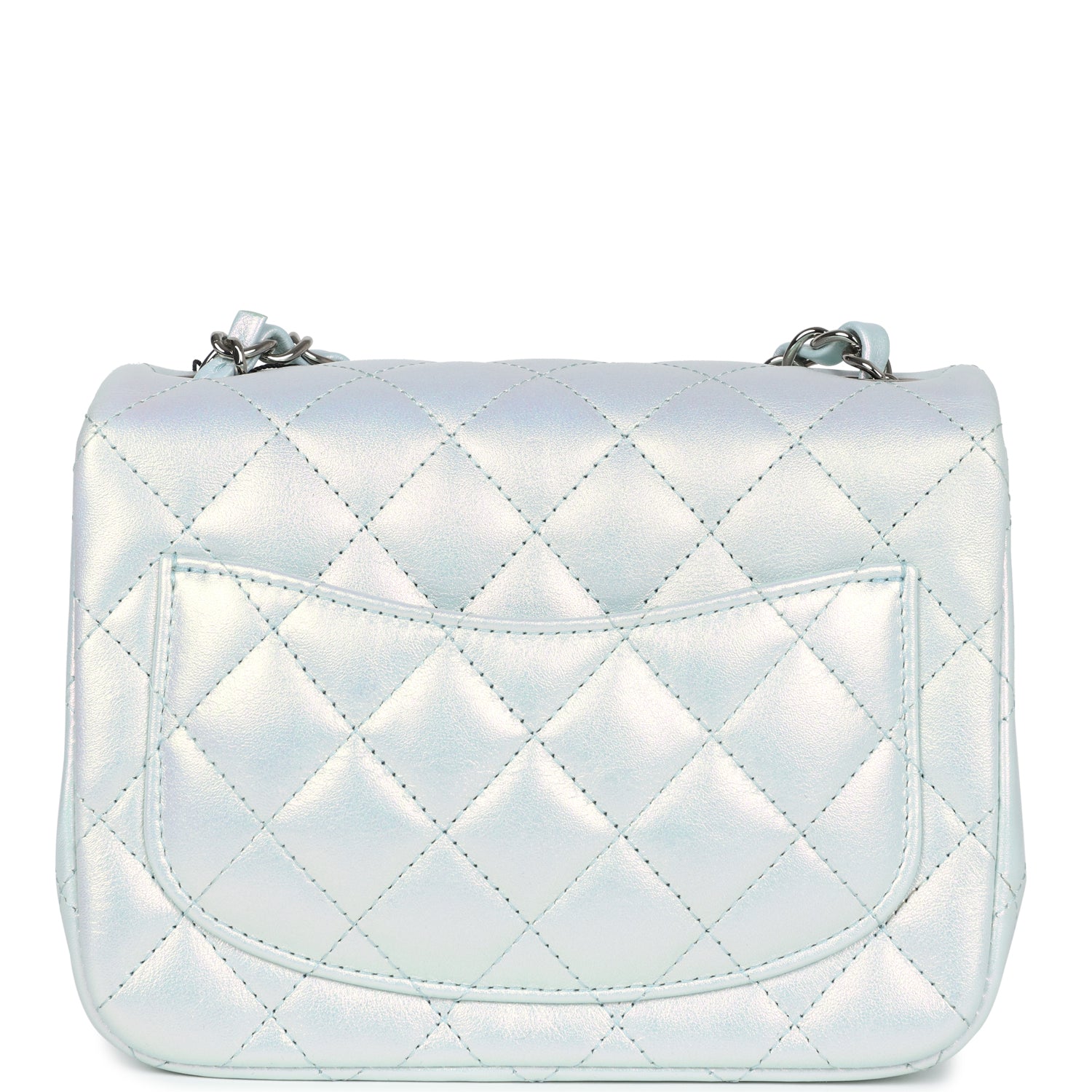Chanel Mini Classic Square Flap Bag Blue Iridescent Calfskin Silver Hardware