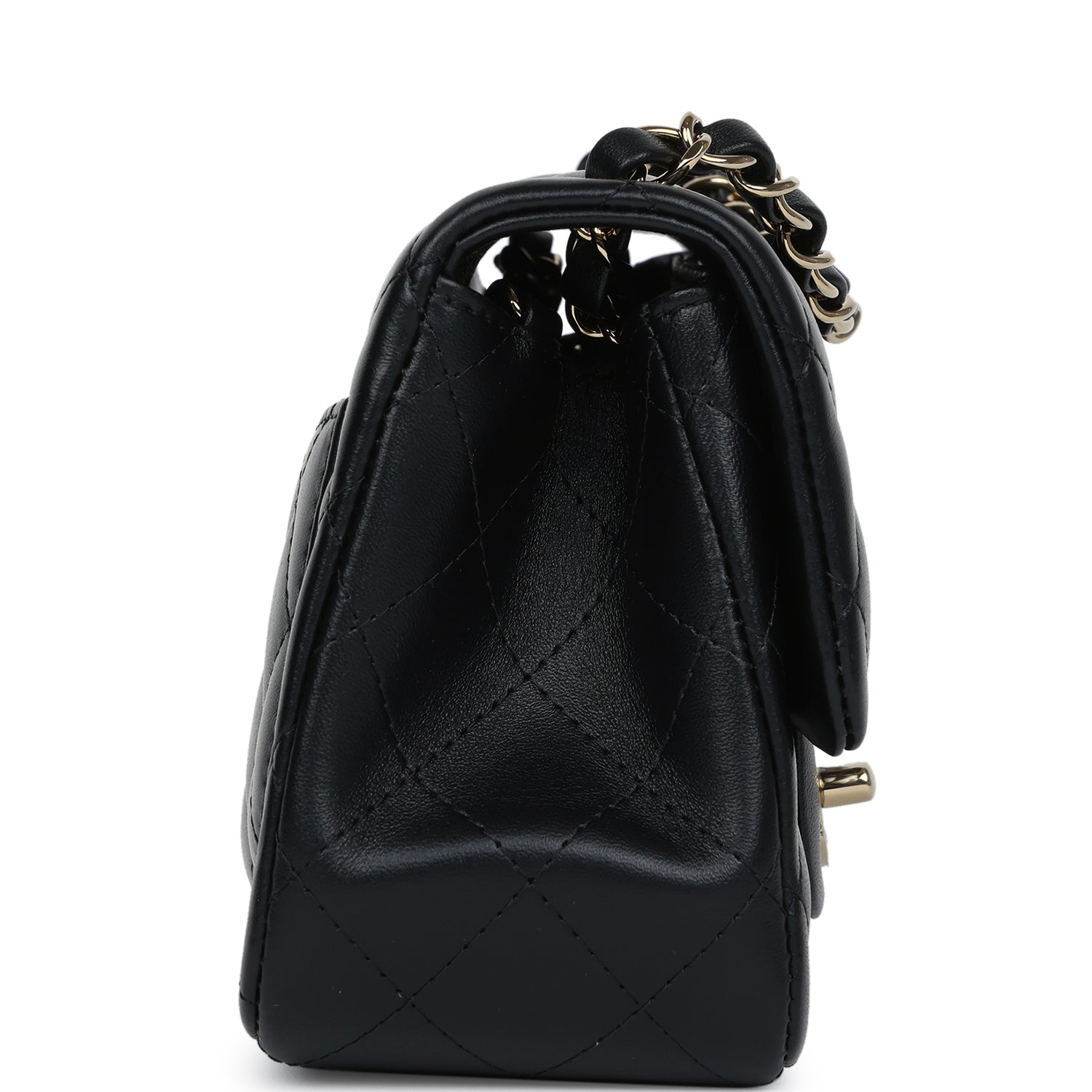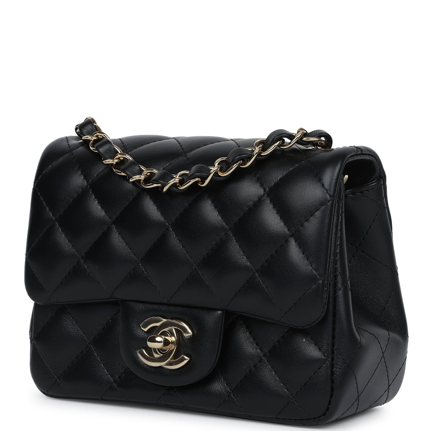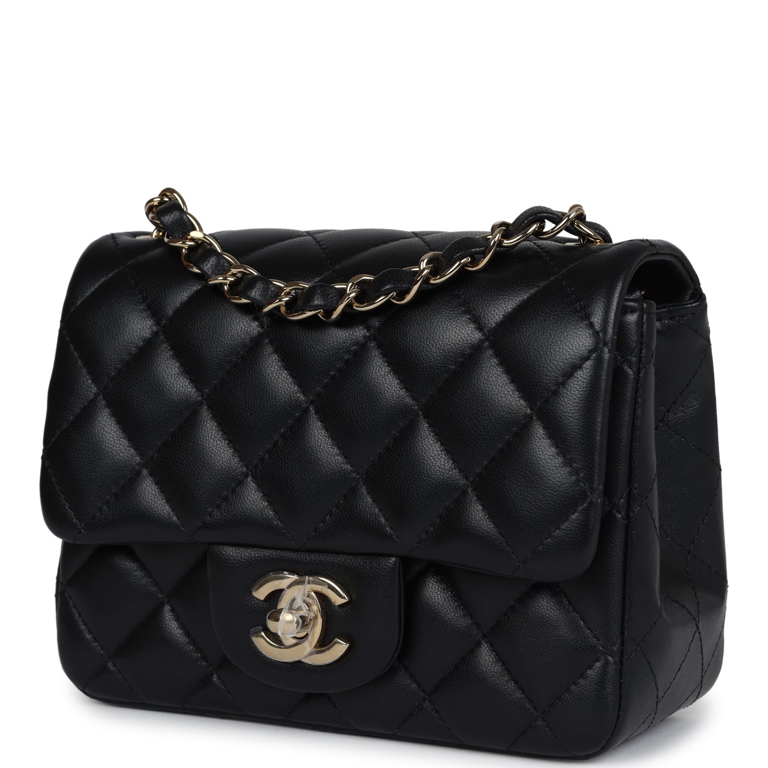 Chanel Mini Classic Square Flap Bag Black Lambskin Light Gold Hardware