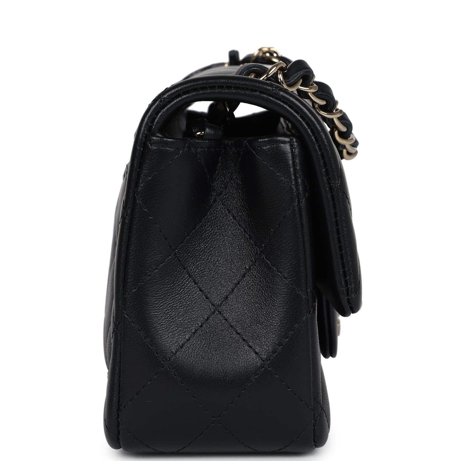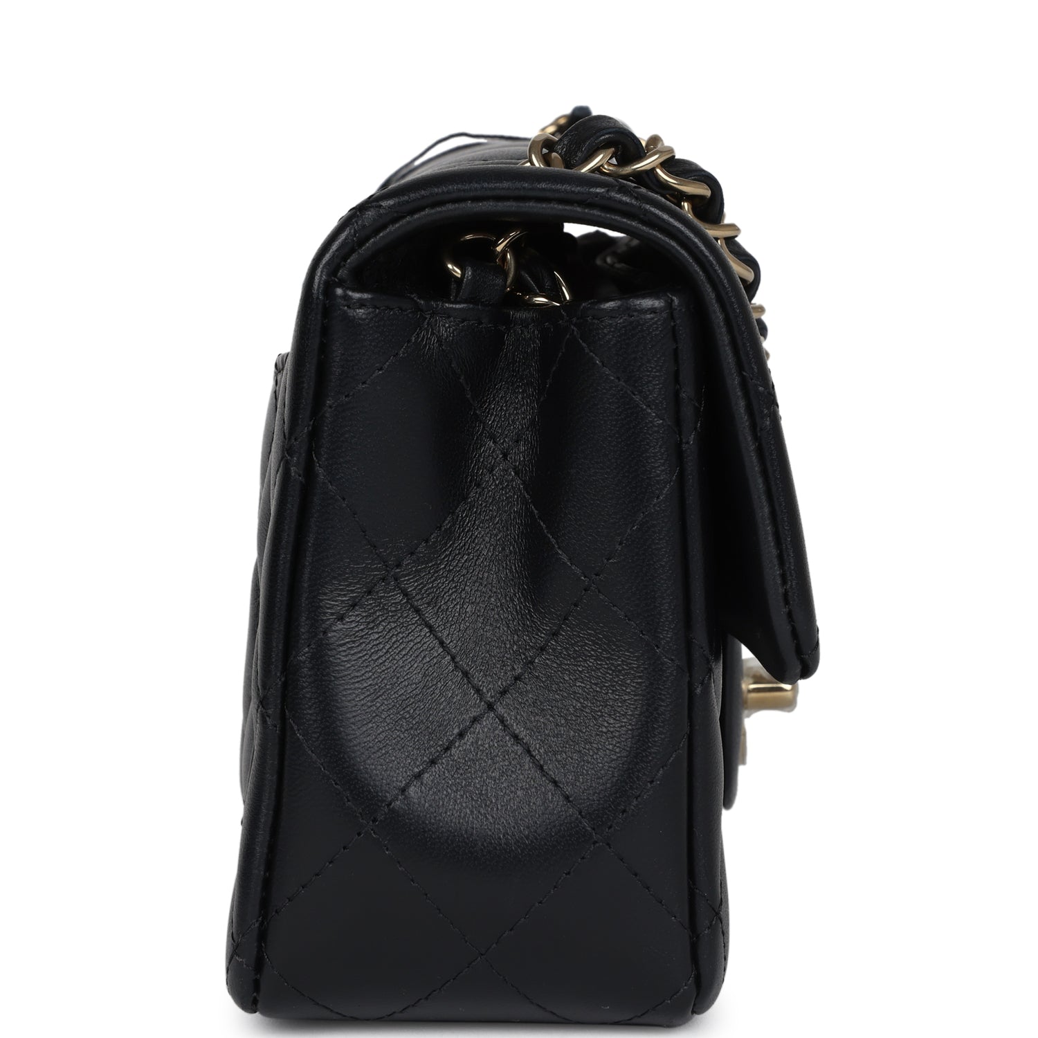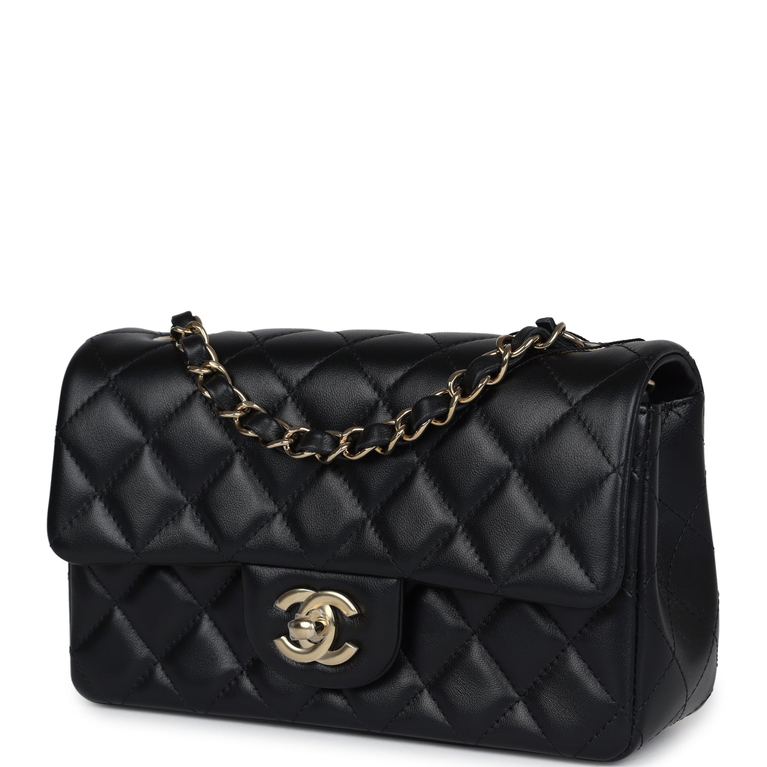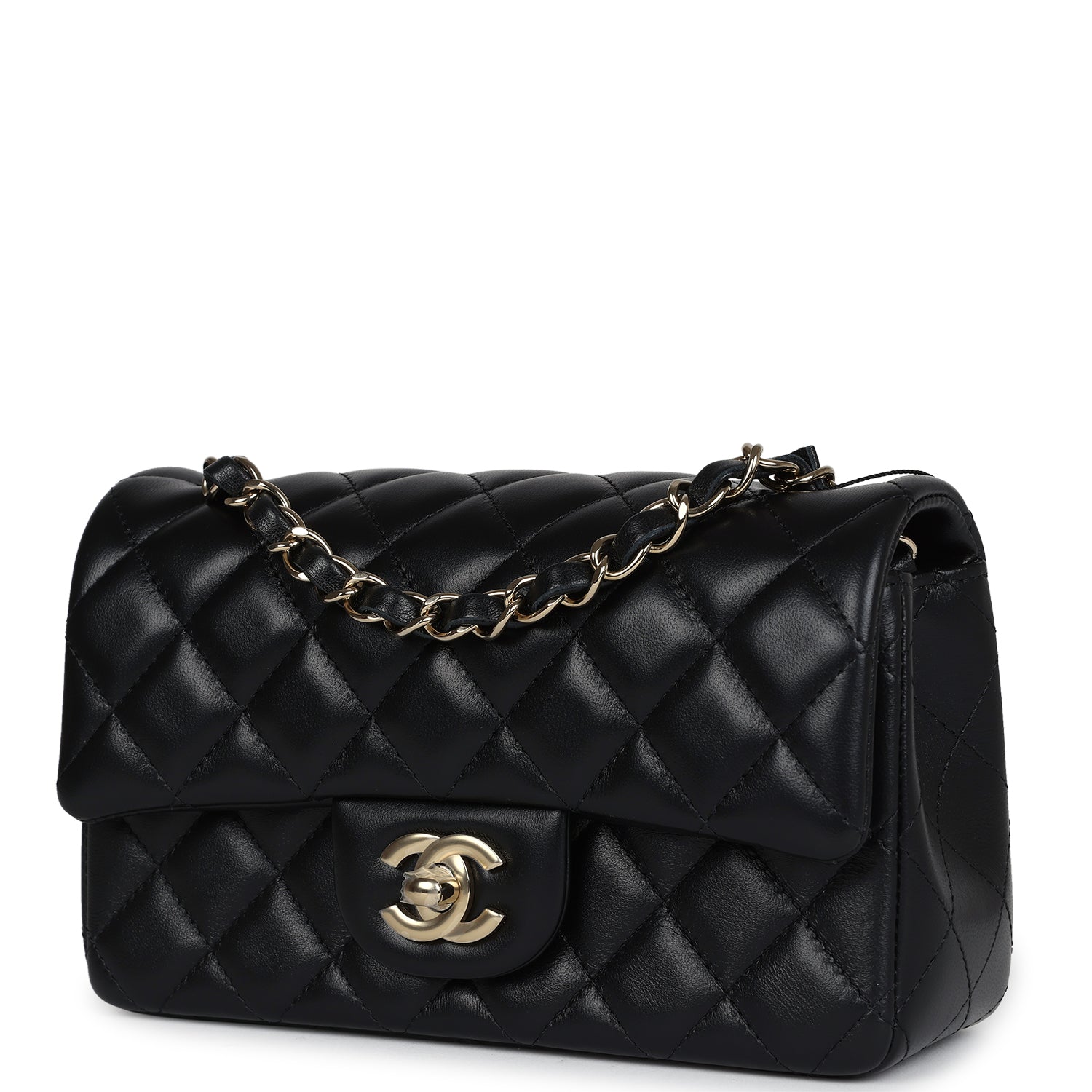 Chanel Mini Classic Square Flap Bag Black Lambskin Light Gold Hardware