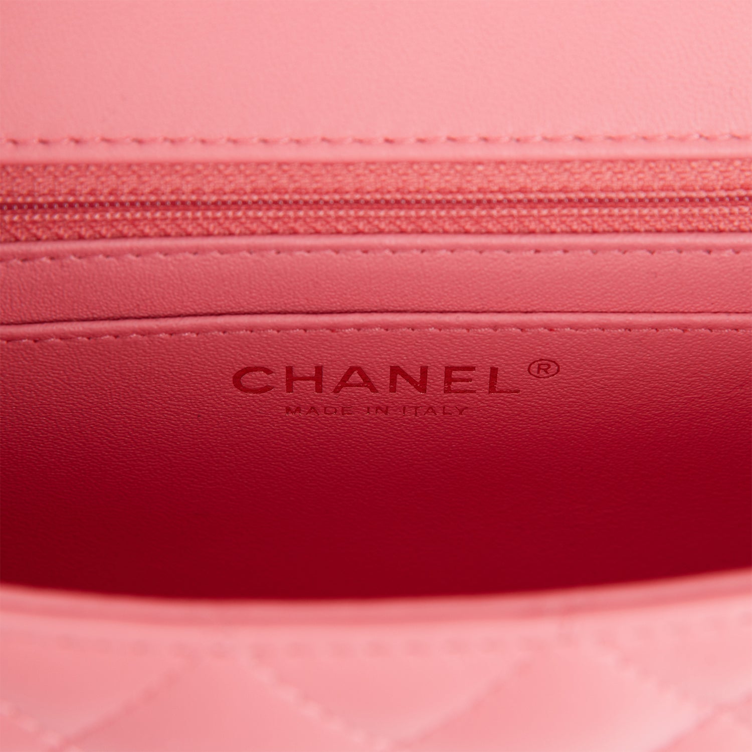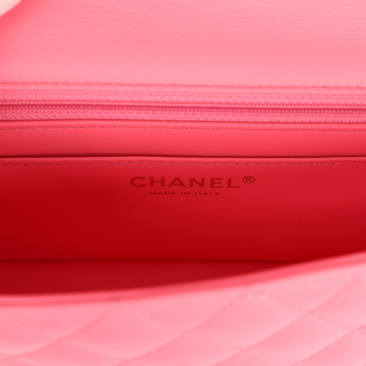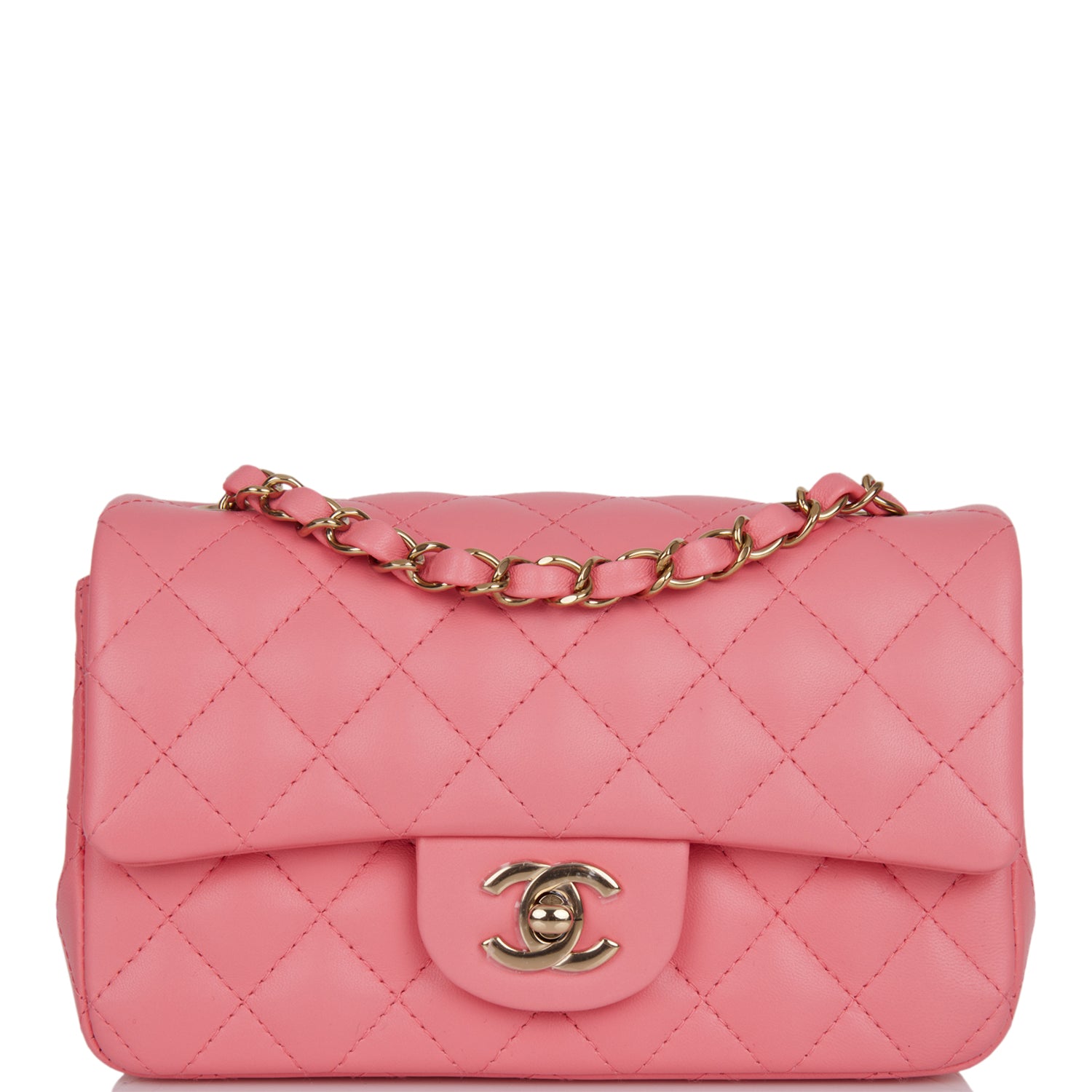 Chanel Mini Rectangular Flap Bag Hot Pink Lambskin Light Gold Hardware