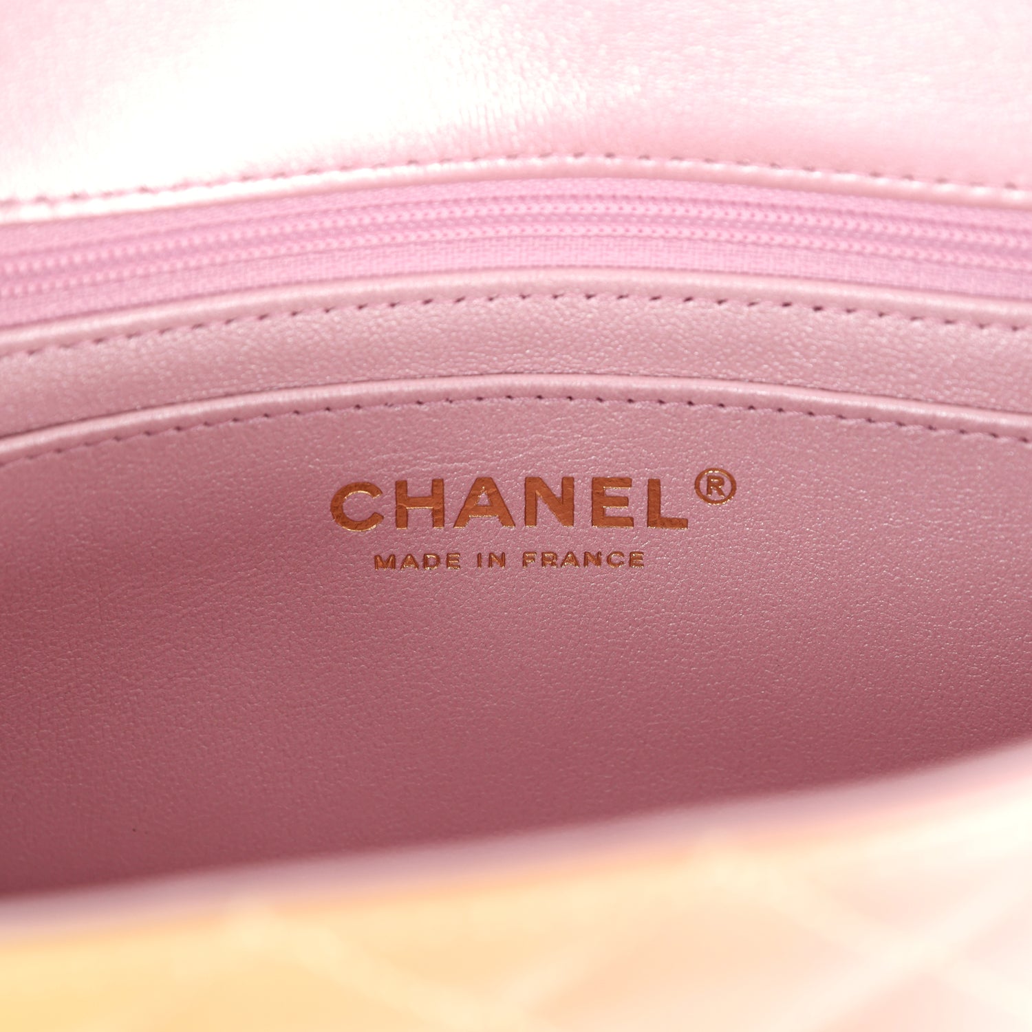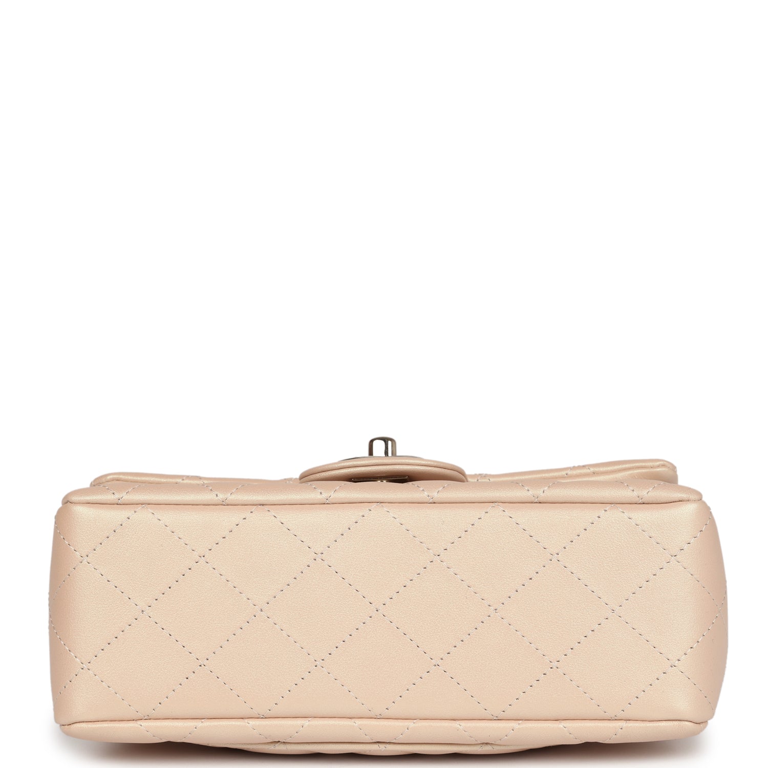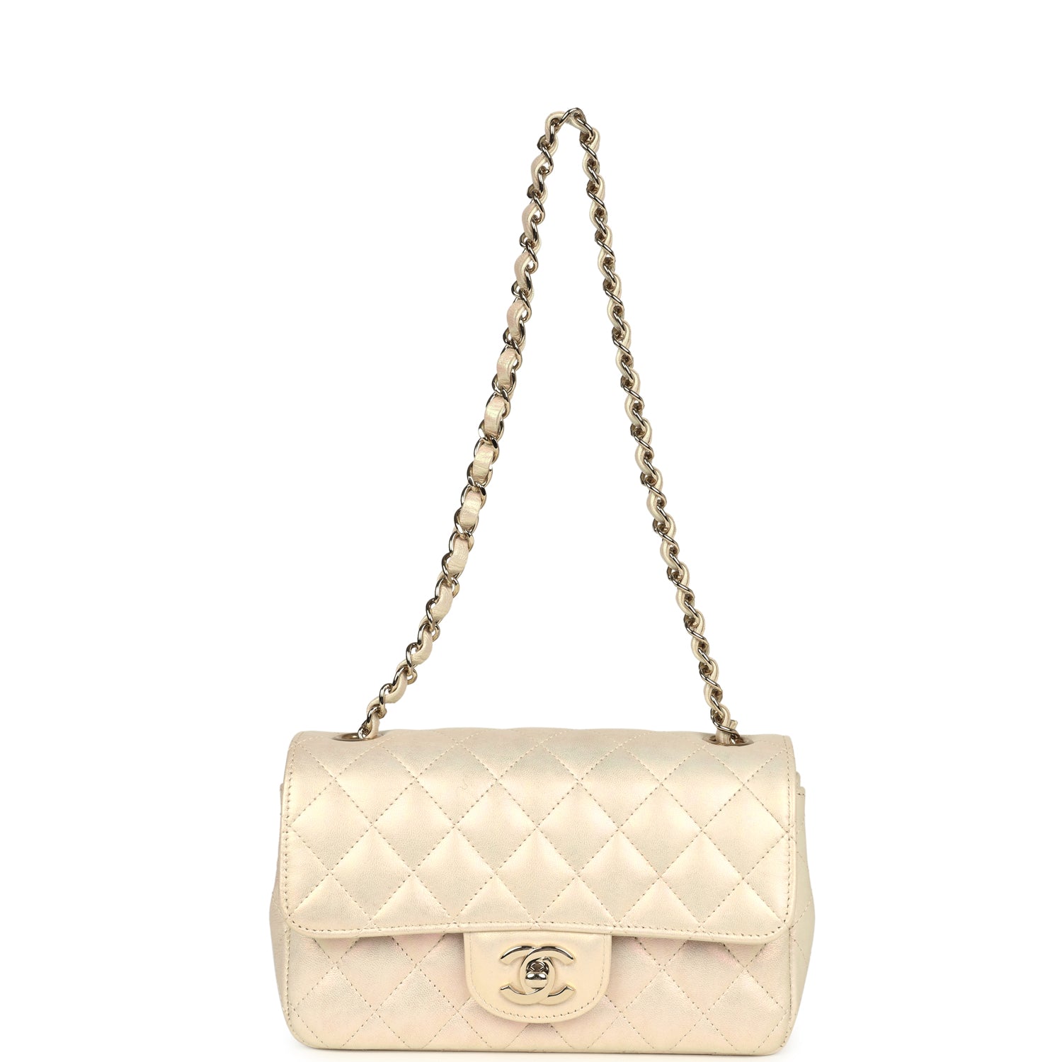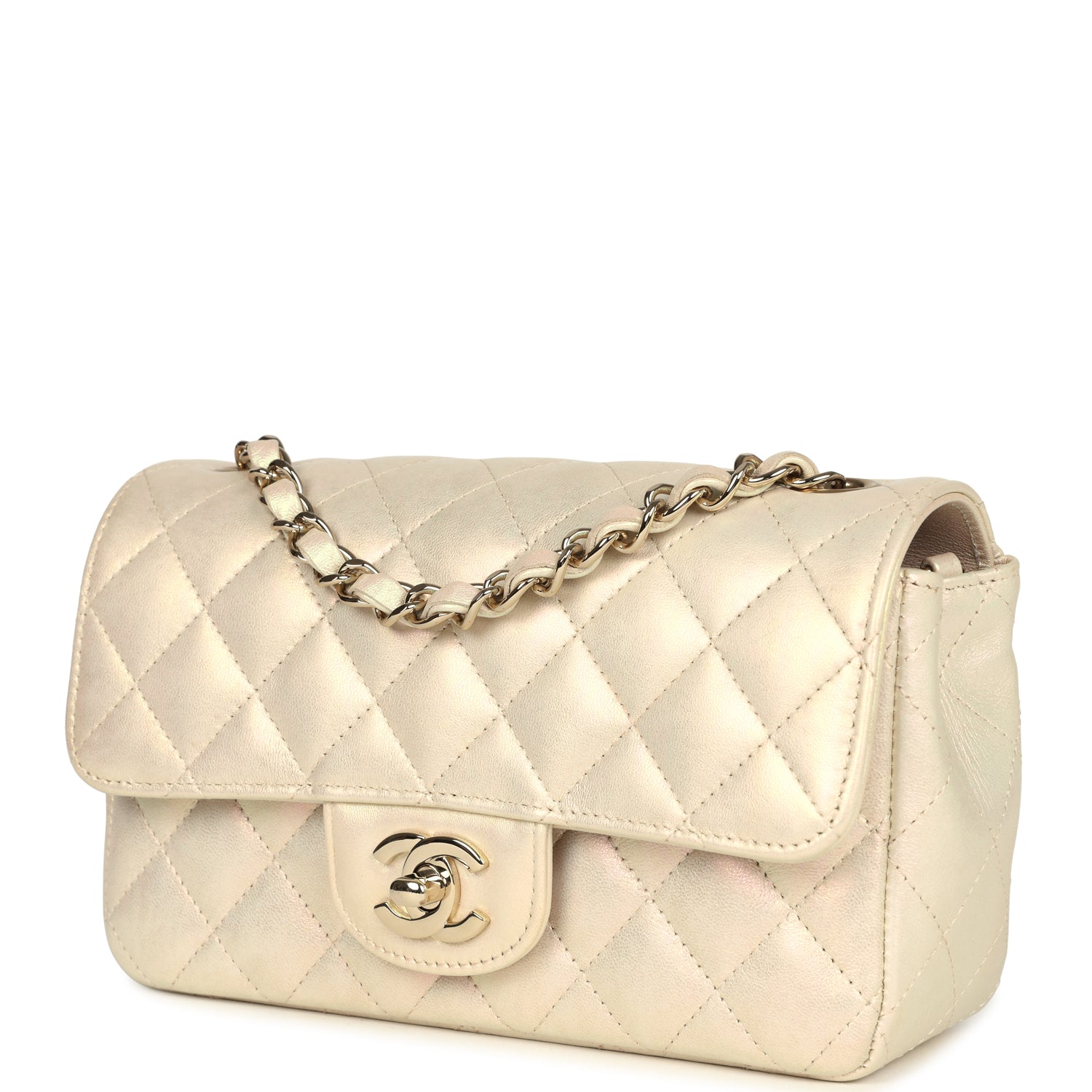 Chanel Mini Rectangular Flap Bag Iridescent Beige Lambskin Light Gold Hardware