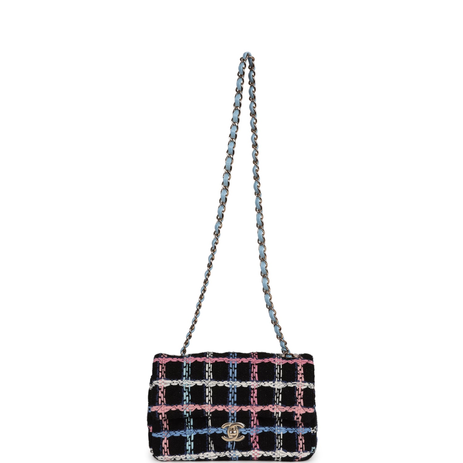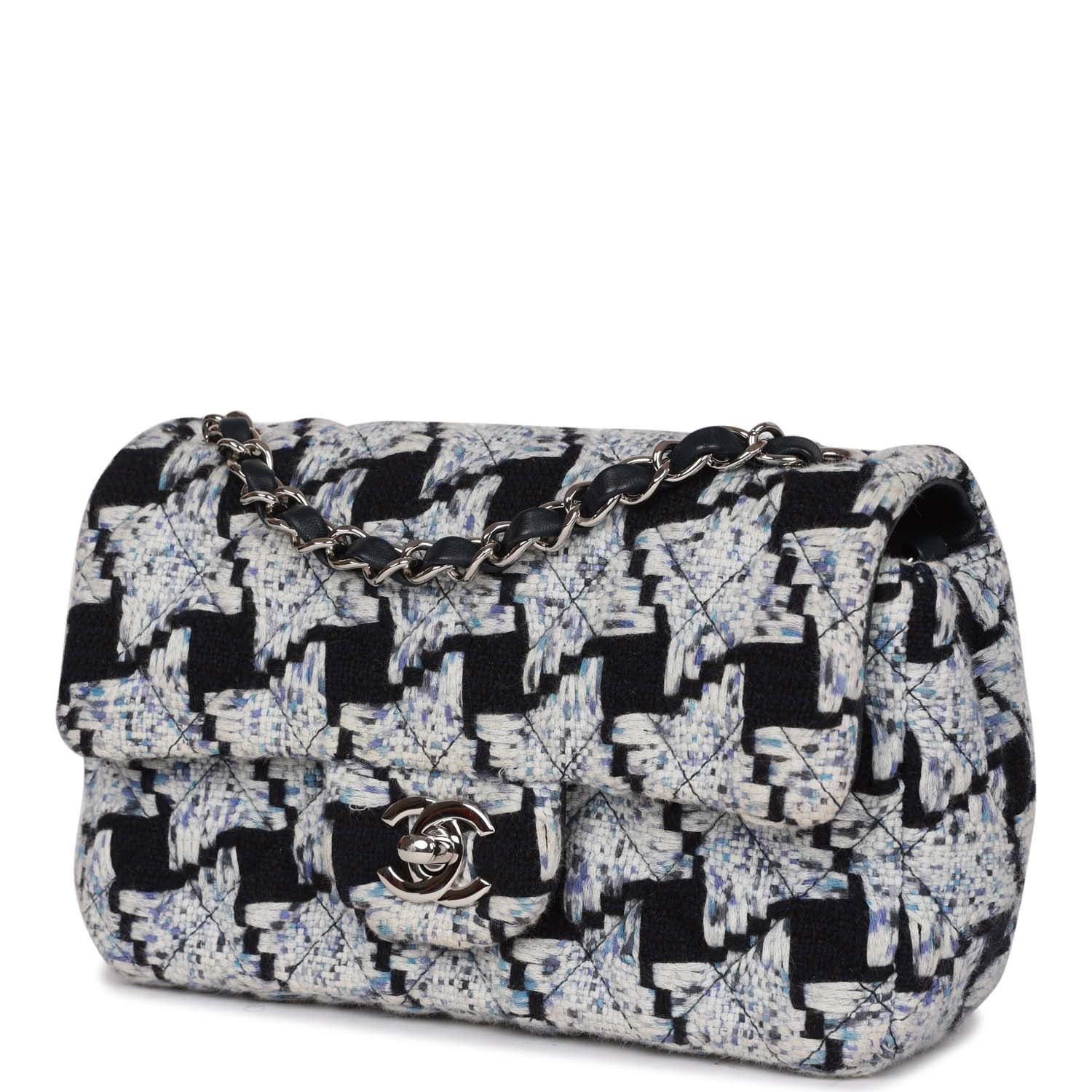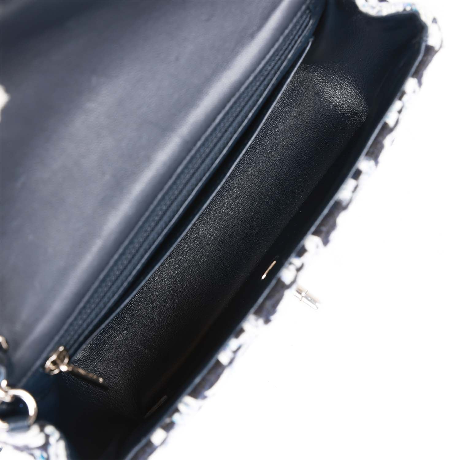 Chanel Mini Rectangular Flap Bag Blue Tweed Silver Hardware