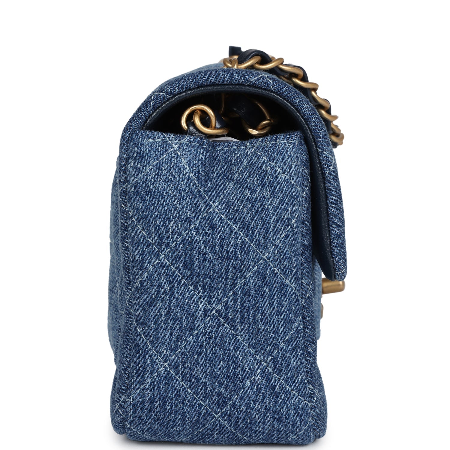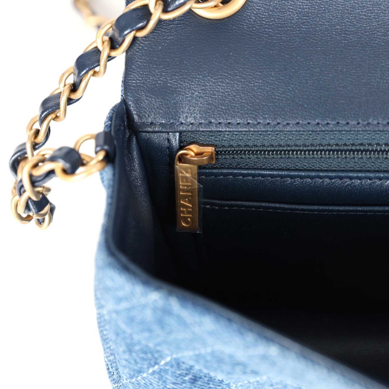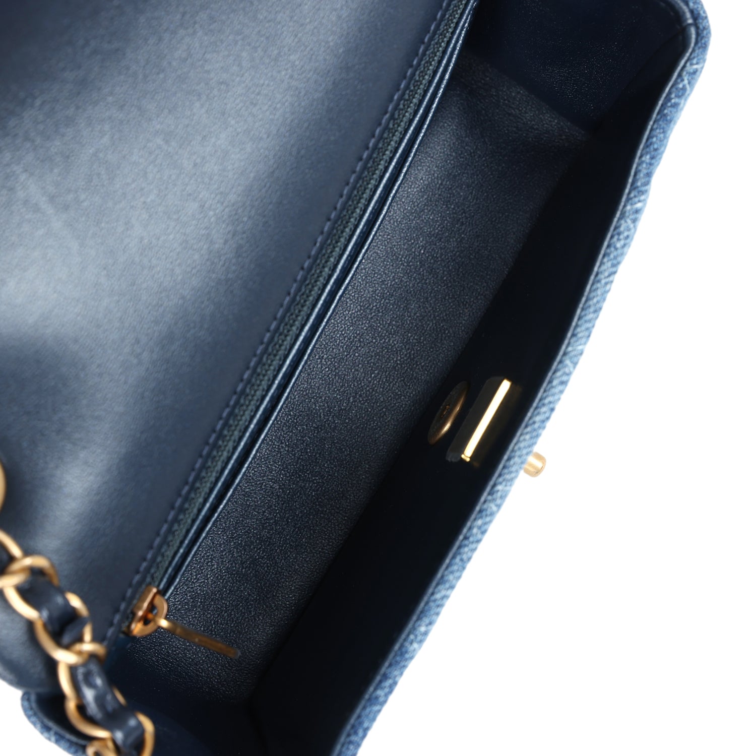 Chanel Mini Rectangular Flap Bag Blue Tweed Silver Hardware
