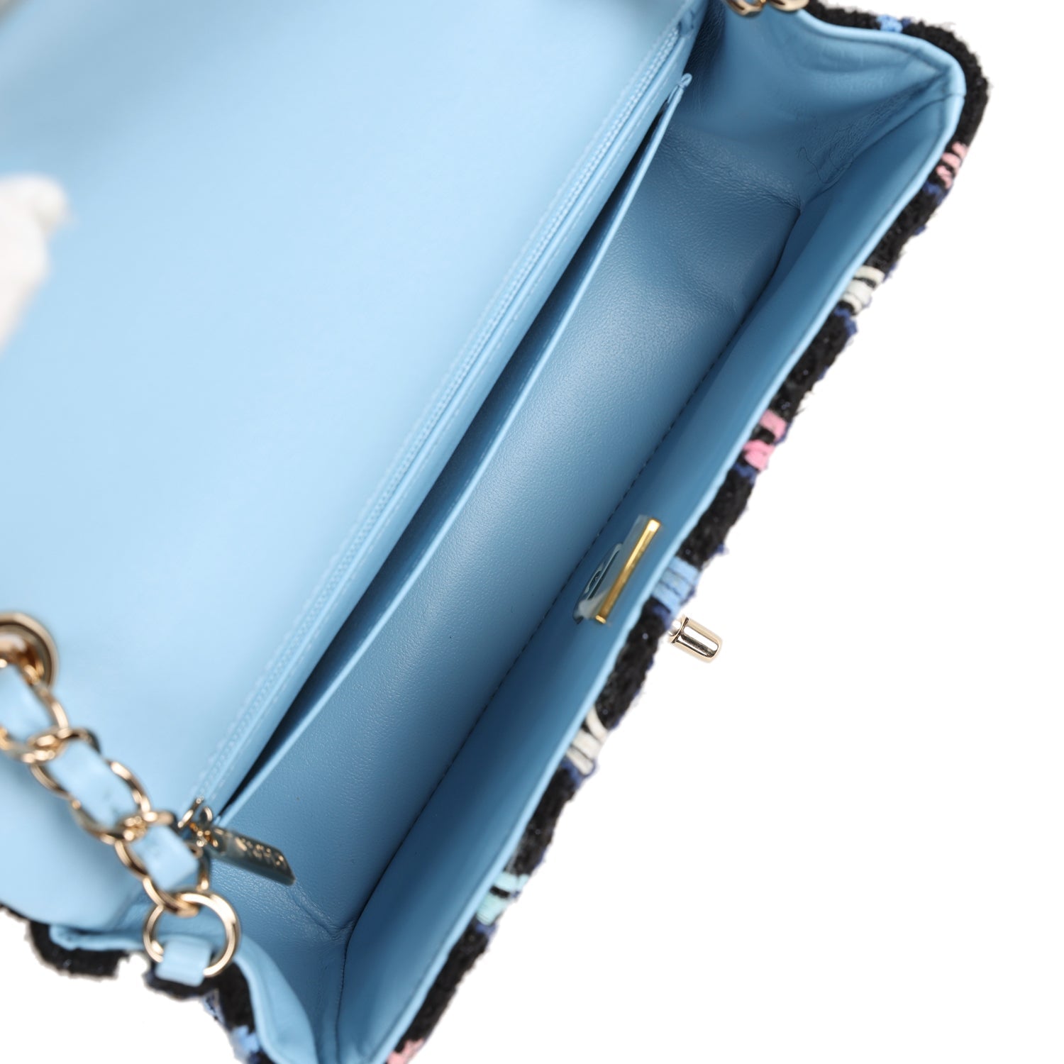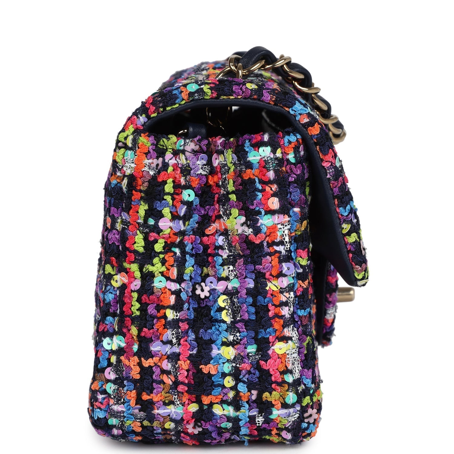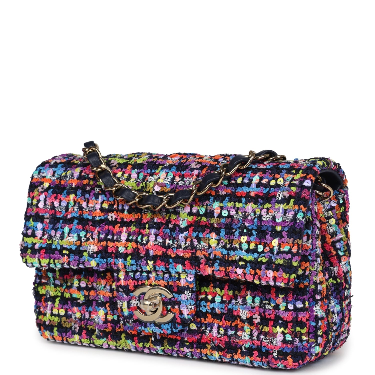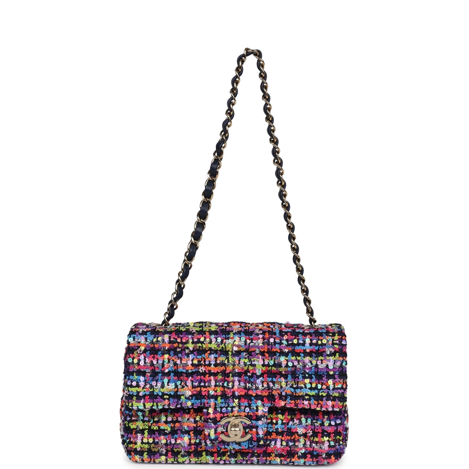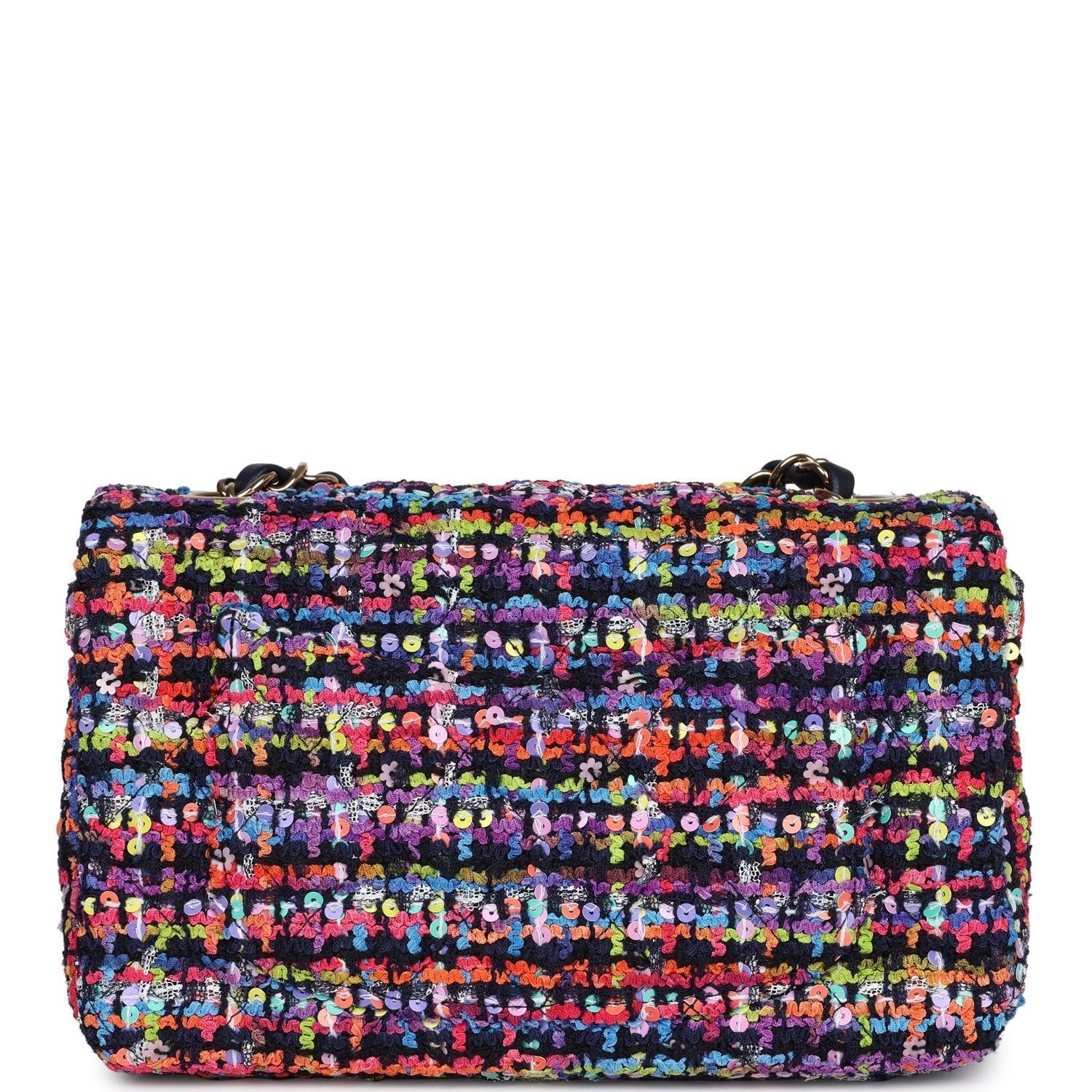 Chanel Mini Rectangular Flap Bag Multicolored Tweed and Sequins Gold Hardware