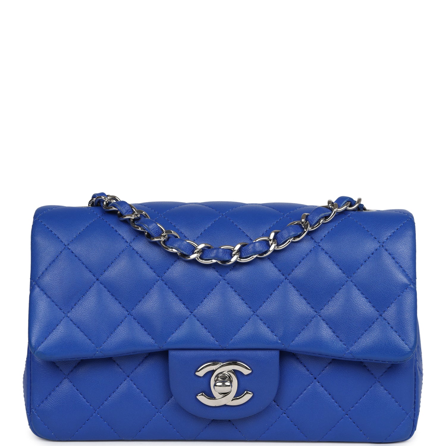Chanel Mini Rectangular Flap Bag Blue Lambskin Silver Hardware
